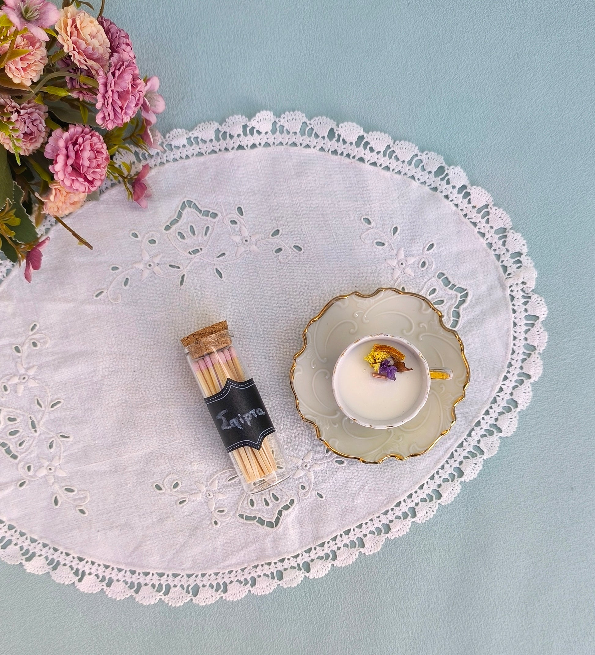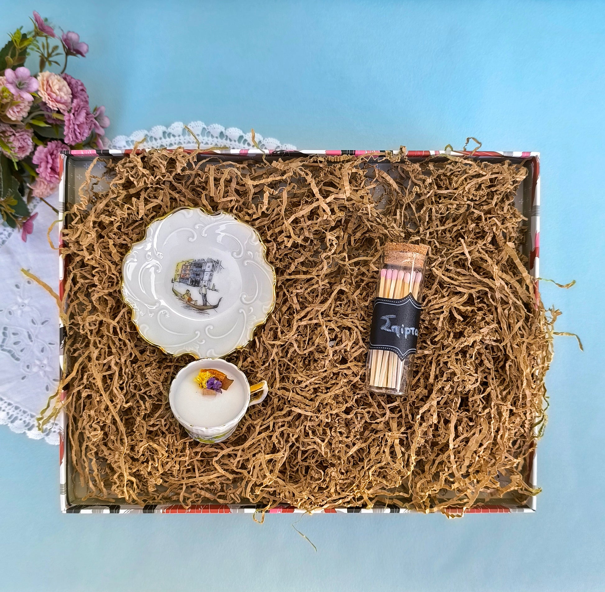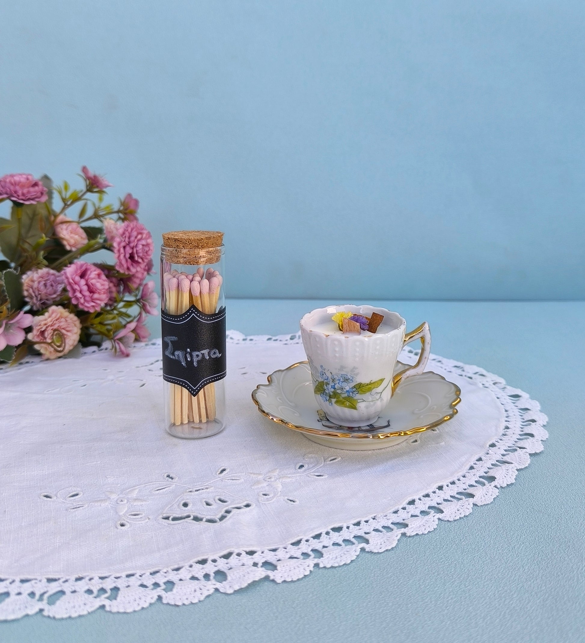 Χειροποίητο Αρωματικό Κερί Σόγιας Σε Παλιό Φλυτζανάκι Του Καφέ και Σπίρτα