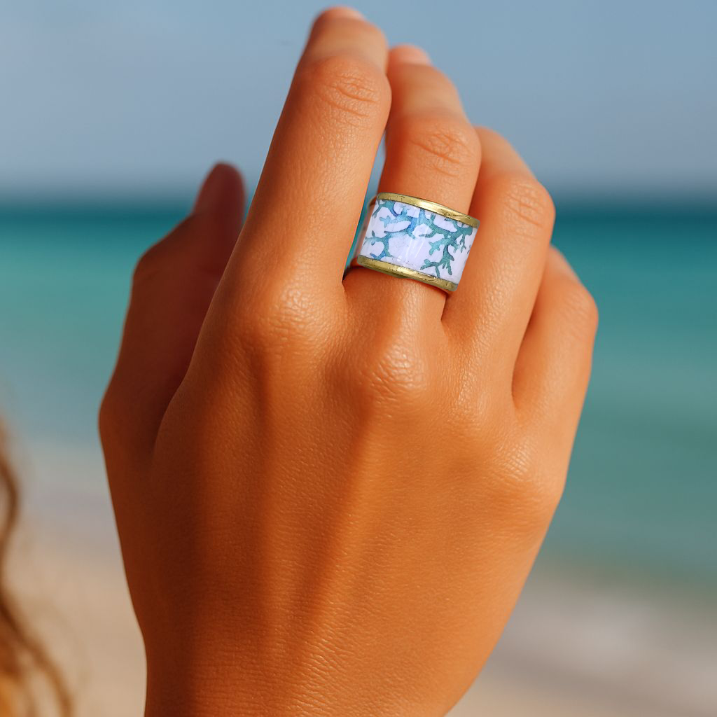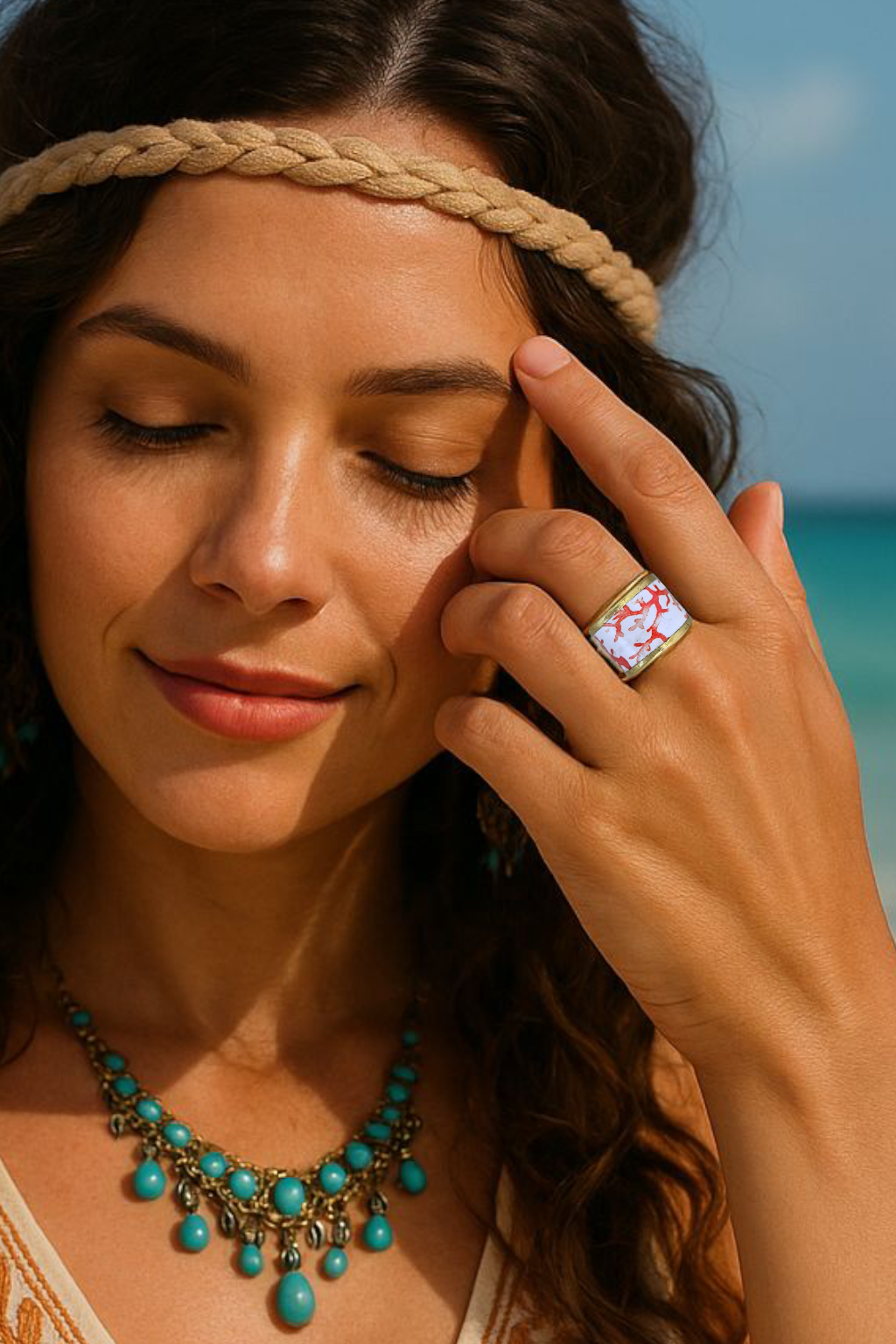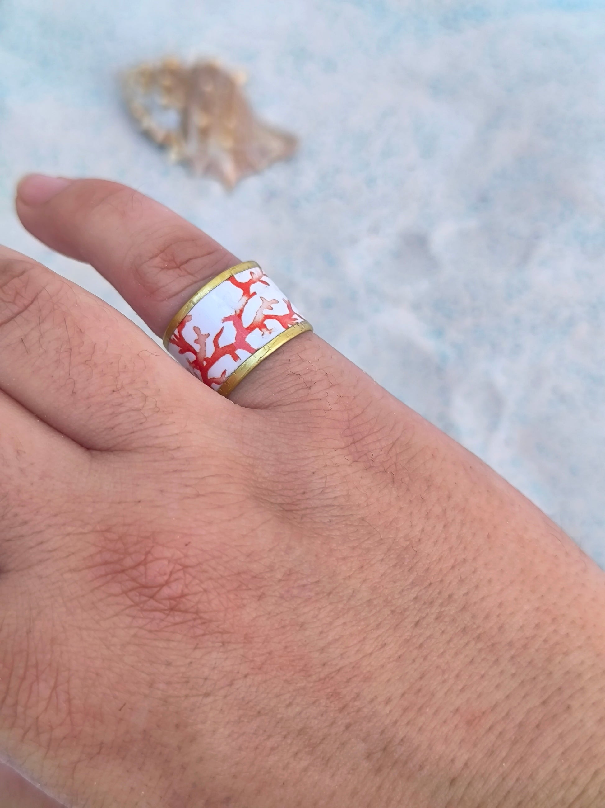 Ολόκληρο το μεσογειακό καλοκαίρι σε ένα κόσμημα! Ανοιχτό δαχτυλίδι από μπρούτζο, ζωγραφισμένο με κοράλια στις πιο τοπ καλοκαιρινές αποχρώσεις. Ιδανικό για κάθε σας καλοκαιρινή εμφάνιση. Μέρος της συλλογής μας "Τα Παλιά Πλακάκια", ξυπνά αναμνήσεις από ηλιόλουστες διακοπές, φθαρμένα ψηφιδωτά δάπεδα και μεσογειακά σπίτια γεμάτα ιστορία και συναίσθημα.