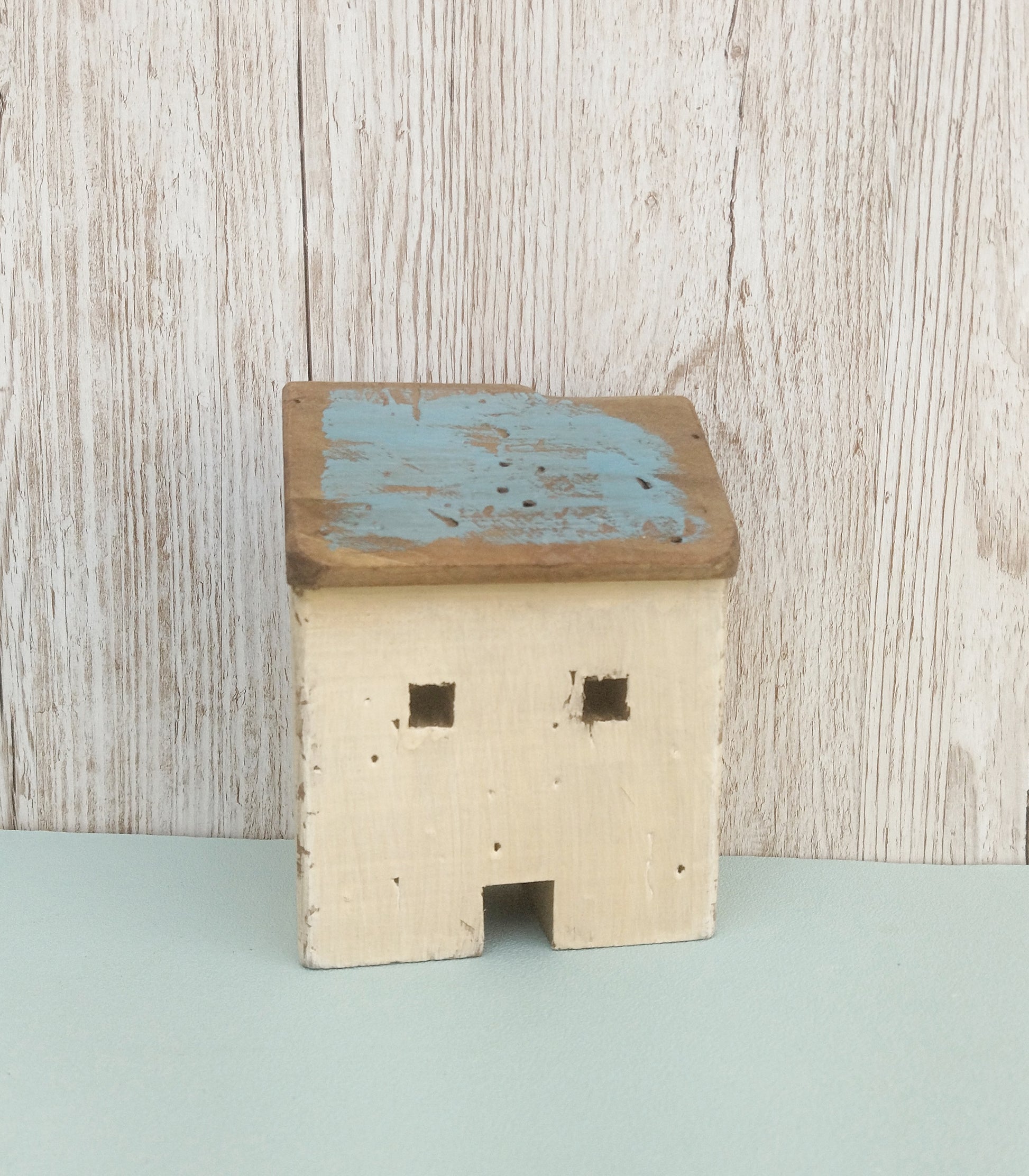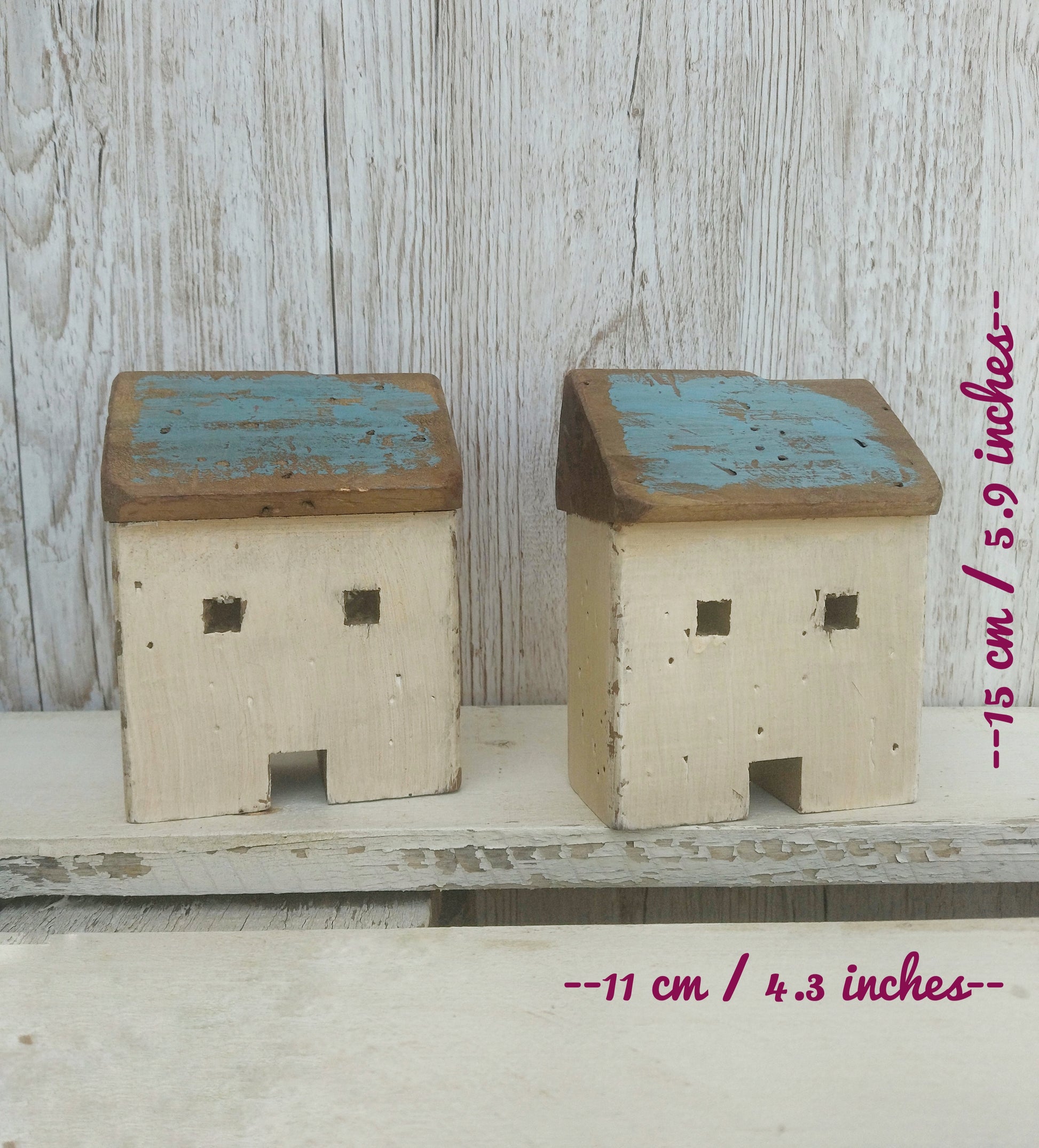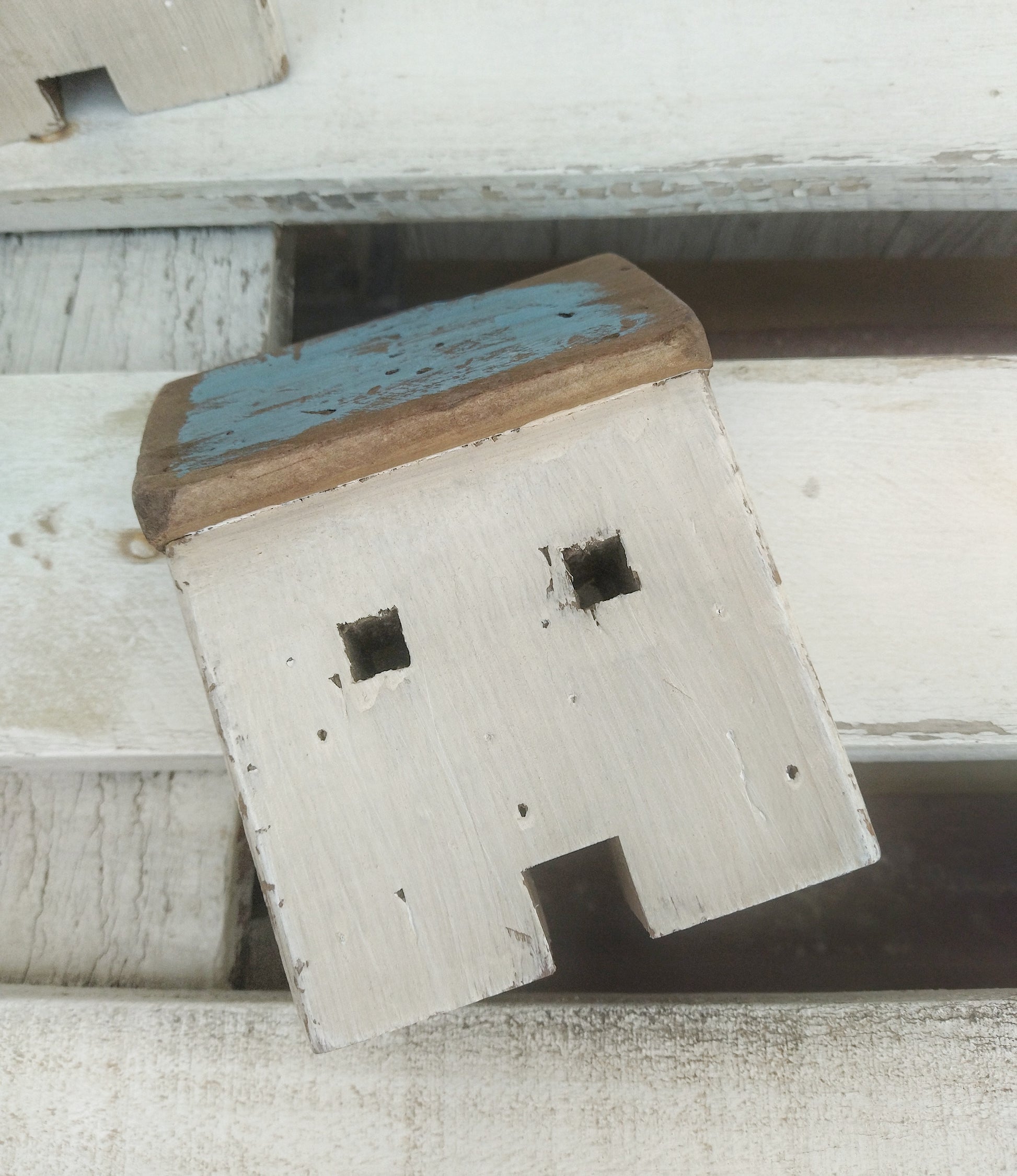 Υπέροχο διακοσμητικό ξύλινο σπιτάκι, φτιαγμένο από ανακυκλωμένο ξύλο και ξύλο θαλάσσης. Ζωγραφισμένο στο χέρι ώστε να δίνει τη ρουστίκ αίσθηση του παλιού σπιτιού..