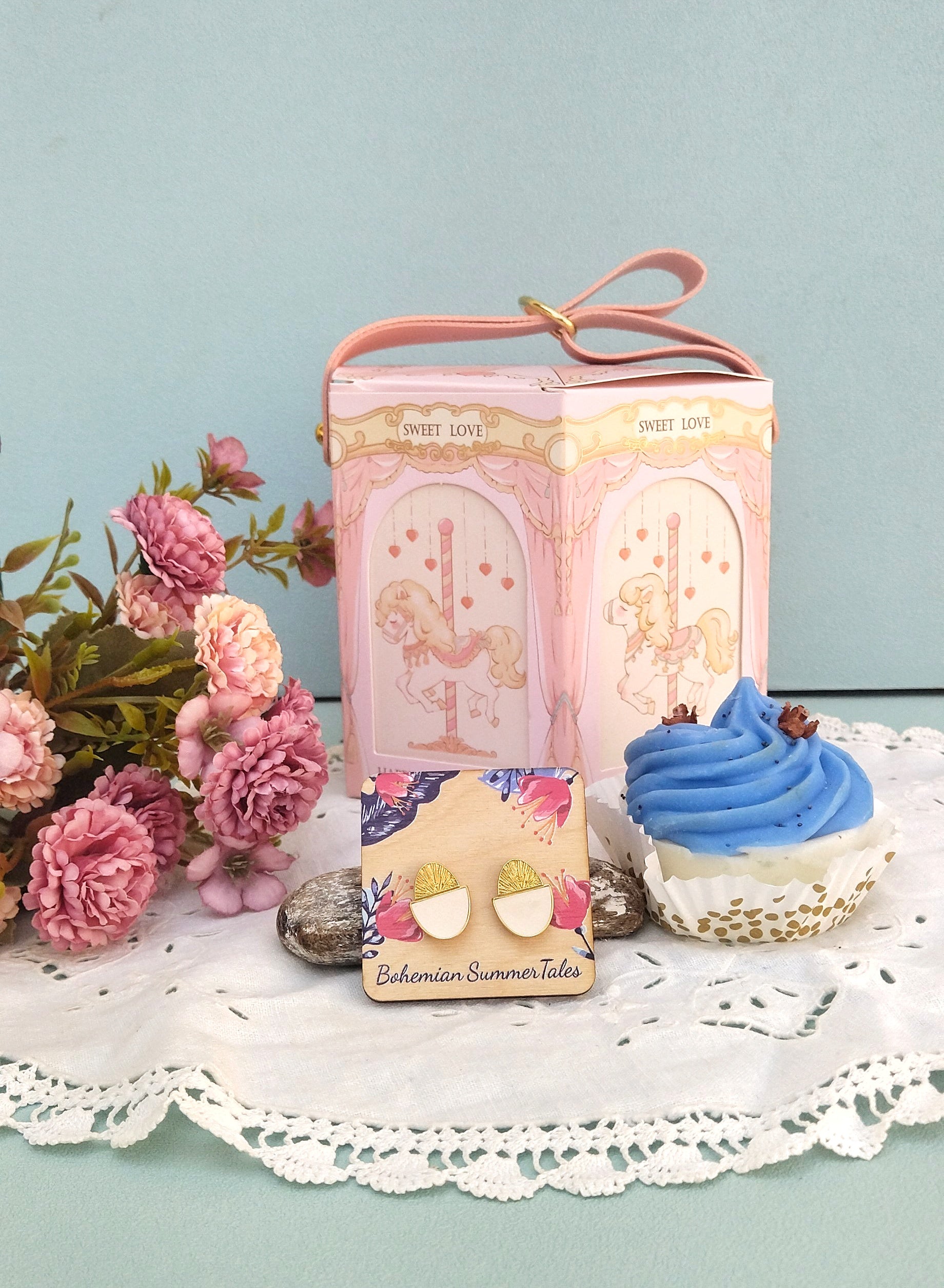 ❊ Σαπουνάκι κεκάκι: Σαπουνάκι με φυσικά συστατικά και ελαφρύ άρωμα αιθέριων ελαίων ❊ Γνωστό για τις χαλαρωτικές ιδιότητες, το φυσικό σφουγγάρι προσώπου κόντζακ είναι ιδανικό για καθημερινή καθαριότητα προσώπου και την ήπια απολέπιση. Μπορεί να χρησιμοποιηθεί για την πρωινή και βραδινή ρουτίνα ομορφιάς σας.Είναι απολύτως ασφαλές για χρήση γύρω από τα μάτια και μπορεί να αφαιρέσει χωρίς επιπλέον καθαριστικούς παράγοντες τους καθημερινούς ρύπους και το μακιγιάζ με βάση το νερό. Απλά εμβαπτίστε το σε ζεστό νερό και στραγγίξτε το. Κάντε απαλό μασάζ με μικρές, κυκλικές κινήσεις. Αντικαταστήστε το μετά από 3 μήνες απλά φυτεύοντάς το στο χώμα και εκείνο θα διαλυθεί χάρη στα βιωδιασπώμενα συστατικά του. ❊ Ζευγάρι σκουλαρίκια καρφάκι από επιροδιωμένο μπρούτζο και ζωγραφισμένα με σμάλτο.