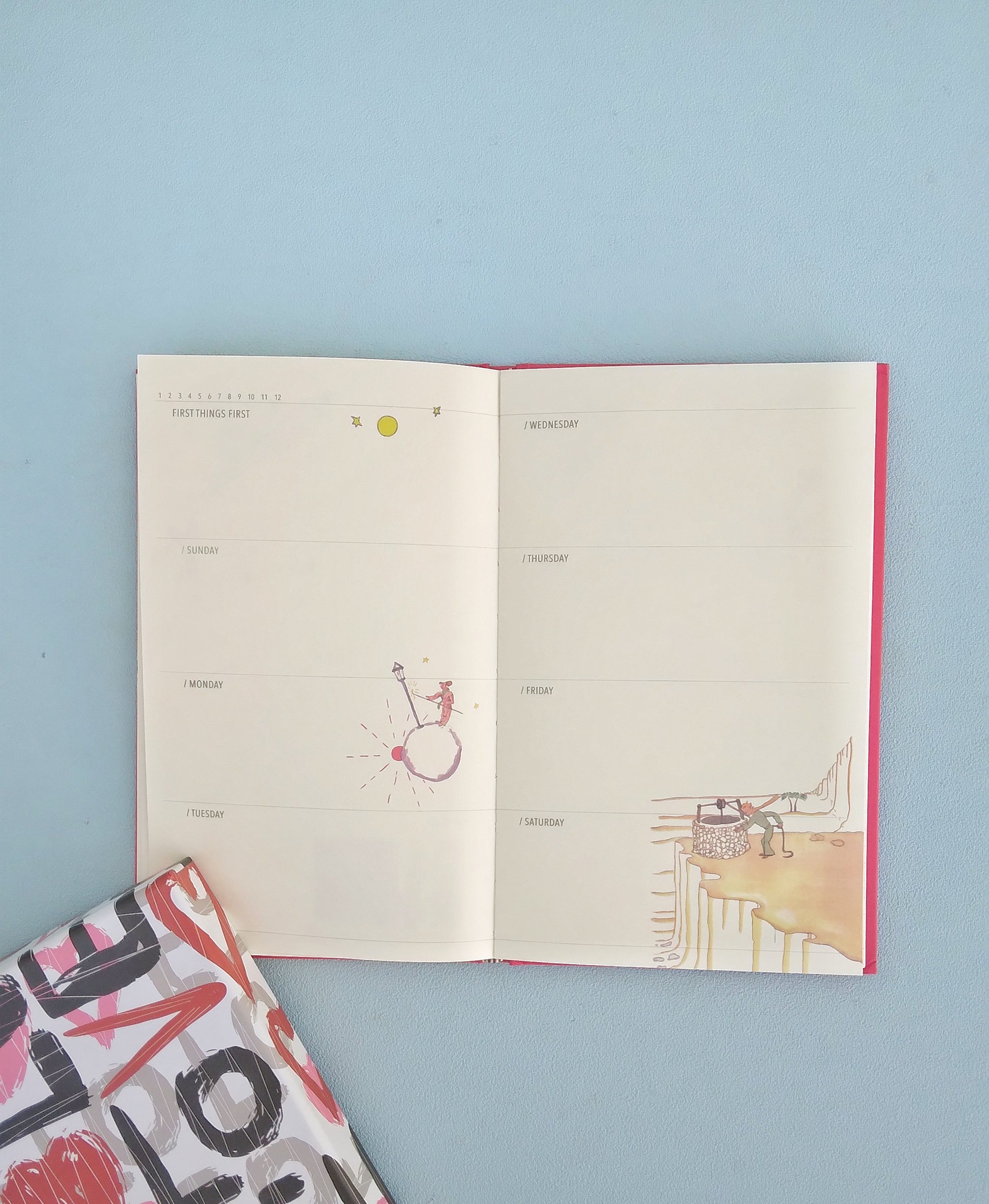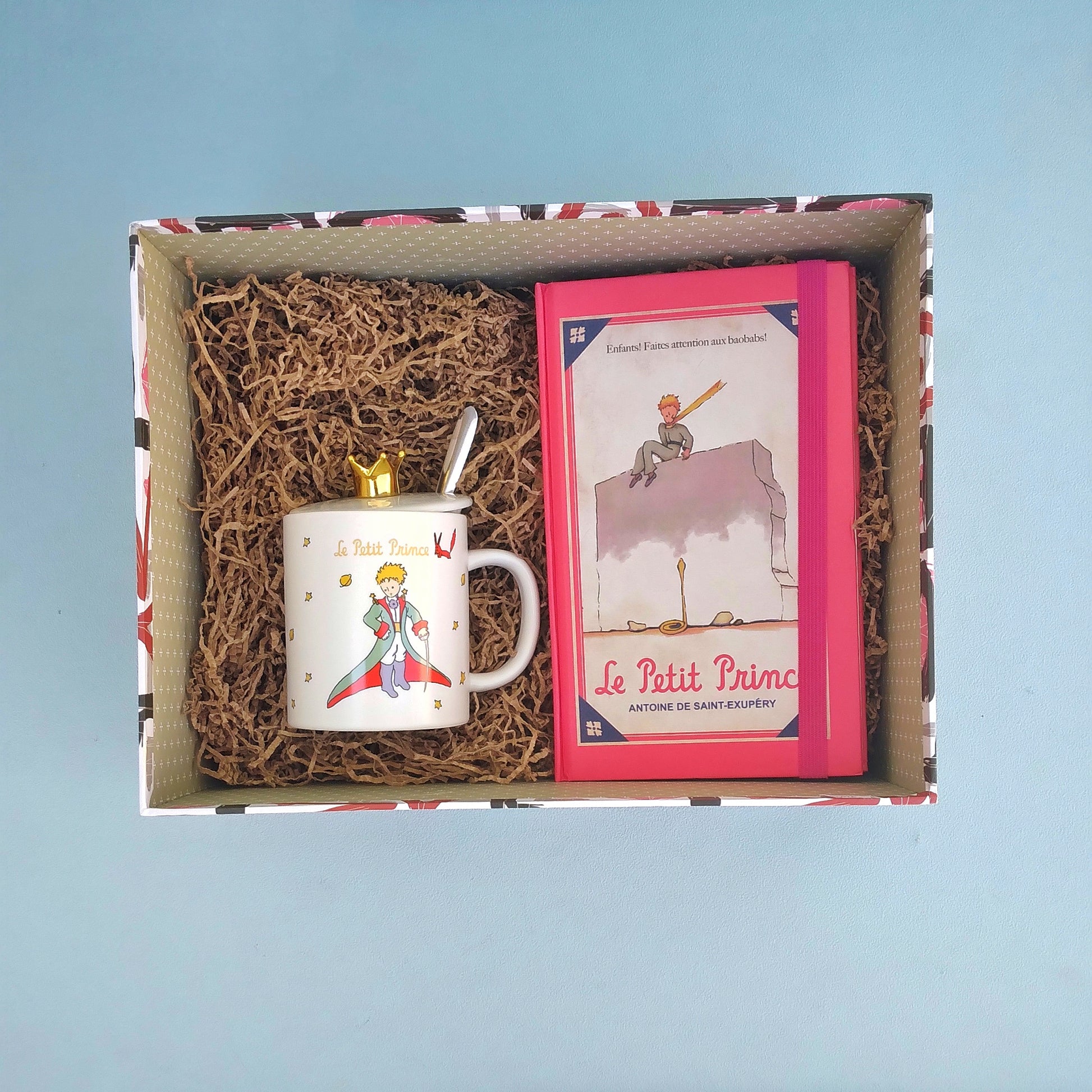 Ένα υπέροχο δώρο για τους λάτρεις του Μικρού Πρίγκιπα! Πορσελάνινη κούπα με καπάκι και ανοξείδωτο κουταλάκι. Διαστάσεις 11x8x13 εκατοστά. Διαλέξτε το σχέδιο που σας αρέσει από την μπάρα επιλογών. Και πανέμορφο ημερολόγιο-σημειωματάριο με τις πρωτότυπες εικονογραφίσεις του Saint-Exupery ΧΩΡΙΣ ΗΜΕΡΟΜΗΝΙΕΣ, ώστε να χρησιμοποιηθεί όποτε εσείς θέλετε! Σε 4 μοναδικά χρώματα και σκληρόδετα εξώφυλλα. Διαστάσεις 13X1X22 εκατοστά. Περιλαμβάνει 12 σελίδες μηνιαίου ημερολογίου, 70 σελίδες εβδομαιδιαίου ημερολογίου και 40 σελίδες για σημειώσεις.