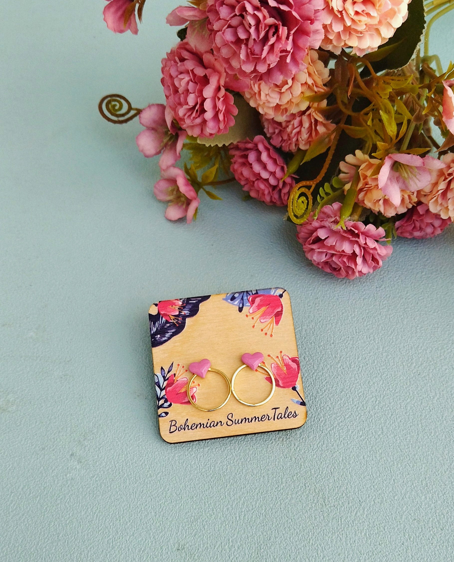 ❊ Σκουλαρίκια καρδία από επιχρυσωμένο μπρούτζο και ζωγραφισμένα με σμάλτο.  /  Μέγεθος: 1.5*1.8 cm