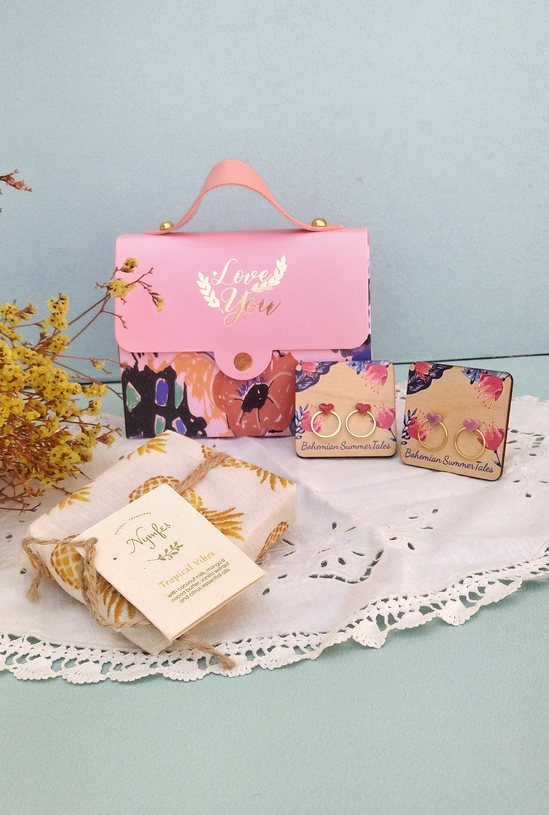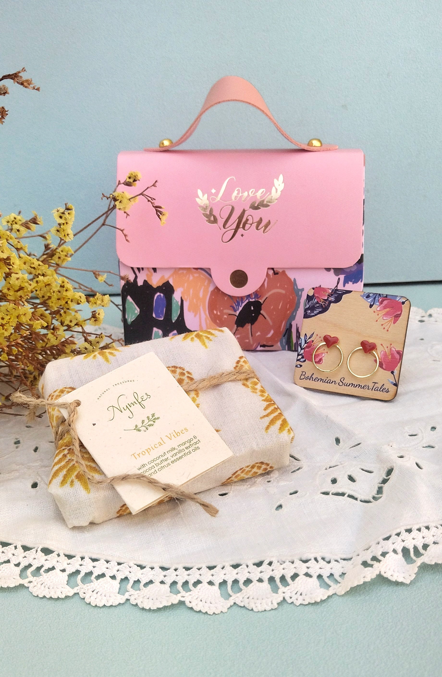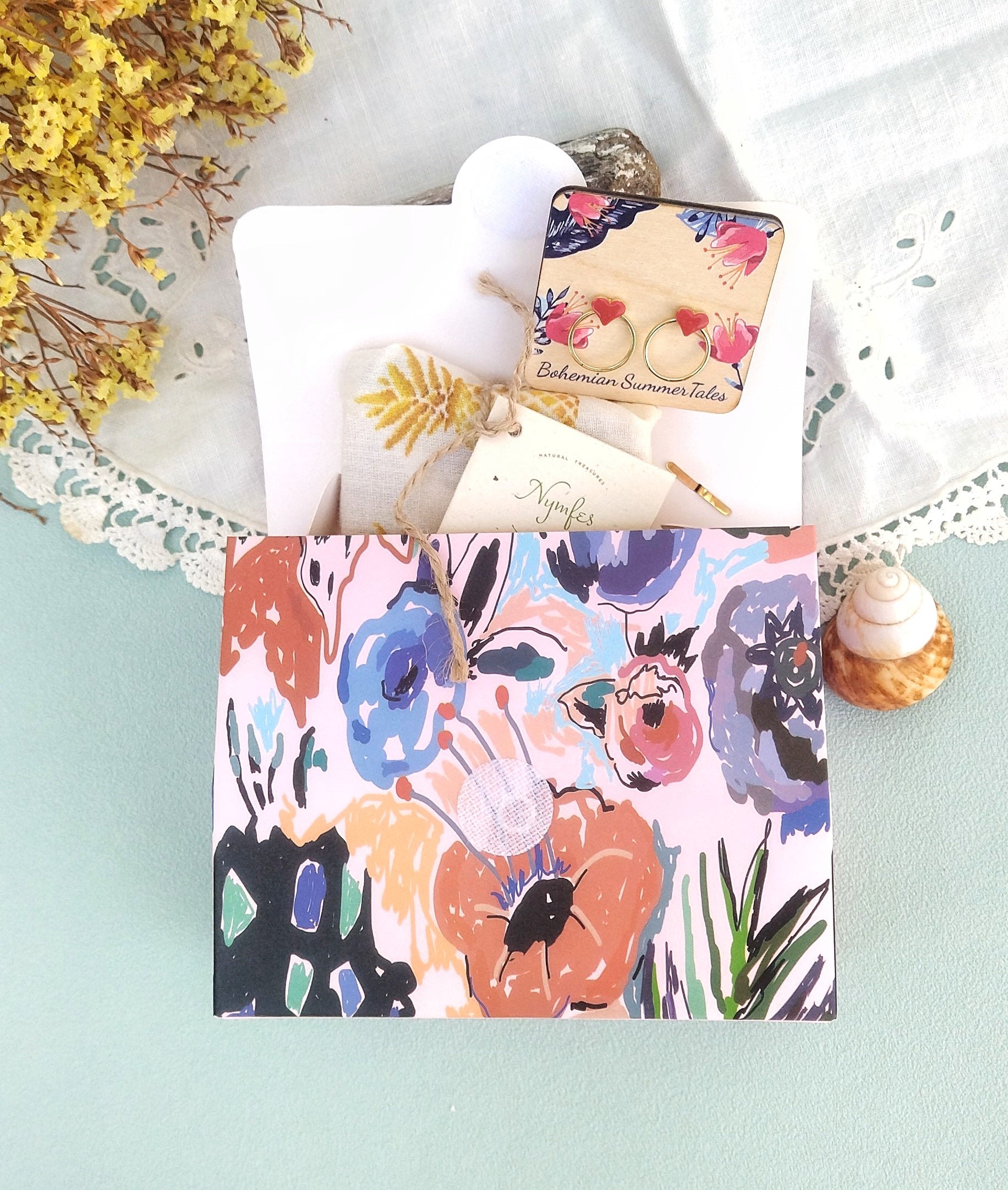 Το υπέρτατο δώρο χαλάρωσης για την φίλη που γιορτάζει ή τη σούπερ μαμά της χρονιάς! Το τσαντάκι μας είναι το ιδανικό πακέτο δώρου για να "κακομάθει" τα αγαπημένα σας πρόσωπα και να τους εκφράσει την αγάπη σας.. Κάνε το συνδυασμό που θές με τα προιόντα προσωπικής περιποίησης των αγαπημένων NYMFES cosmetics από φυσικά και δερματολογικά ελεγμένα καλλυντικά σε συνδυασμό με κοσμηματάκια της συλλογής μας και θα παραλάβεις το πιο μυρωδάτο και πρωτότυπο δώρο σε συσκευασία μαγική!