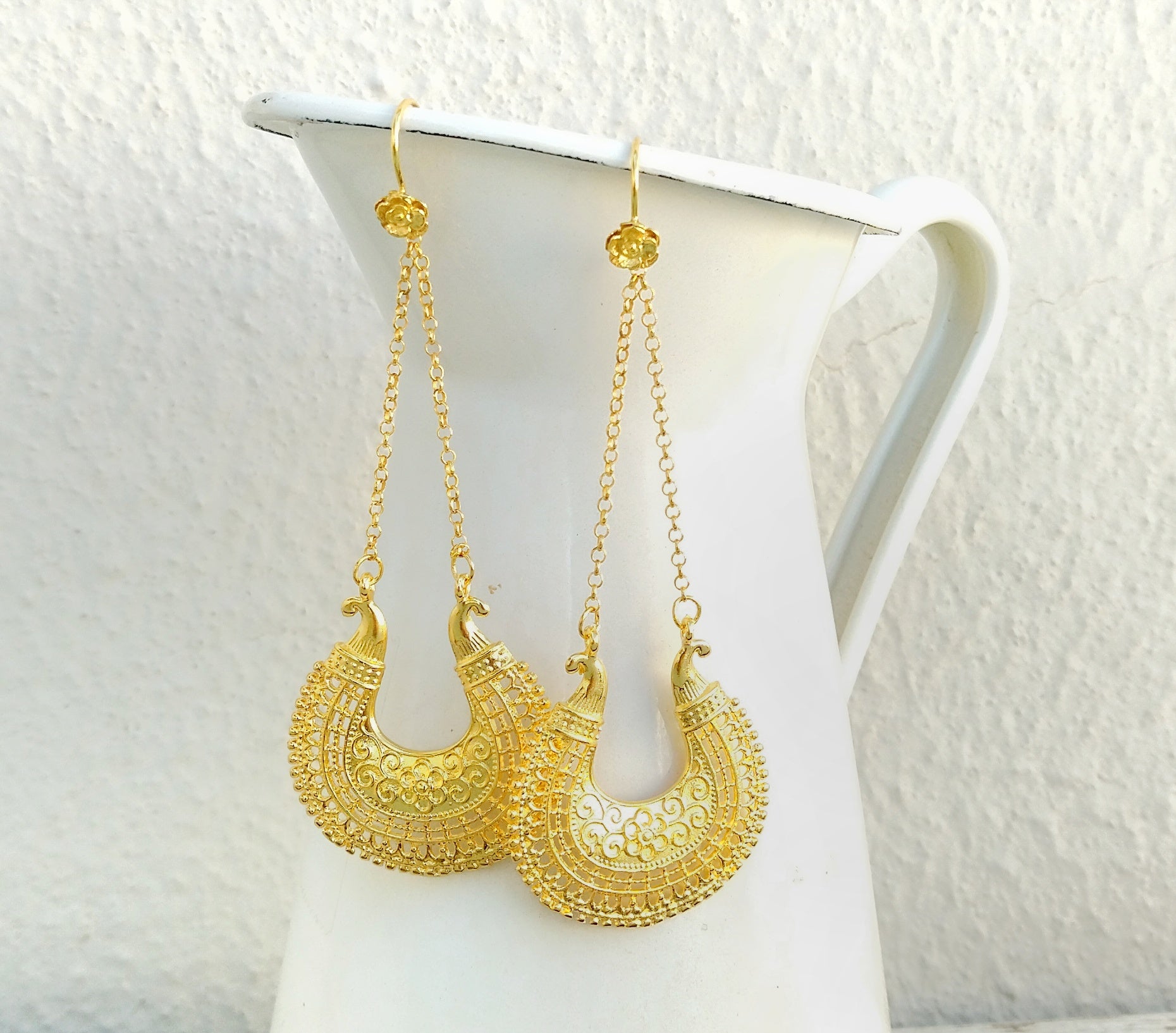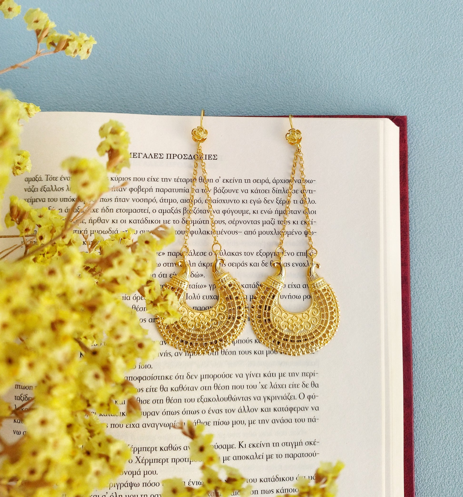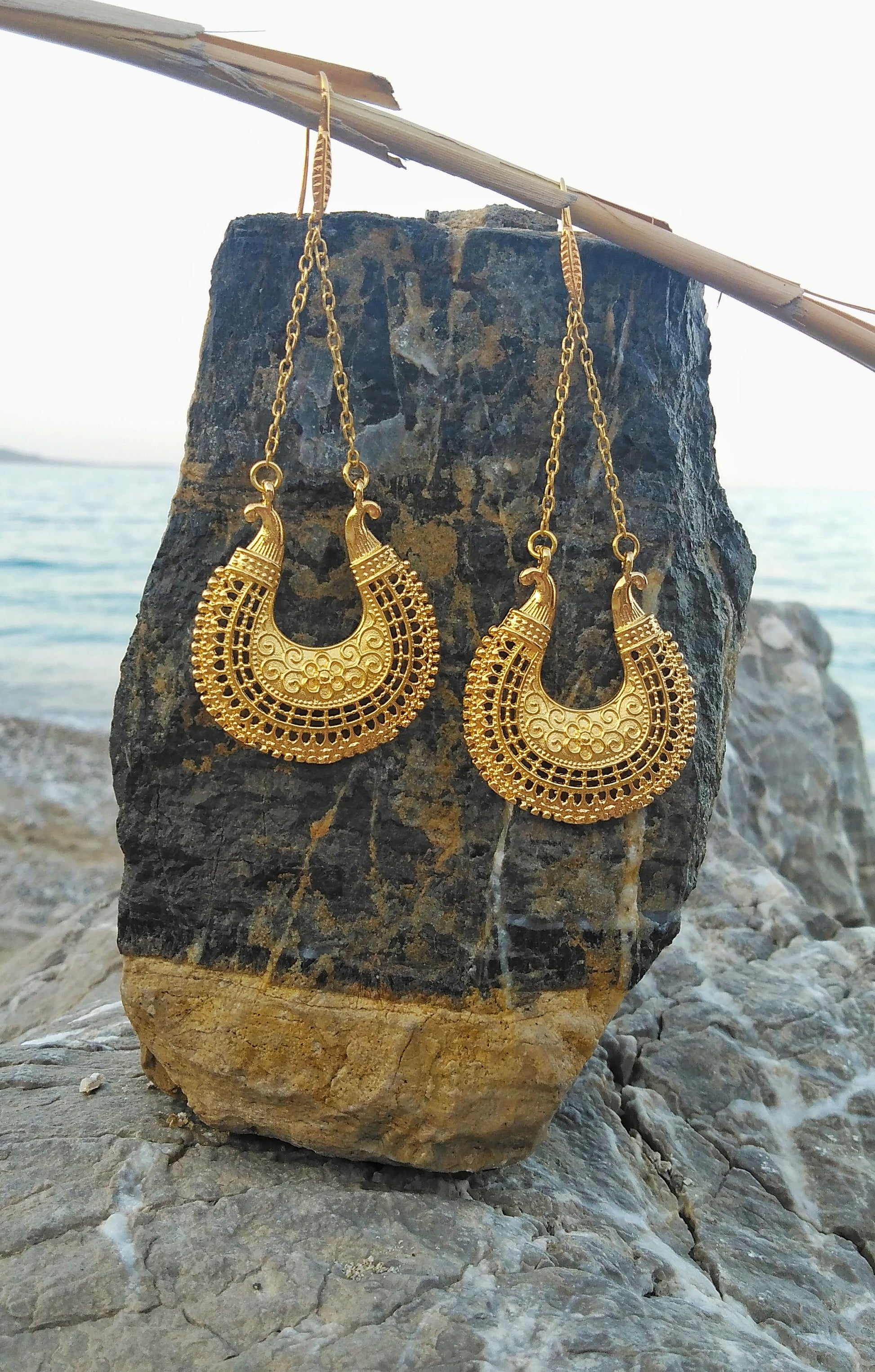 22Κ χρυσά σκουλαρίκια φτιαγμένα από μπρούντζο.Ιδανικά για να δώσουν ένα πιο επιβλητικό ύφος στο boho chic φόρεμα σας ή να αναβαθμίσουν κάθε σας ντύσιμο. Φτιαγμένα με προσοχή στην λεπτομέρεια, είναι αφιερωμένα σε κάθε γυναίκα που αισθάνεται βασίλισσα....