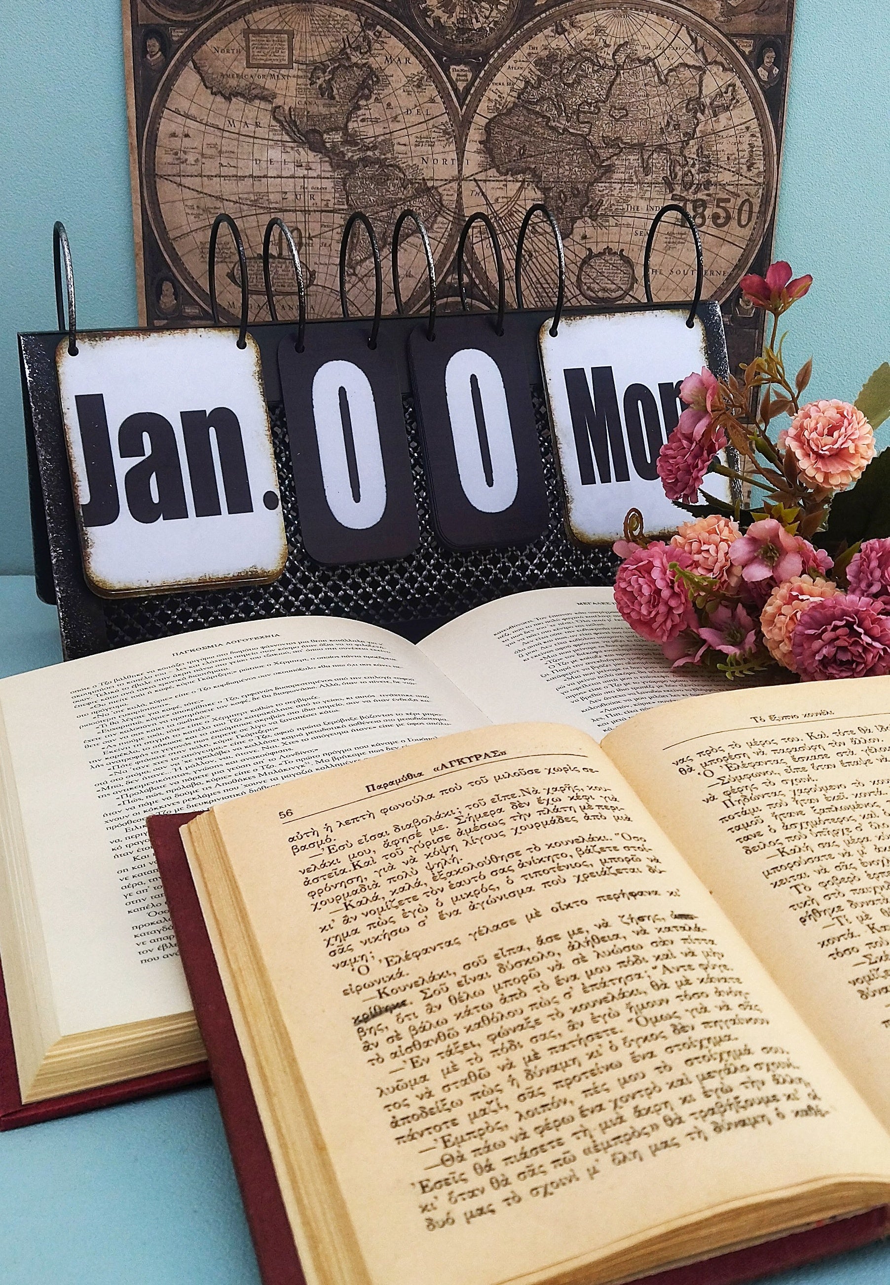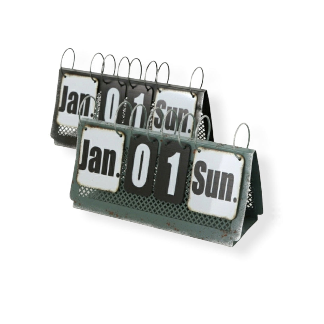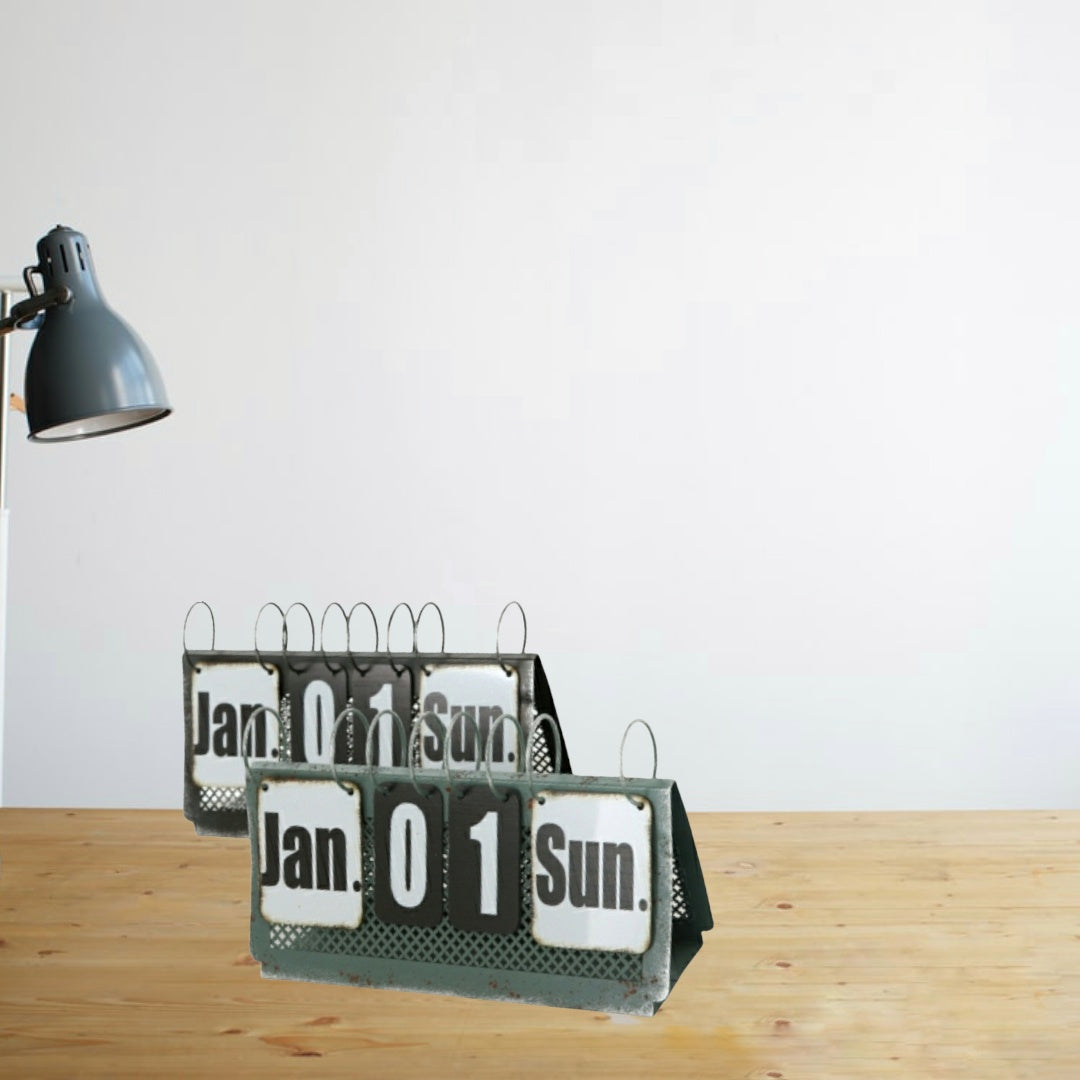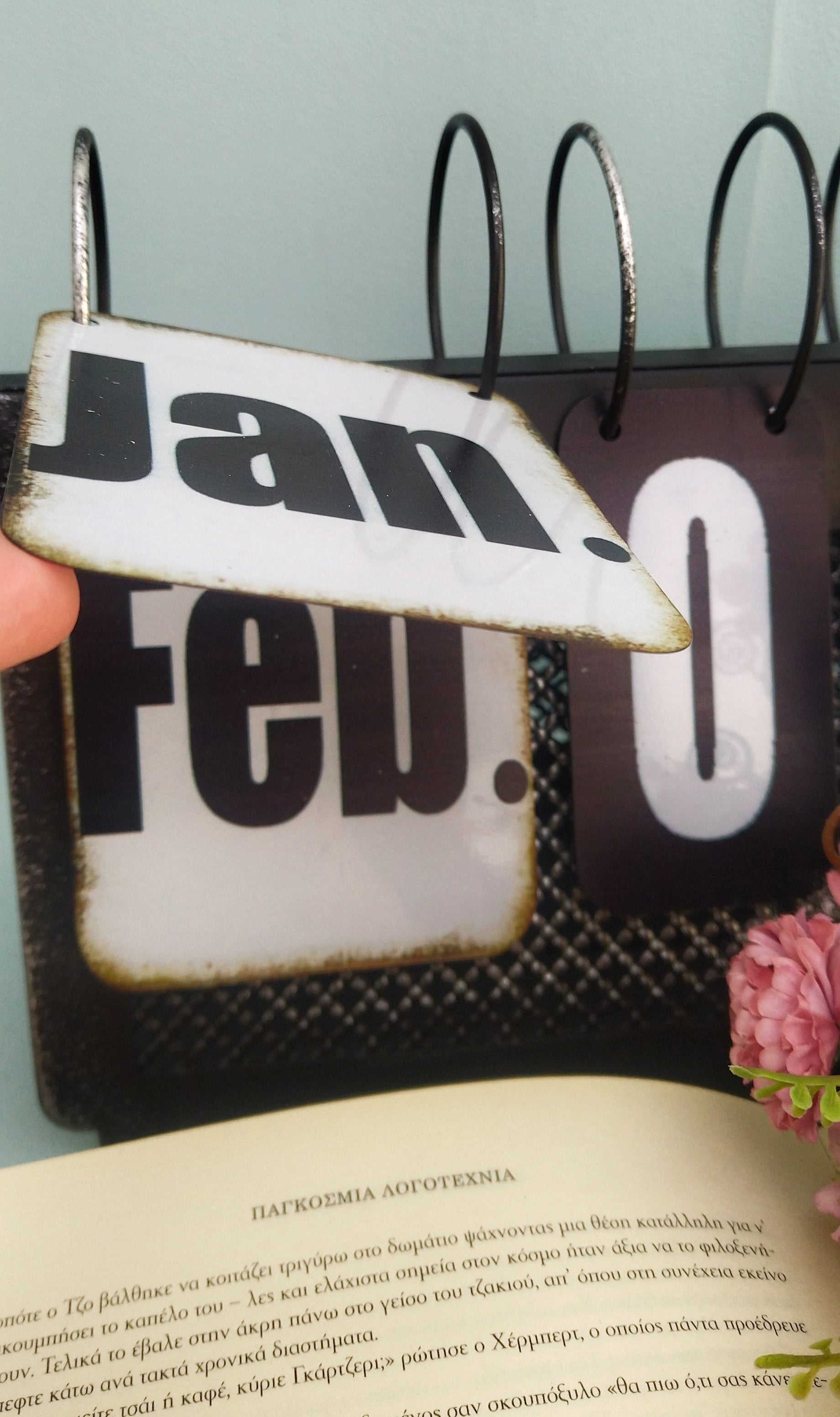 Ημερολόγιο γραφείου σε μεγάλο μέγεθος και σε βιομηχανικό στυλ. Με κρίκους ώστε να γυρίζετε ημερομηνία, μέρα και μήνα. Ιδανικό δώρο για άντρες.