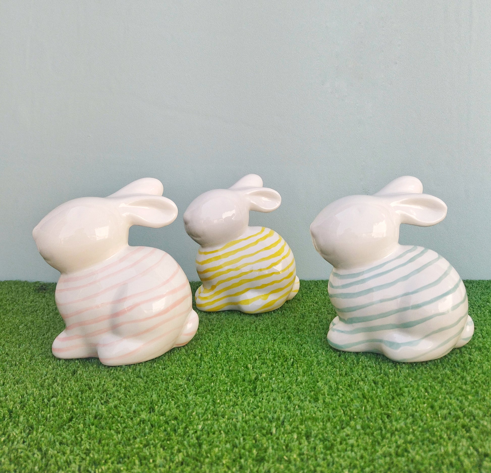 Αξιαγάπητο και παιχνιδιάρικο, πορσελάνινο λαγουδάκι σε τρείς αποχρώσεις.
