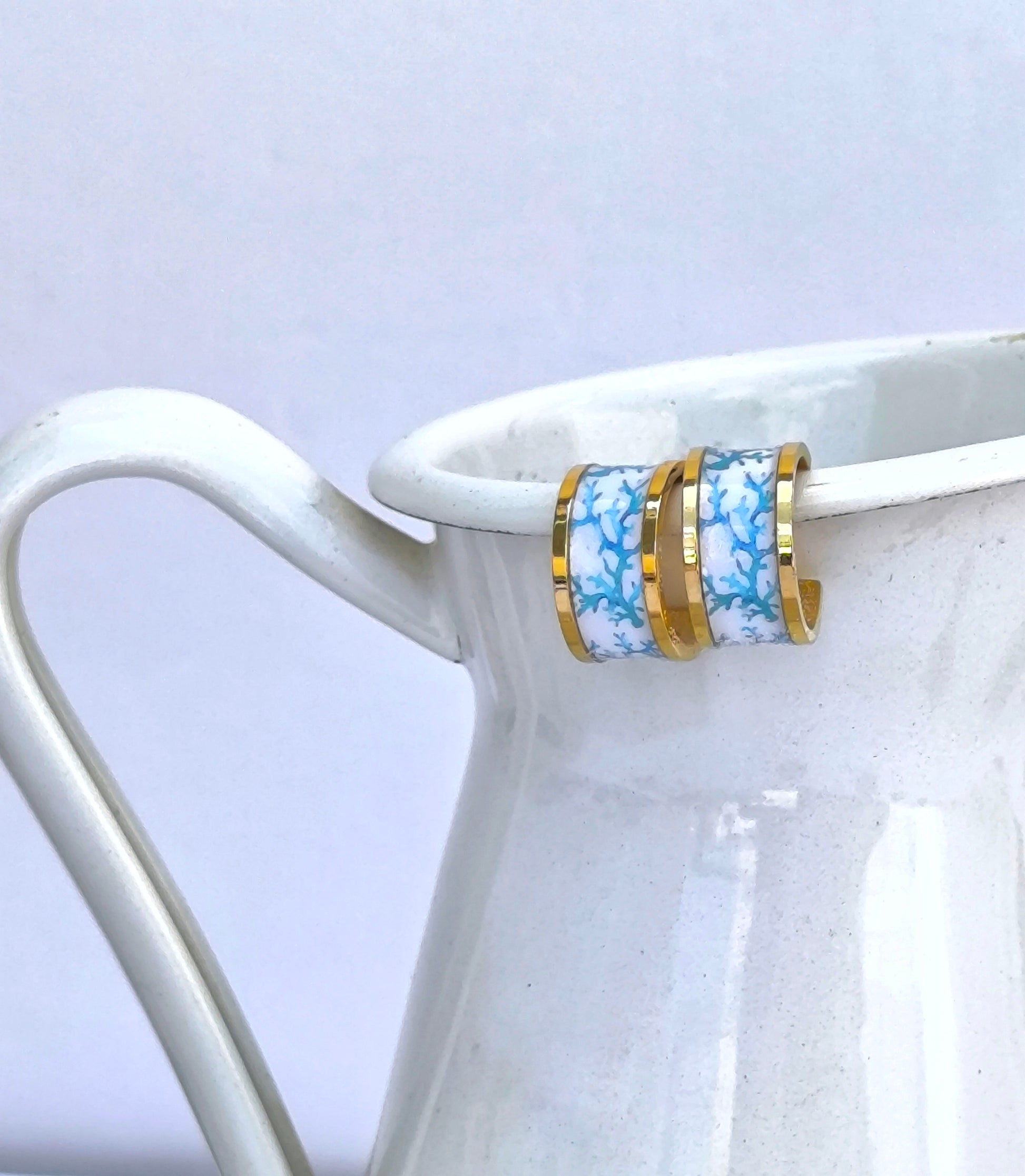 Ολόκληρο το μεσογειακό καλοκαίρι σε ένα ζευγάρι σκουλαρίκια! Χρυσά κρικάκια από ανοξείδωτο ατσάλι, ζωγραφισμένα με κοράλια στις πιο τοπ καλοκαιρινές αποχρώσεις. Υποαλλεργικά, μικρά και κομψά, ιδανικά για κάθε σας καλοκαιρινή εμφάνιση. Μέρος της συλλογής μας "Τα Παλιά Πλακάκια", ξυπνούν αναμνήσεις από ηλιόλουστες διακοπές, φθαρμένα ψηφιδωτά δάπεδα και μεσογειακά σπίτια γεμάτα ιστορία και συναίσθημα.