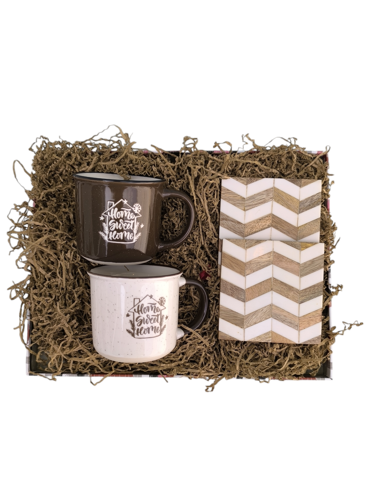 Ένα δώρο όμορφο και χρηστικό! Σετ κεραμικές κούπες σε υπέροχα γήινα χρώματα ασορτί με 2 σουβέρ σε σχέδιο ψαροκόκκαλο από ξύλο μάνγκο και φίλντισι. Μοναδικό δώρο για ένα καινούργιο σπίτι ή για δώρο γάμου! Το παραλαμβάνεται σε κουτί πολυτελείας έτοιμο για να το προσφέρετε ως δωράκι. ❊ Μέγεθος Σουβέρ: 10 εκατοστά διάμετρος