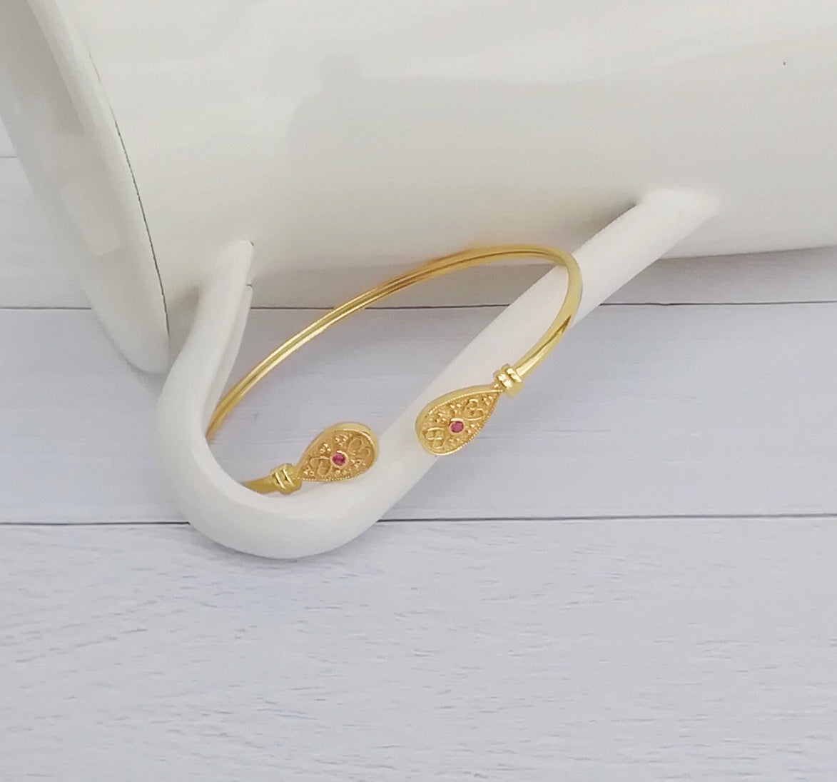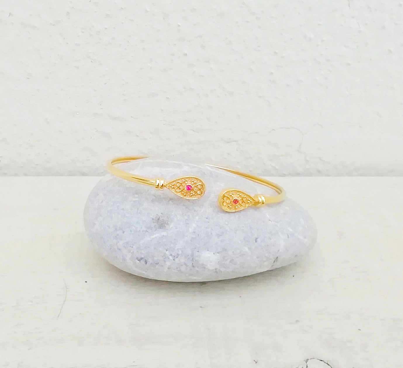 Βυζαντινό Βραχιόλι Βέργα Από 22k Επιχρυσωμένο Ασήμι Και Ρόζ Zircon