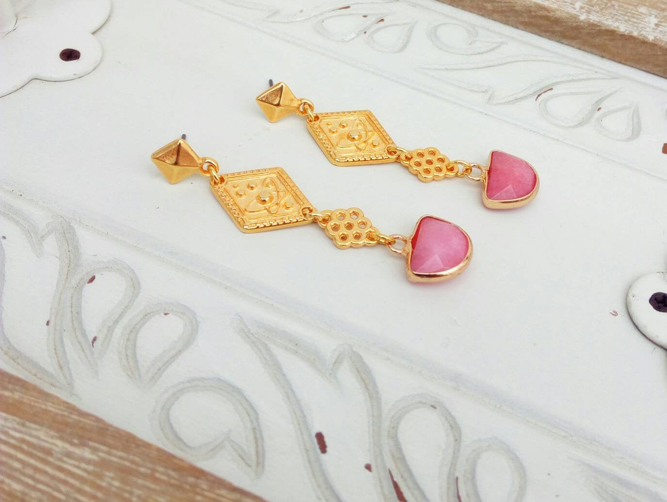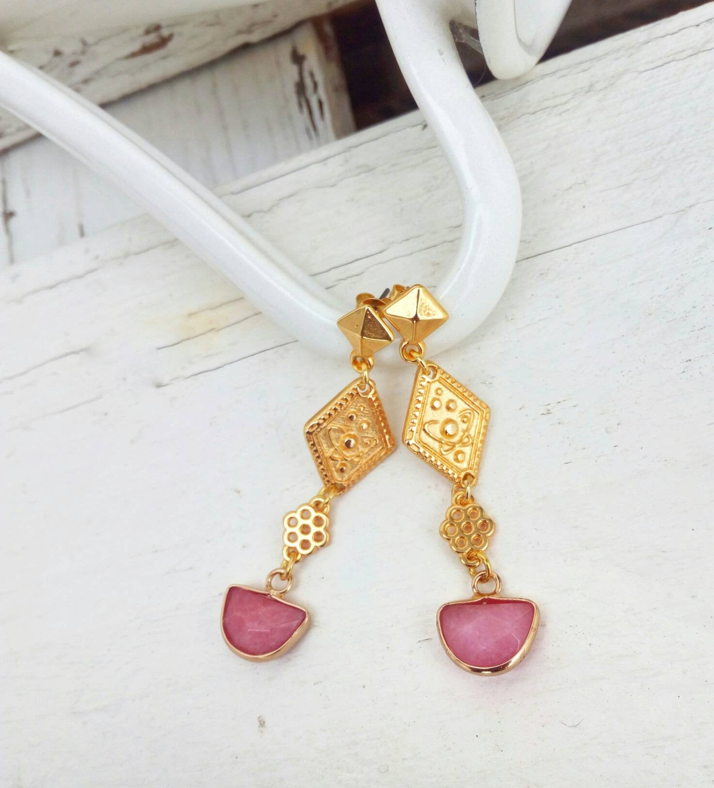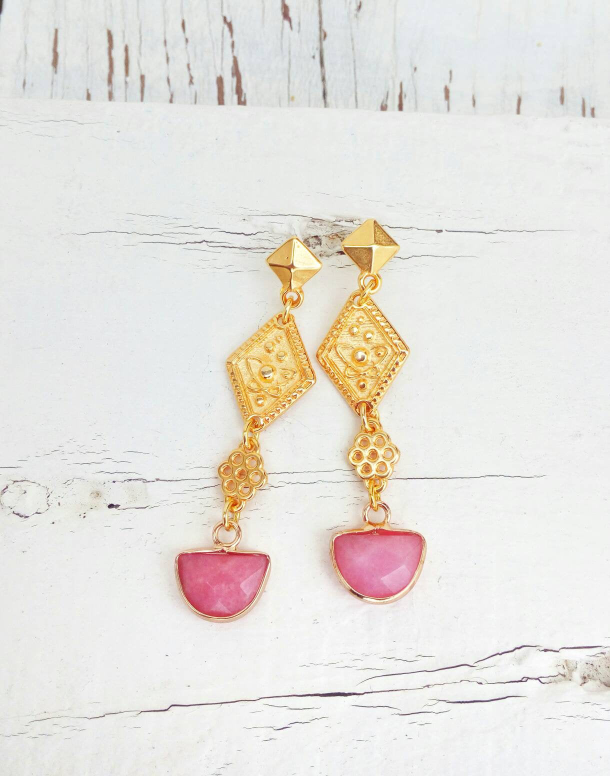 Μακρυά 22Κ Επιχρυσωμένα Σκουλαρίκια Με Ροζ Jade