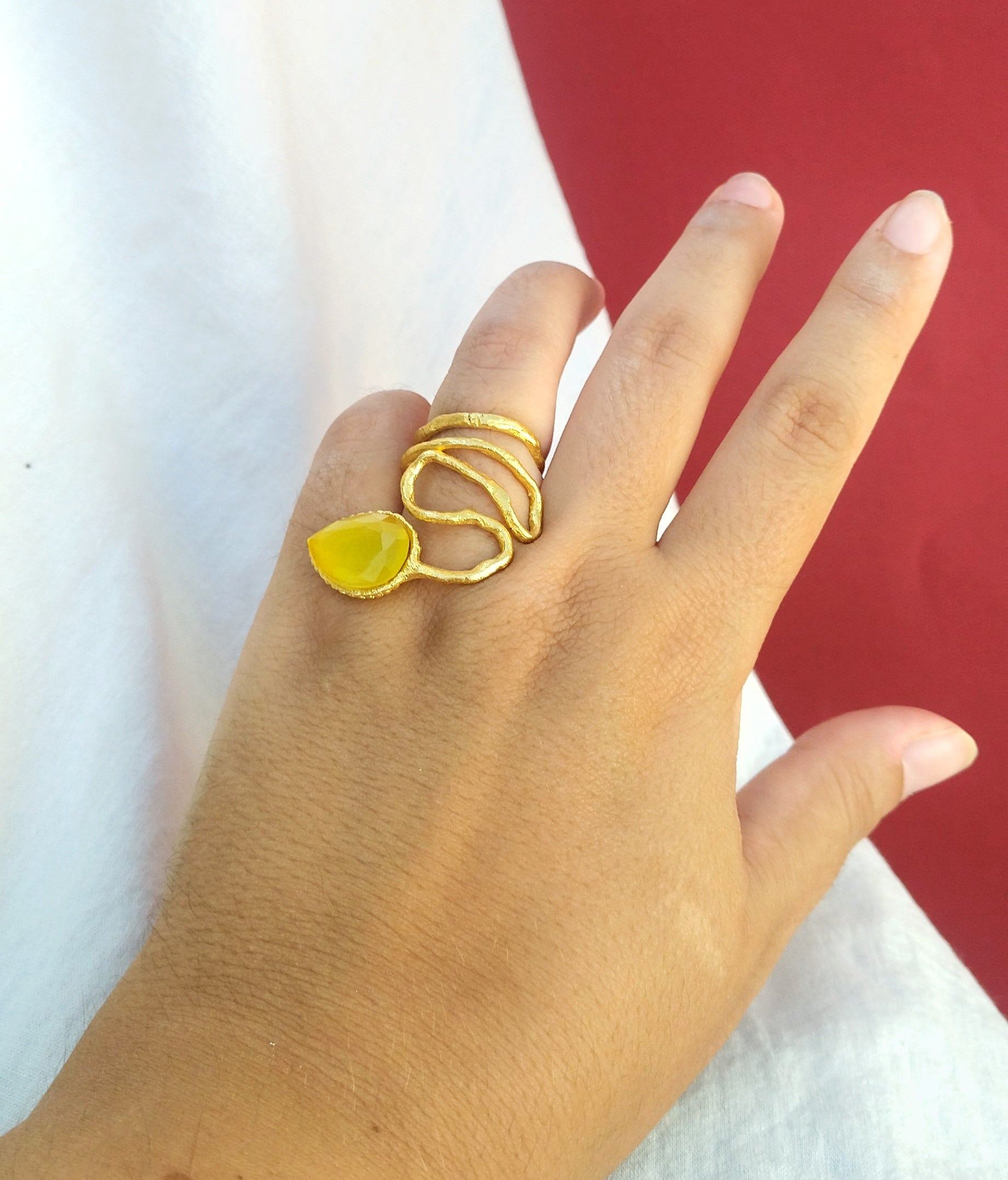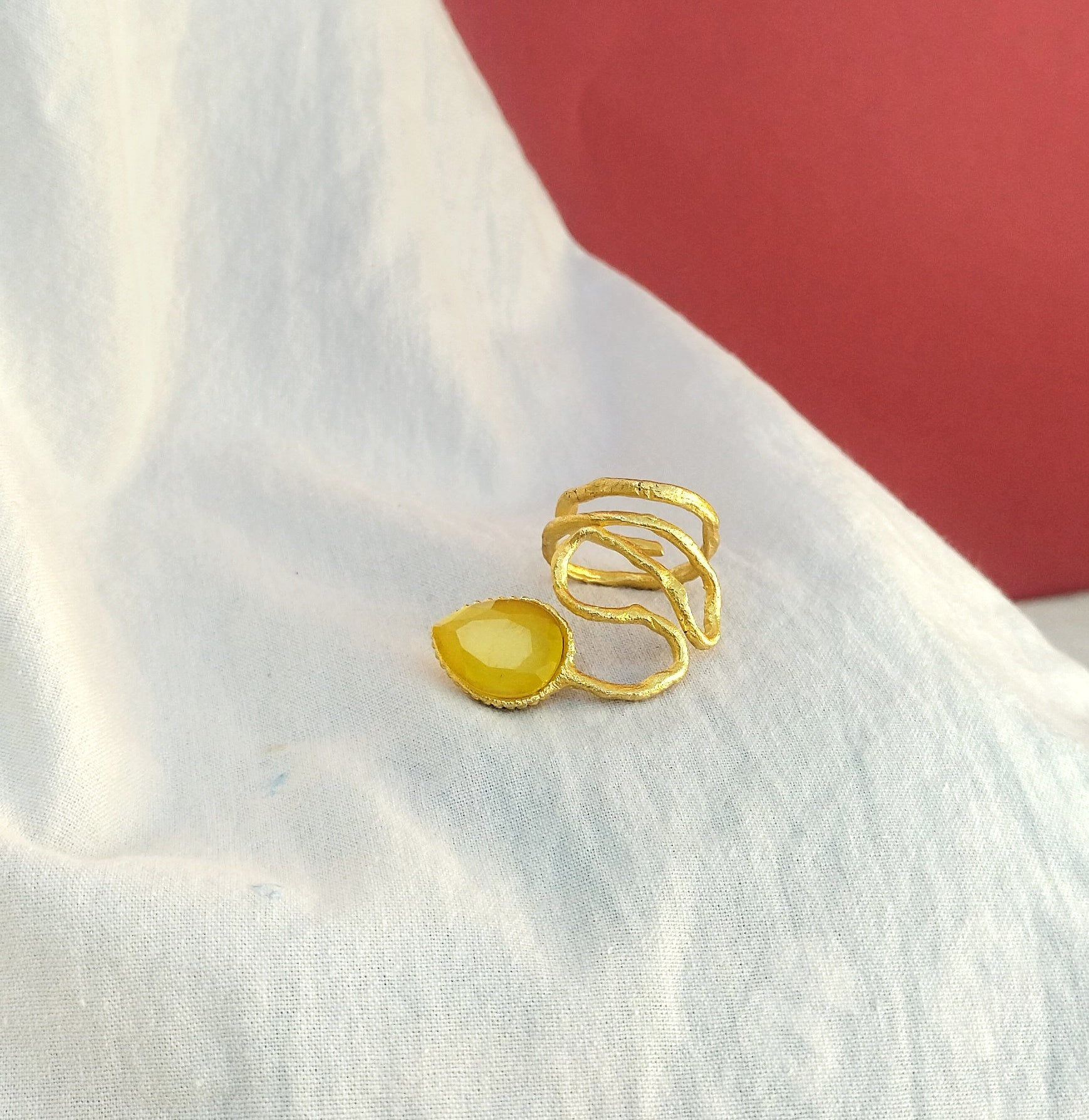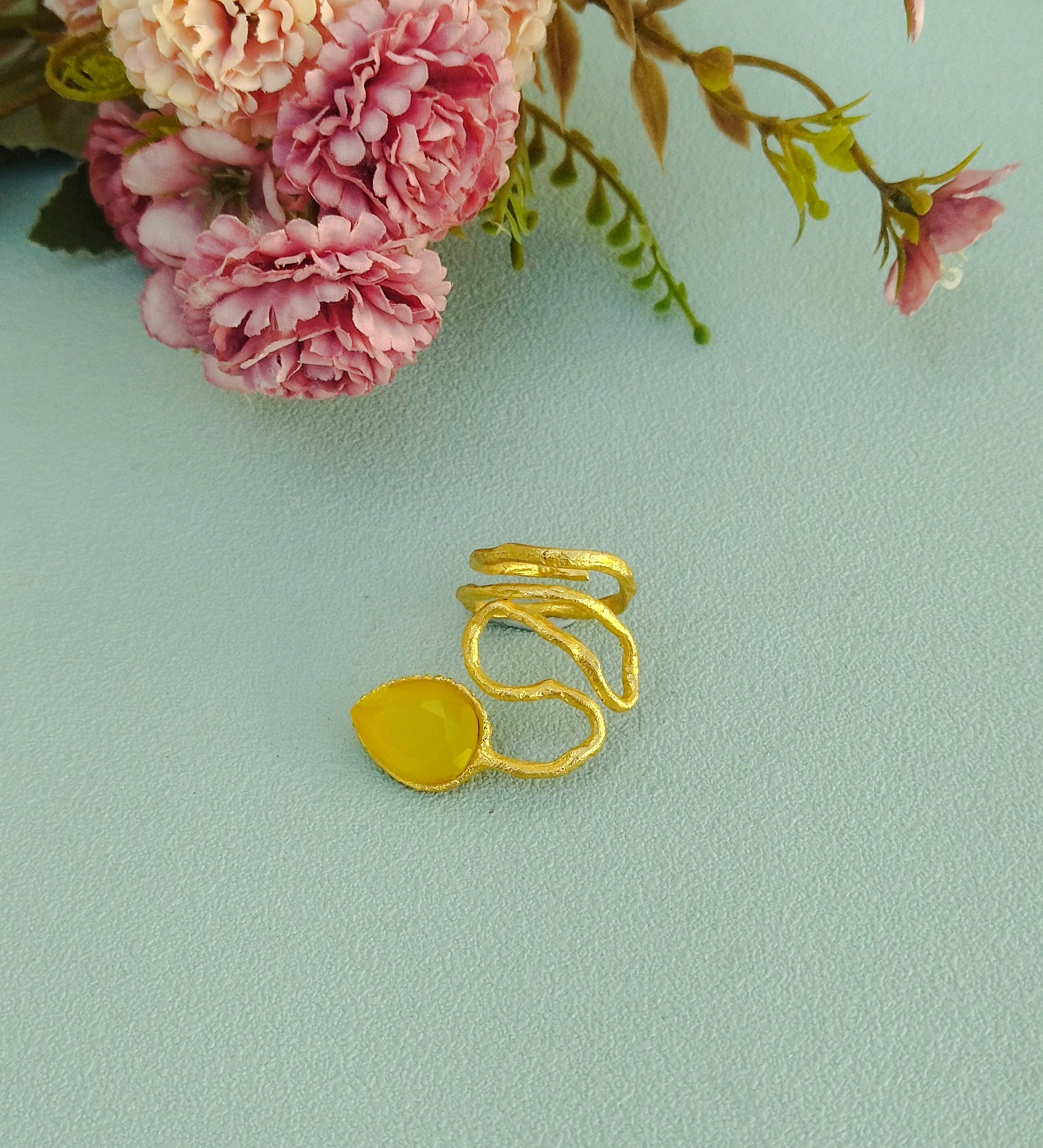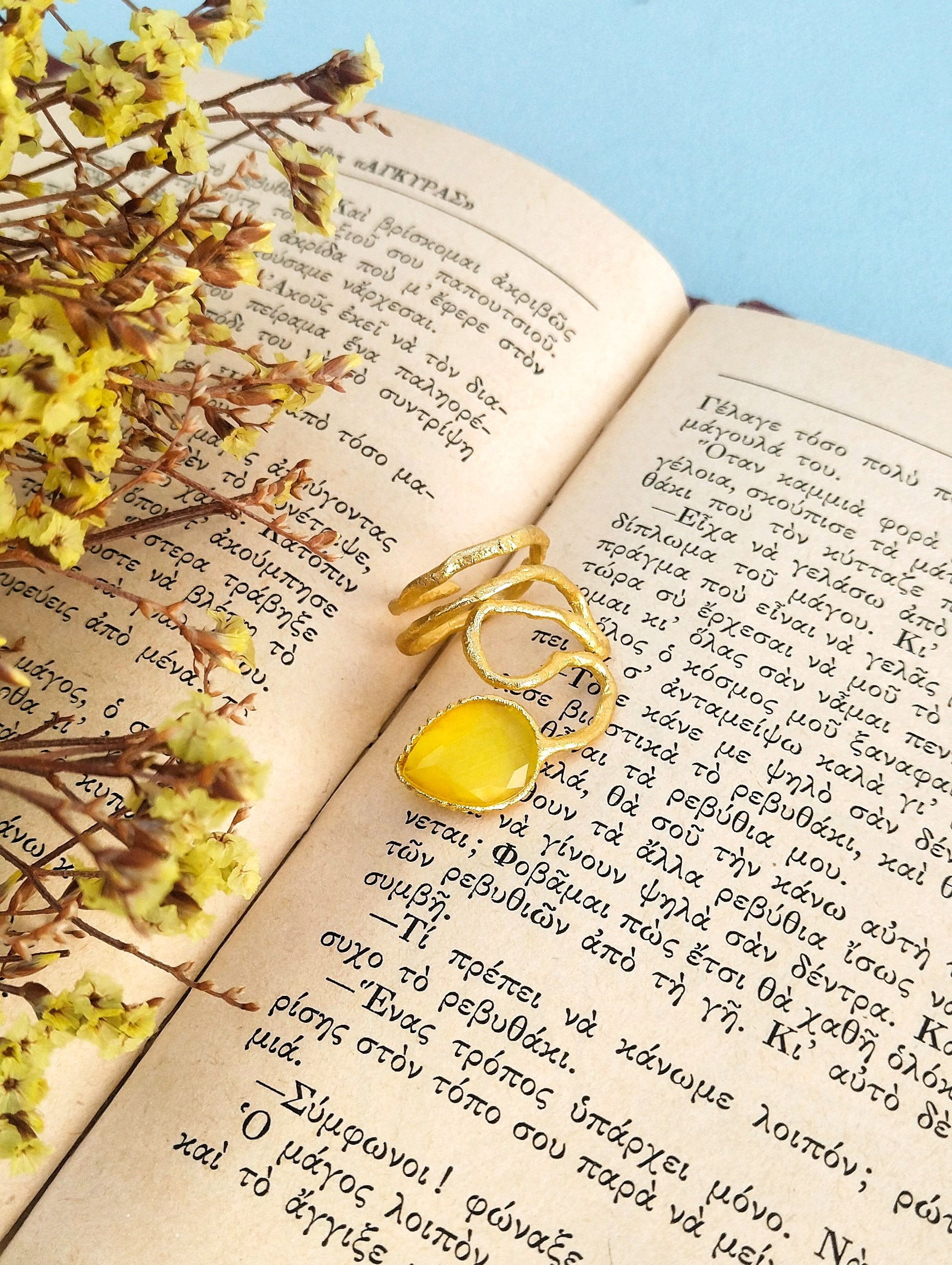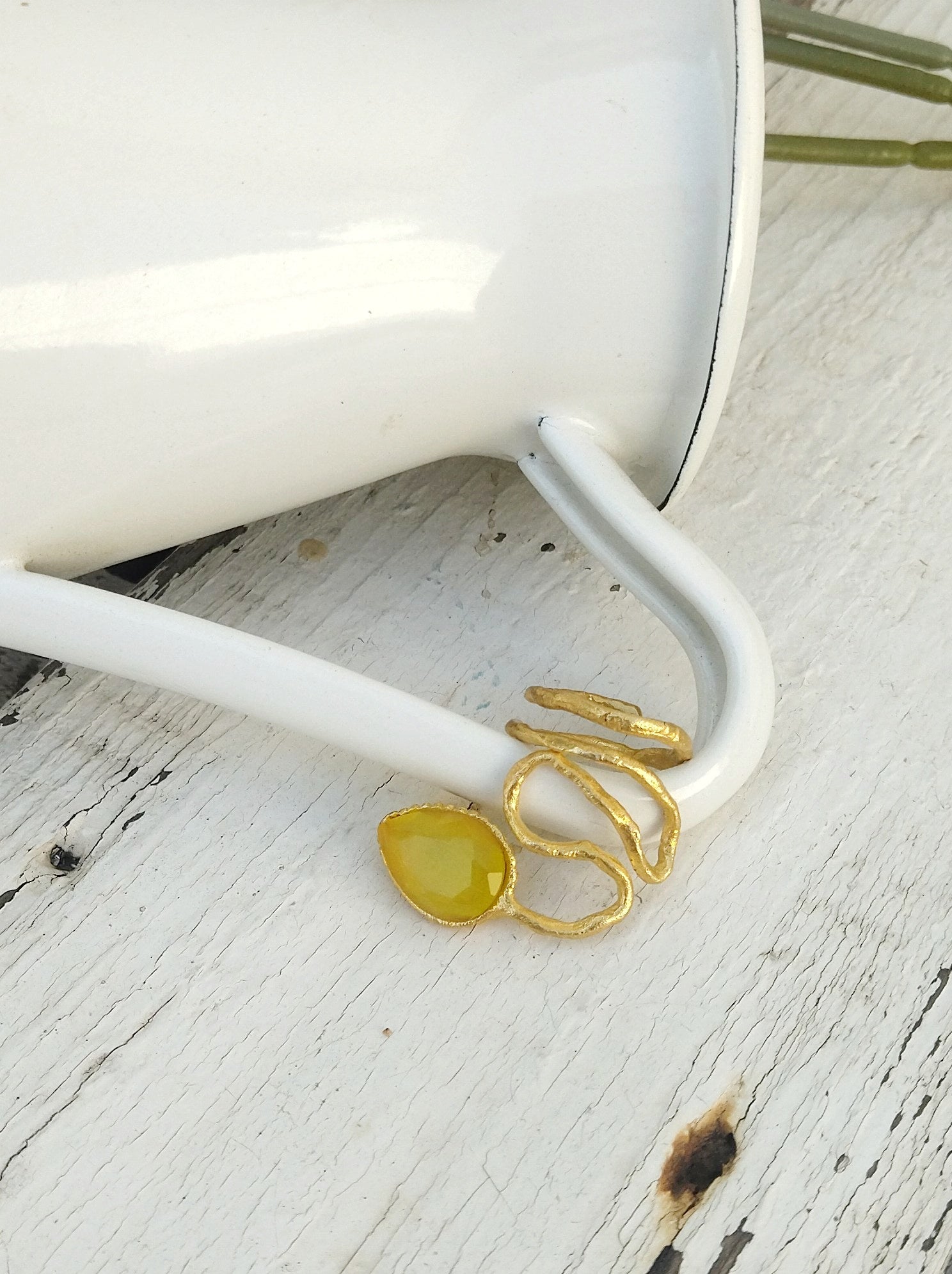 Φτιαγμένο από ορείχαλκο, επιχρυσωμένο με 24 καράτια χρυσό και διακοσμημένο με μια υπέροχη κίτρινη πέτρα χρησοβήρυλλου.