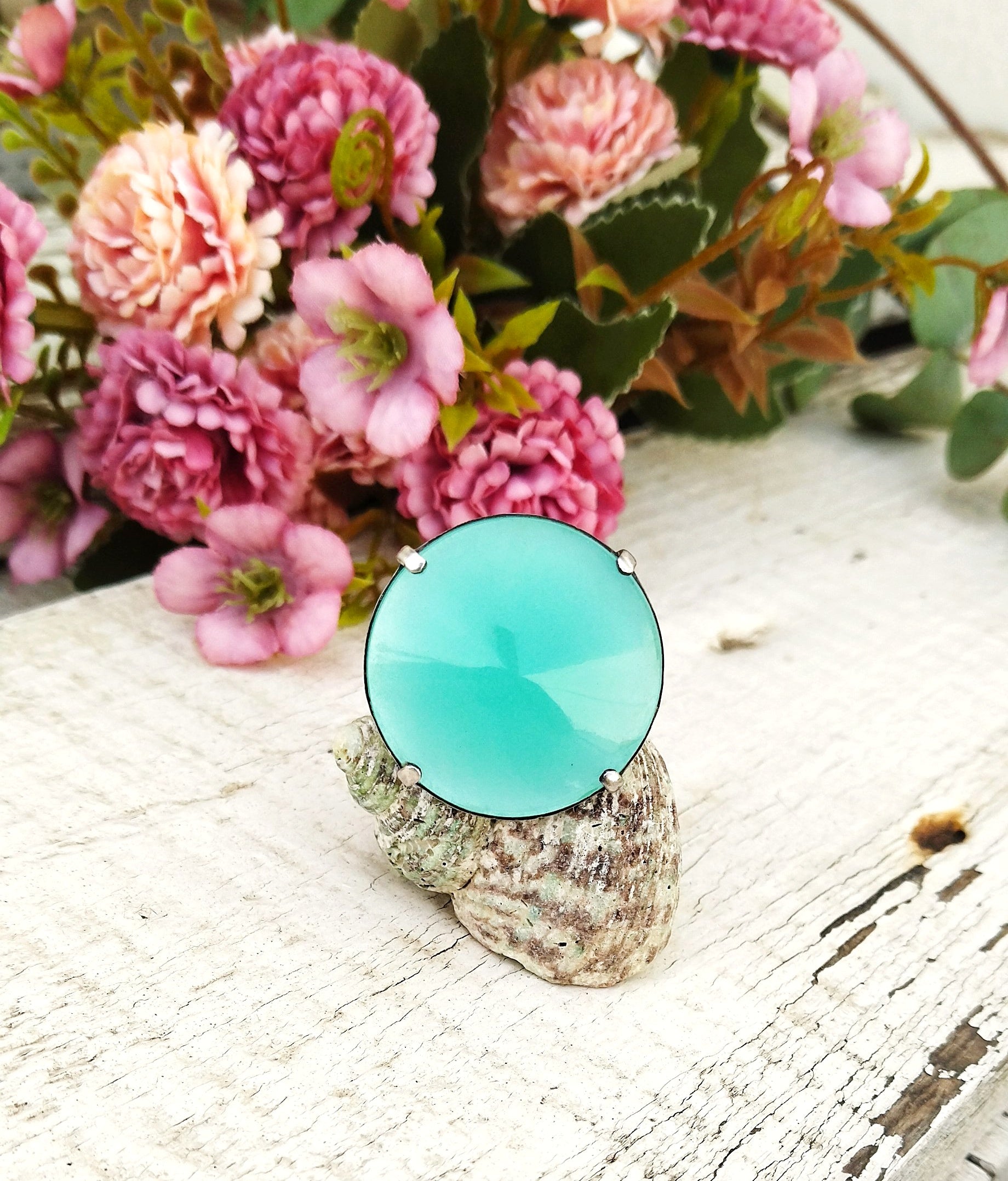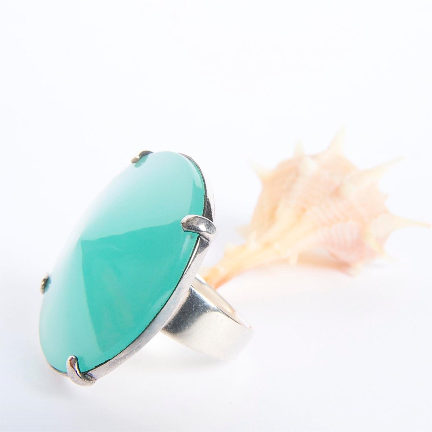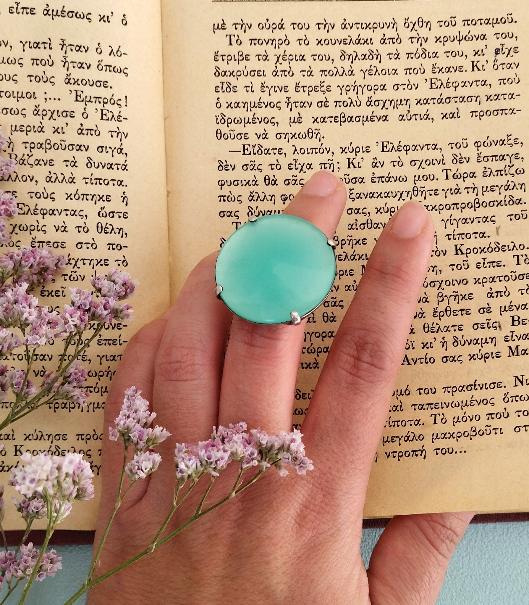 Χρώμα ολογάλανο σαν τα νερά της Καραιβικής! Μια πέτρα μοναδική, στολισμένη σε δαχτυλίδι από μασίφ ασήμι φτιαγμένο για μια γοργόνα της στεριάς...