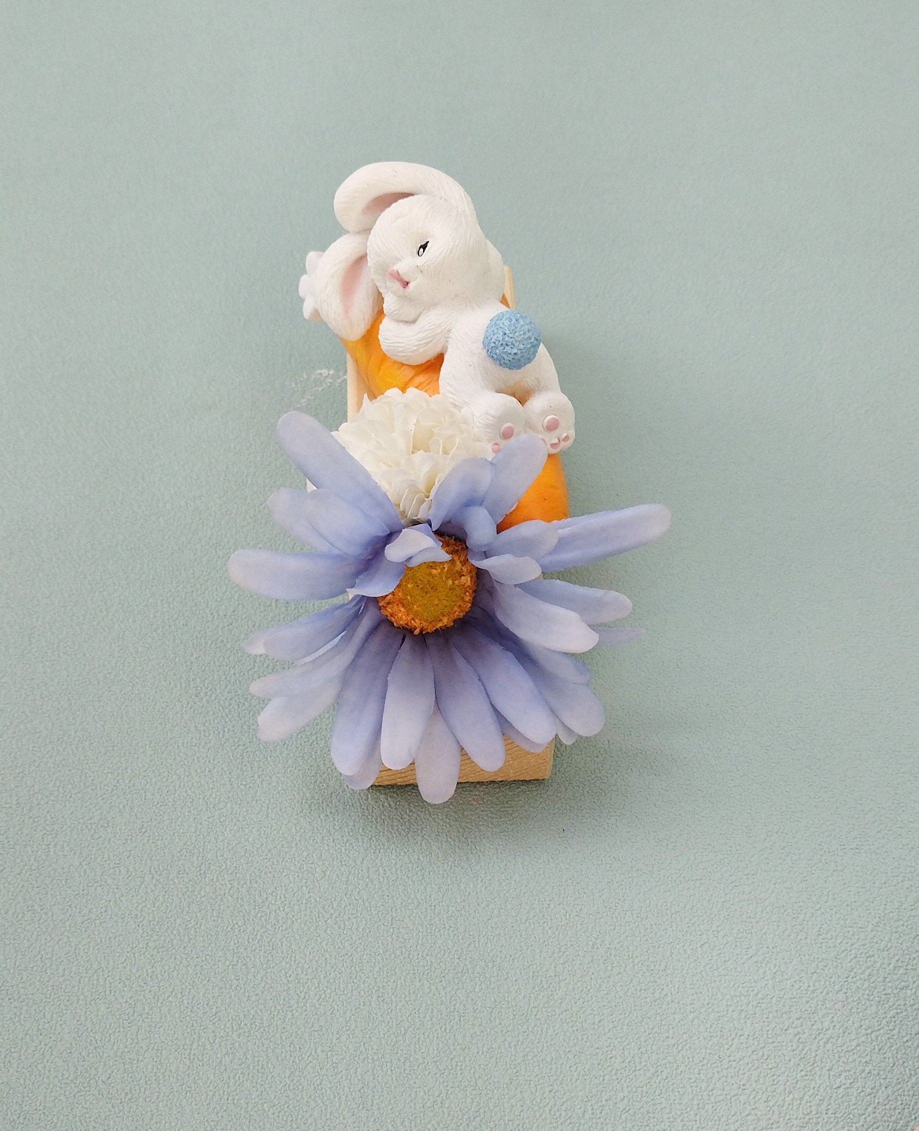 Το πιο χαριτωμένο κουνελάκι που έχετε δεί ποτέ! Ένα διακοσμητικό για το γραφείο ή το σαλόνι σας φτιαγμένο από γύψο και ζωγραφισμένο στο χέρι, διακοσμημένο με τεχνητά λουλούδια. Εμποτισμένο με αιθέρια έλαια, μπορεί να χρησιμοποιηθεί και ως διακοσμητικό χώρου. Επιλέξτε να το παραλάβετε μέσα σε ένα υπέργλυκο πασχαλινό μεταλλικό κουτί, και έχετε την τέλεια λύση για τα εορταστικά σας δωράκια!