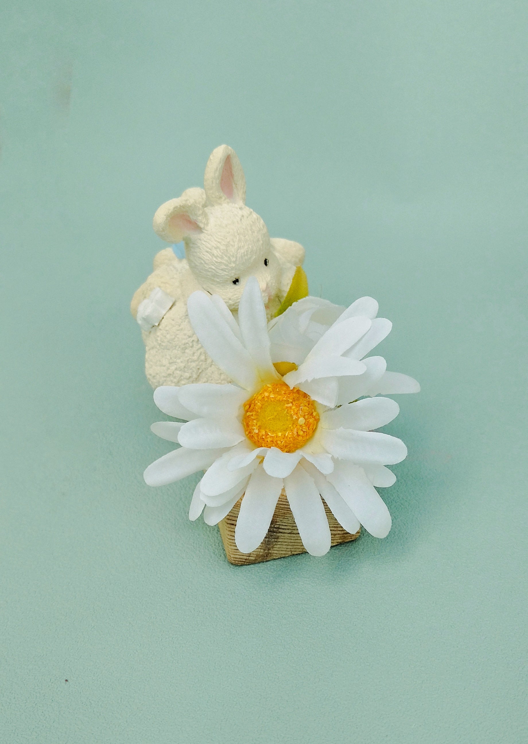 Το πιο χαριτωμένο κουνελάκι που έχετε δεί ποτέ! Ένα διακοσμητικό για το γραφείο ή το σαλόνι σας φτιαγμένο από γύψο και ζωγραφισμένο στο χέρι, διακοσμημένο με τεχνητά λουλούδια. Εμποτισμένο με αιθέρια έλαια, μπορεί να χρησιμοποιηθεί και ως διακοσμητικό χώρου. Επιλέξτε να το παραλάβετε μέσα σε ένα υπέργλυκο πασχαλινό μεταλλικό κουτί, και έχετε την τέλεια λύση για τα εορταστικά σας δωράκια!
