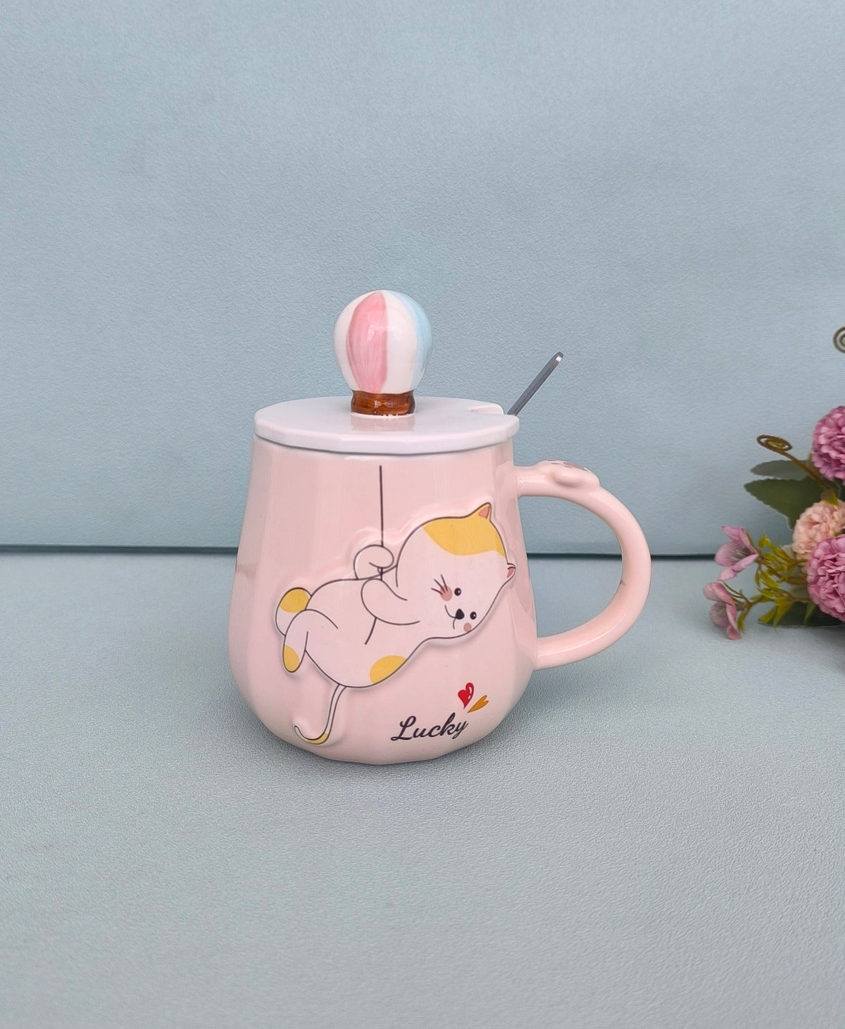 Κεραμική Κούπα Γατούλα με Καπάκι Μπαλόνι