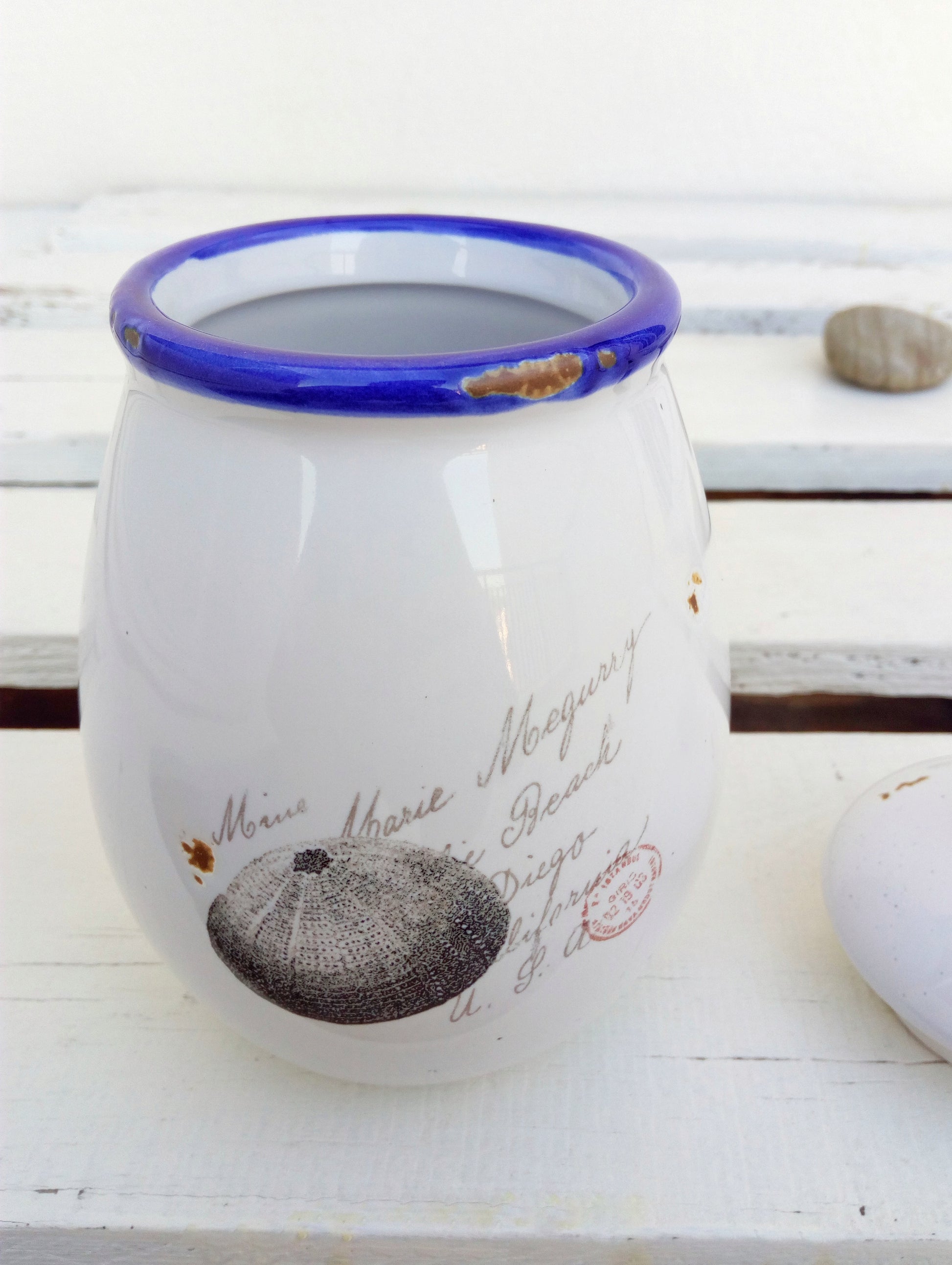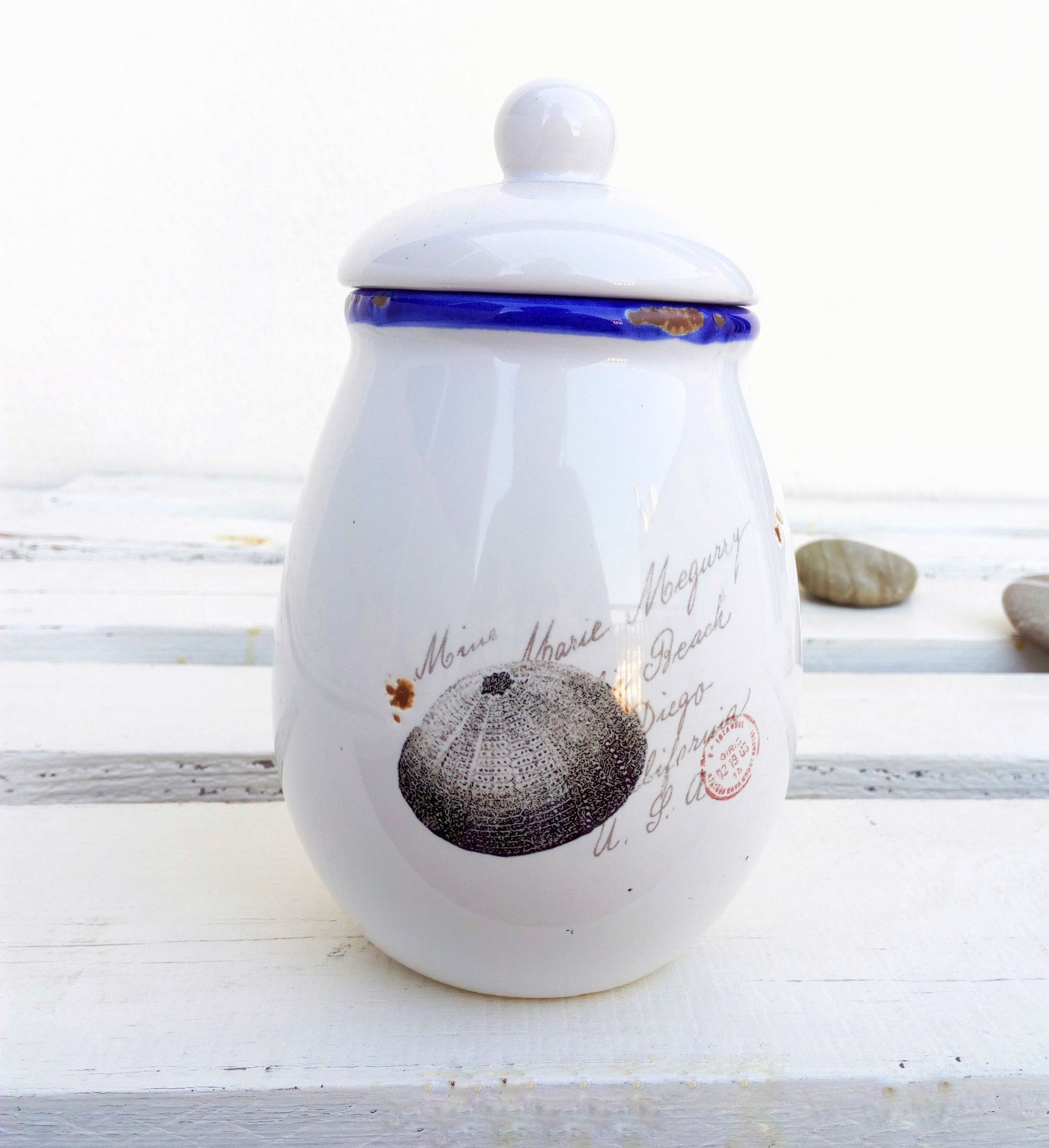 Πορσελάνινο βάζο αποθήκευσης για την κουζίνα σε καλοκαιρινό σχέδιο αχινού. Με σιλικόνη στο καπάκι για να μην ανοίγει εύκολα.