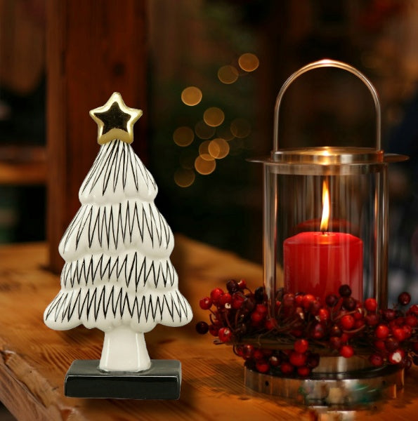 Γλυκύτατο Χριστουγεννιάτικο δεντράκι από δολομίτη. Ο δολομίτης είναι ανθρακικό ορυκτό του ασβεστίου και του μαγνησίου και το αποτέλεσμα που δίνει μοιάζει αρκετά στην όψη με την πορσελάνη. Δεν είναι τοξικό και κυρίως είναι φιλικό στο περιβάλλον. Οι λευκές και χρυσές αποχρώσεις του δέντρου σε συνδυασμό με τη μαύρη βάση δίνουν μια αίσθηση πολυτέλειας...