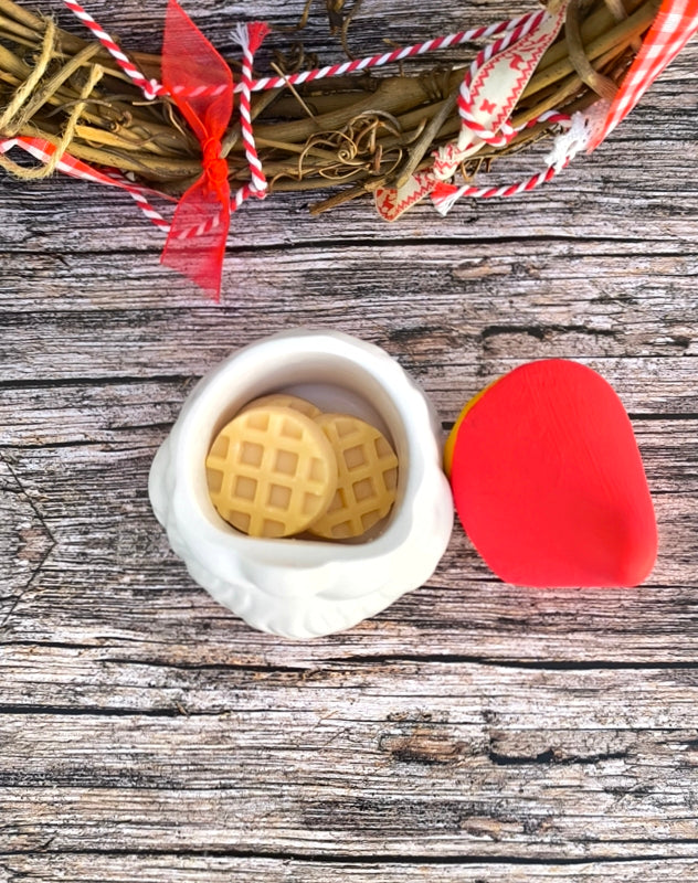 Δημιουργήστε μια γιορτινή και ζεστή ατμόσφαιρα στο σπίτι σας με τον Χριστουγεννιάτικο μας νανάκι, ιδανικό για την αποθήκευση και παρουσίαση των wax melts σας ώστε το άρωμα τους να κρατά περισσότερο καιρό και να τα έχετε πάντα στη διάθεσή σας, δίπλα στον αρωματιστή σας. Η συσκευασία περιλαμβάνει επίσης 50 γραμμάρια wax melts με άρωμα τσουρέκι, ένα γλυκό και ξεχωριστό άρωμα με νότες βανίλιας, μαχλέπι και μπαχαρικά που θυμίζει φρεσκοψημένο παραδοσιακό τσουρέκι. Τοποθετήστε τα wax melts στον καυστήρα και απολαύστε έναν μοναδικό, γιορτινό αρωματισμό. Το βαζάκι είναι επαναχρησιμοποιούμενο και κατάλληλο για τρόφιμα, ώστε να το χρησιμοποιήσετε και ως διακοσμητικό ακόμη και μετά το άρωμα. Είναι μια υπέροχη ιδέα για δώρο ή για να χαρίσετε στον εαυτό σας λίγη χριστουγεννιάτικη μαγεία! ❊ Μέγεθος: 10 cm / 3.93 inches