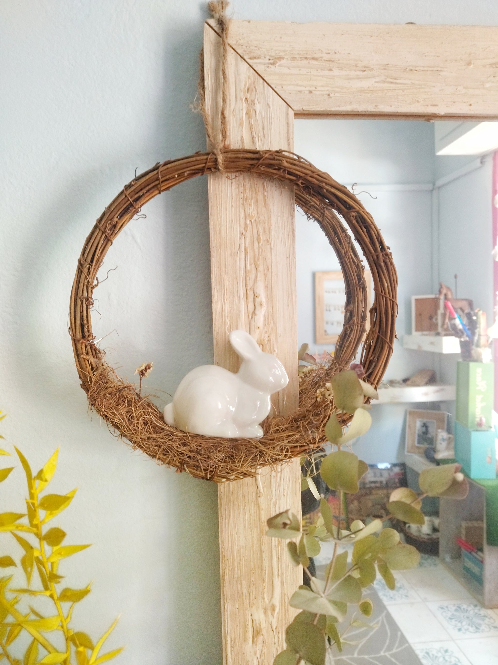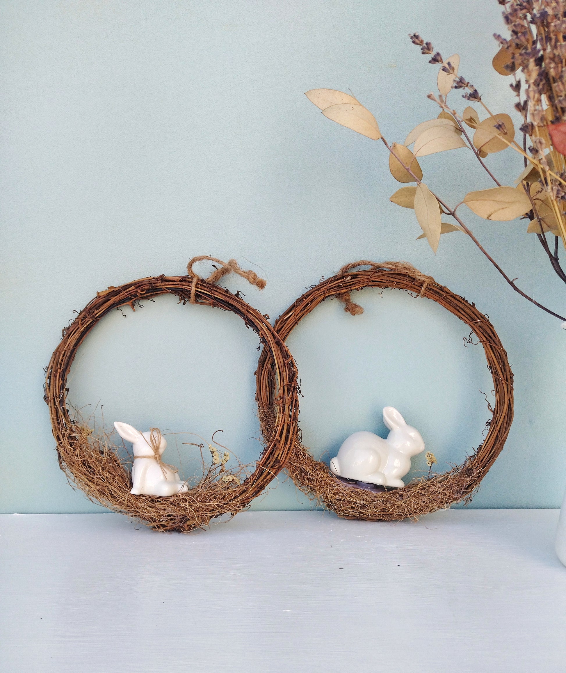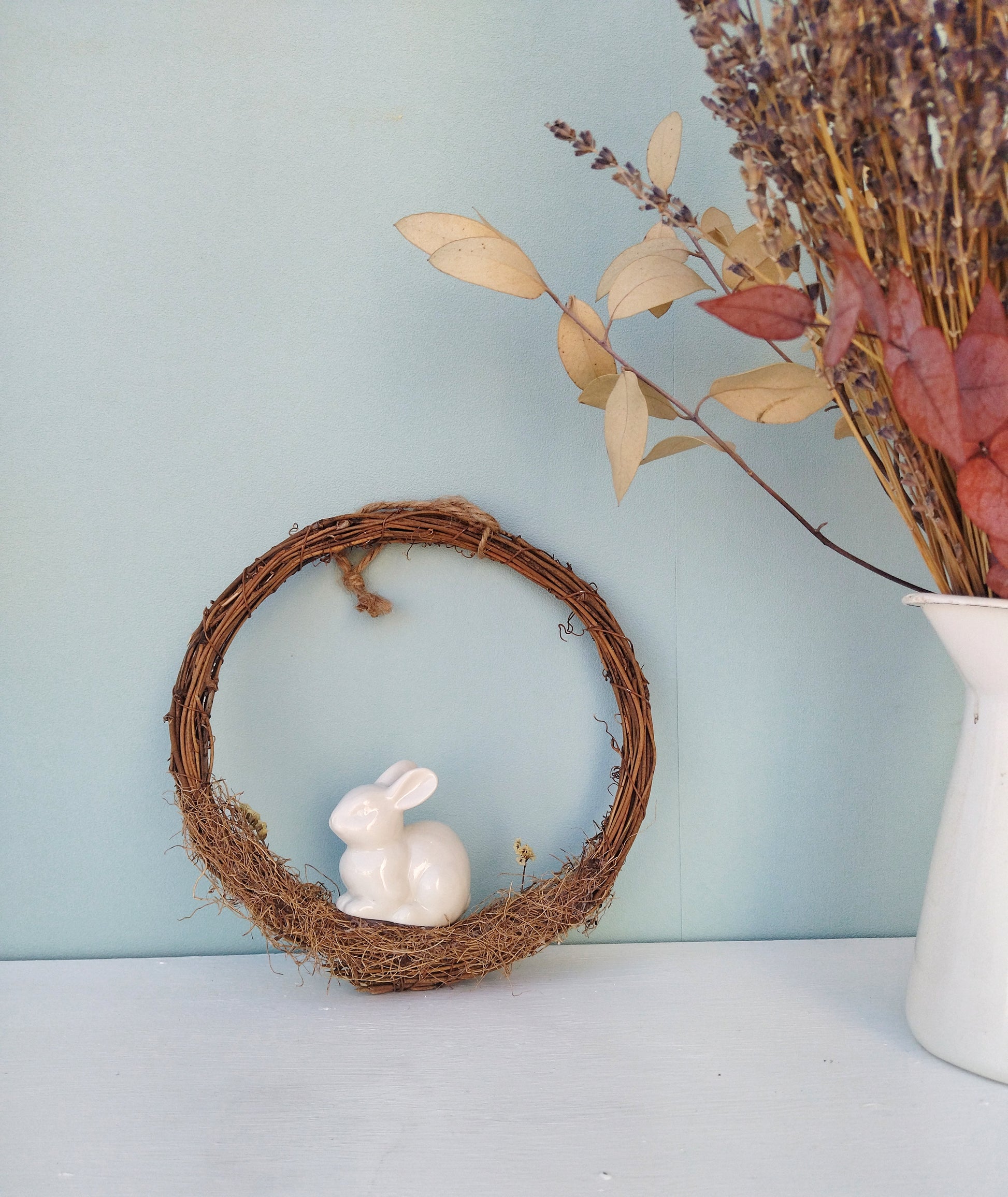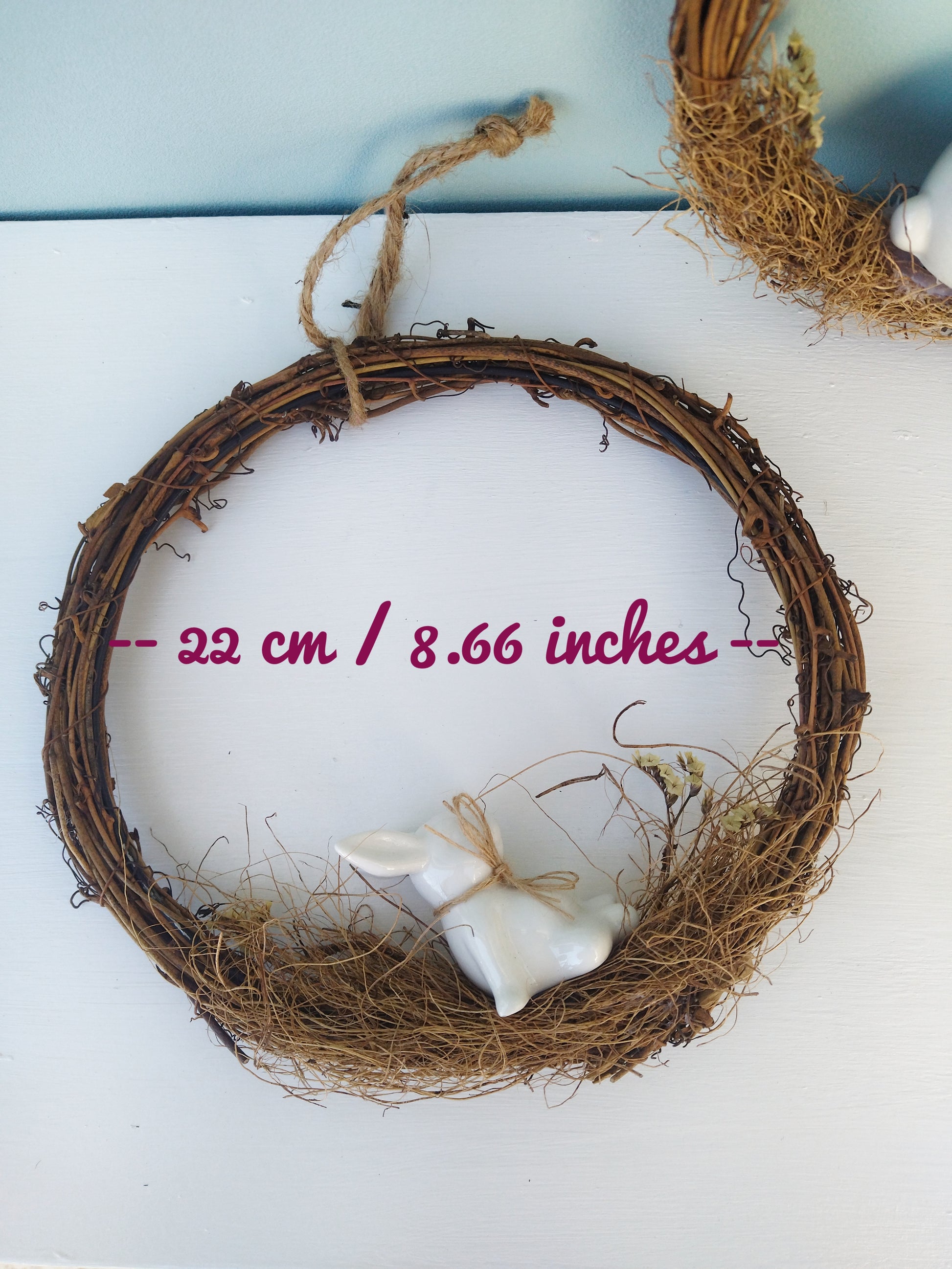 Το πιο χαριτωμένο στεφάνι! Χειροποίητο στεφάνι από αποξηραμένες κλιματσίδες με πορσελάνινο λαγουδάκι. Ιδανικό για την πασχαλινή σας διακόσμηση και όχι μόνο..