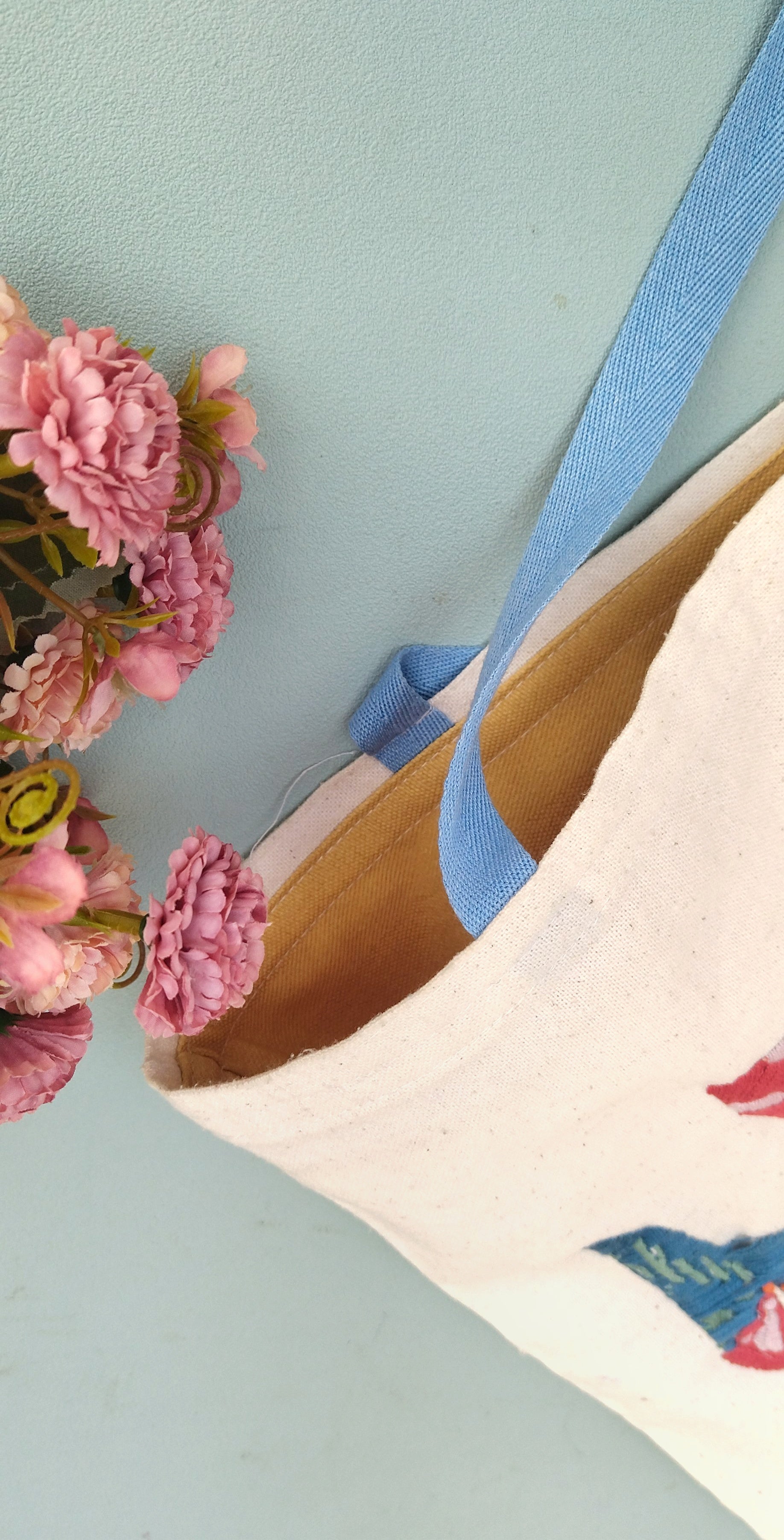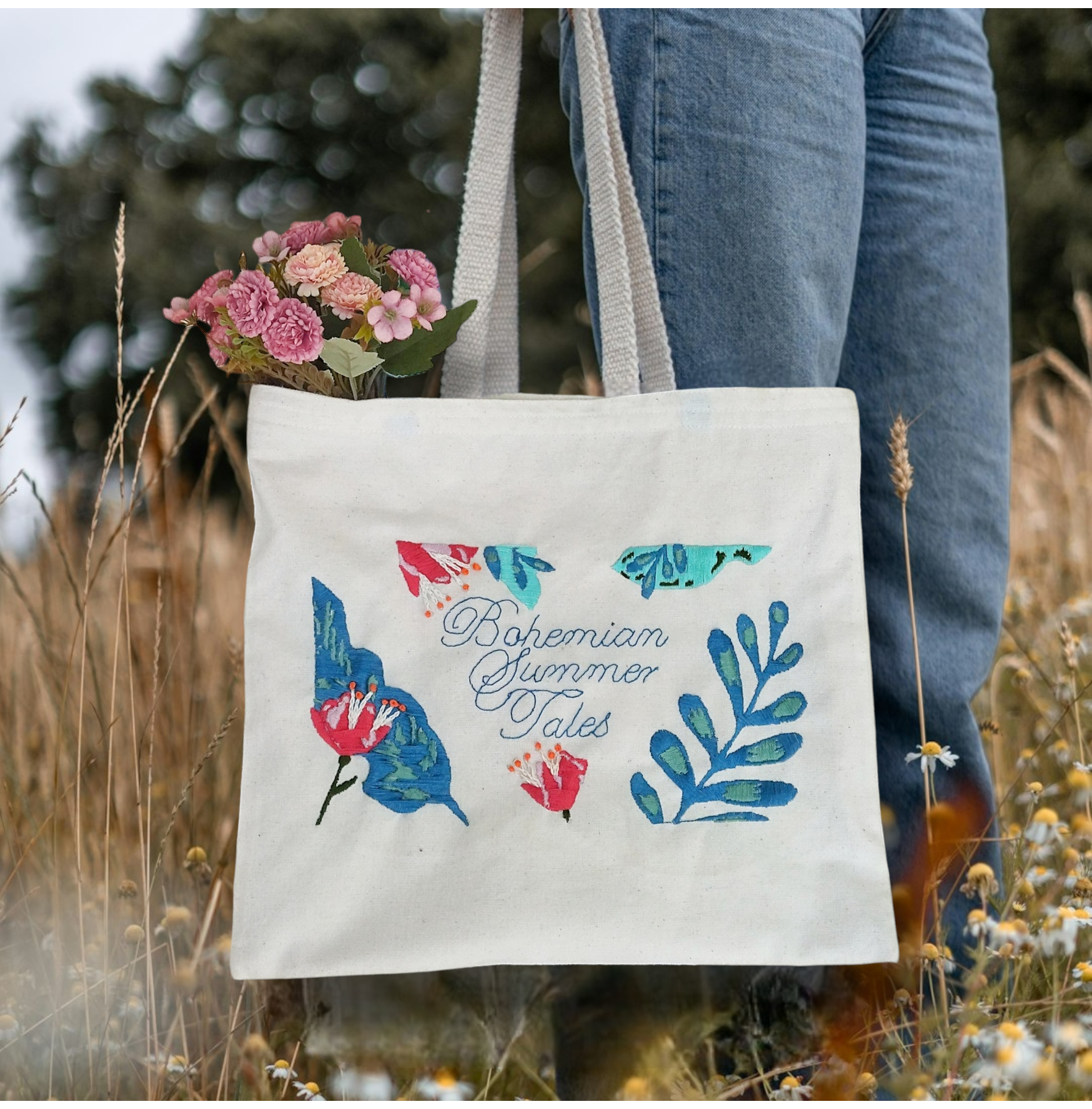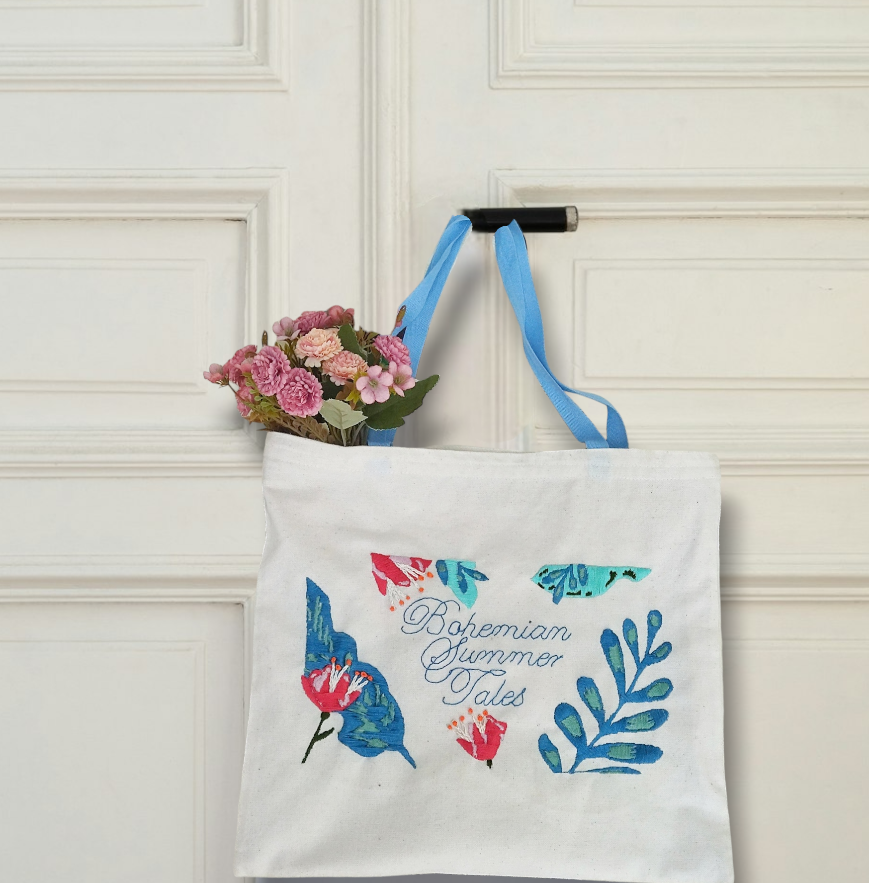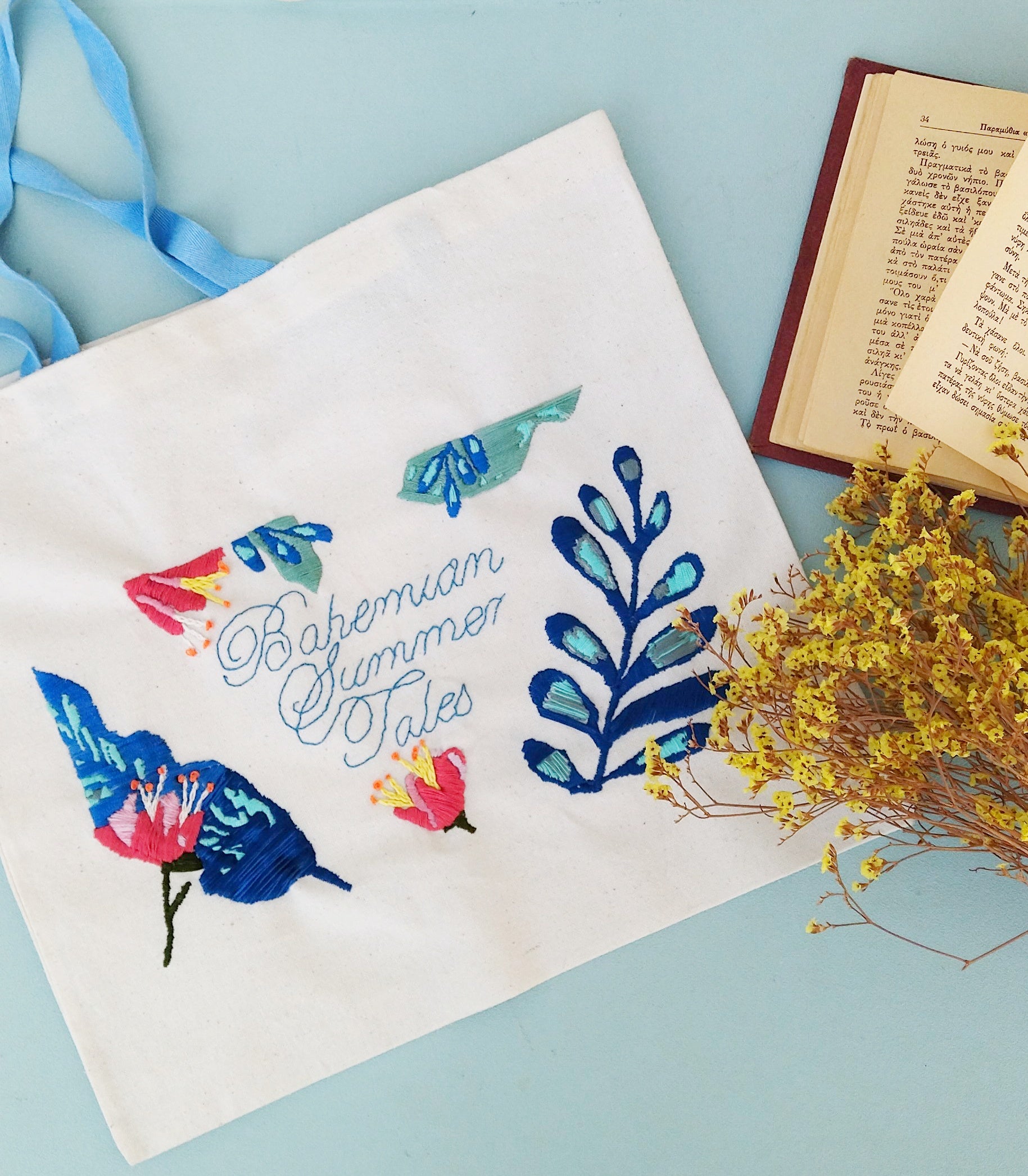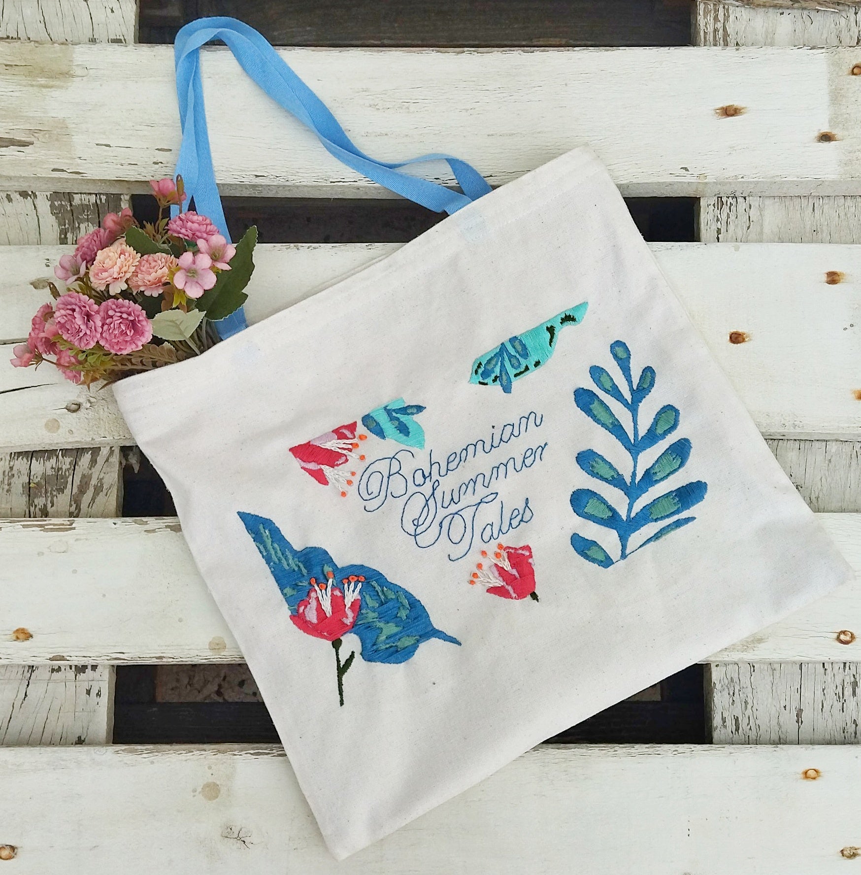 Η δημιουργία μας για τον εορτασμό της δεύτερής μας χρονιάς! Μια βαμβακερή τσάντα με επένδυση πολύχρωμη και κεντημένη εξολοκλήρου στο χέρι με το λογότυπό μας . Φτιάχνεται κατόπιν παραγγελίας. Χρόνος παρασκευής 4-6 εβδομάδες.