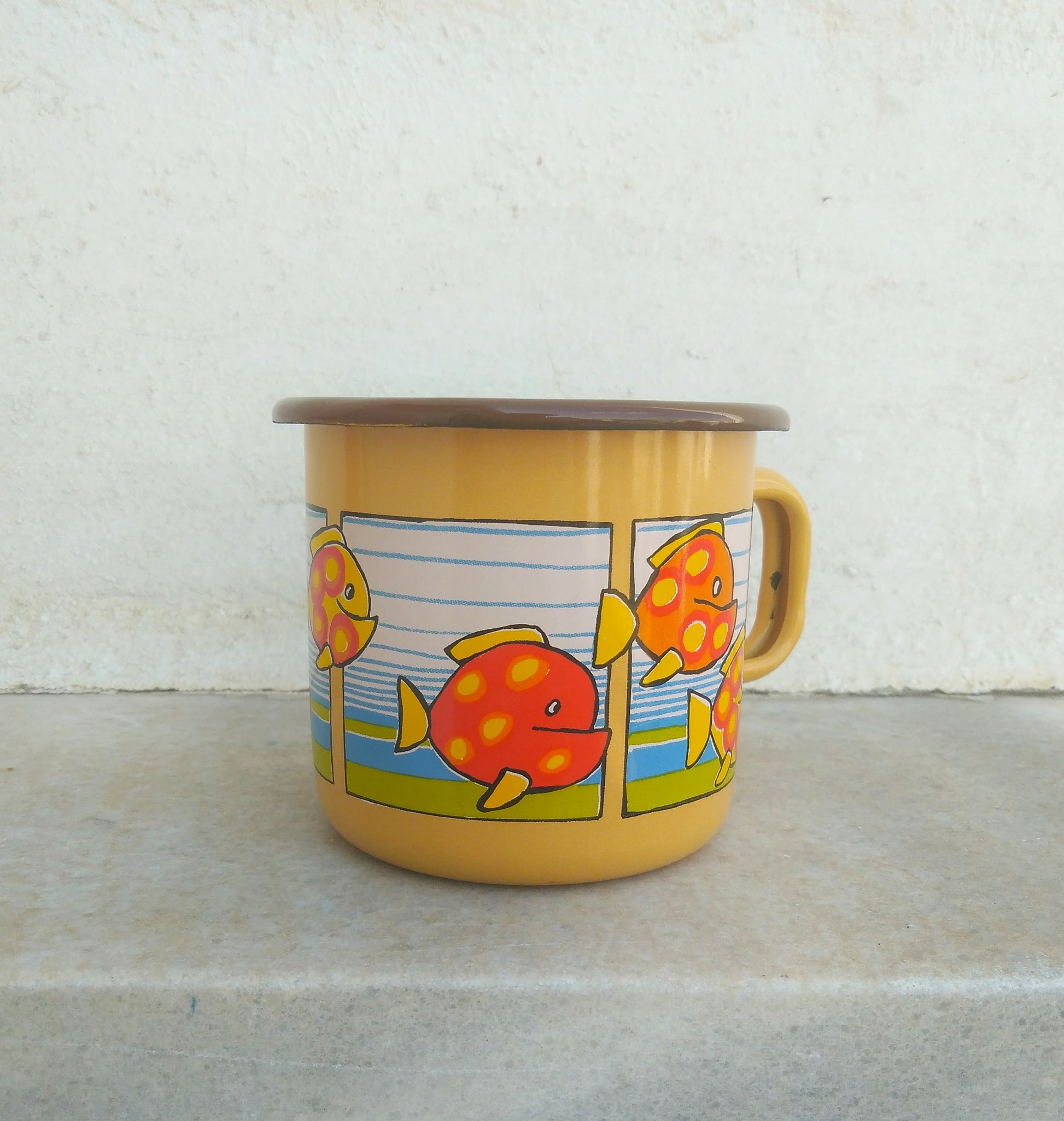 Χειροποίητη εμαγιέ κούπα σε ζωντανά χρώματα. Ιδανική για μικρά παιδιά γιατί είναι ελαφριά και εύκολη στο καθάρισμα αλλά και για κατασκηνωτές. Προσοχή! Δεν ζεσταίνουμαι υγρά ή τρόφιμα απευθείας στην κούπα. Καθάρισμα μόνο στο χέρι.