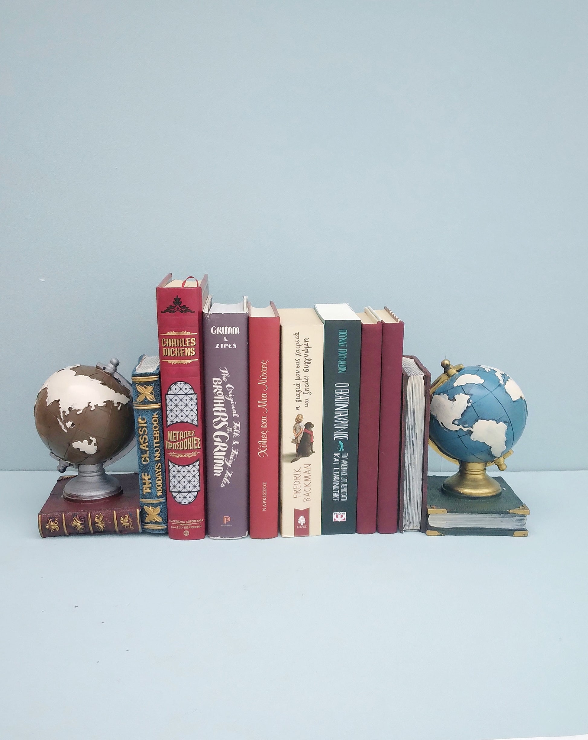 Δώστε ένα στυλ μοναδικό στη βιβλιοθήκη σας με αυτούς τους πρωτότυπους βιβλιοστάτες! Φτιαγμένοι από ρητίνη και με σχέδιο υδρόγειας σφαίρας, θα δώσουν στο χώρο σας έναν αέρα σοφιστικέ και συνάμα παιχνιδιάρικο. Ιδανικό δώρο για έναν καθηγητή γεωγραφίας ή έναν εκδότη!