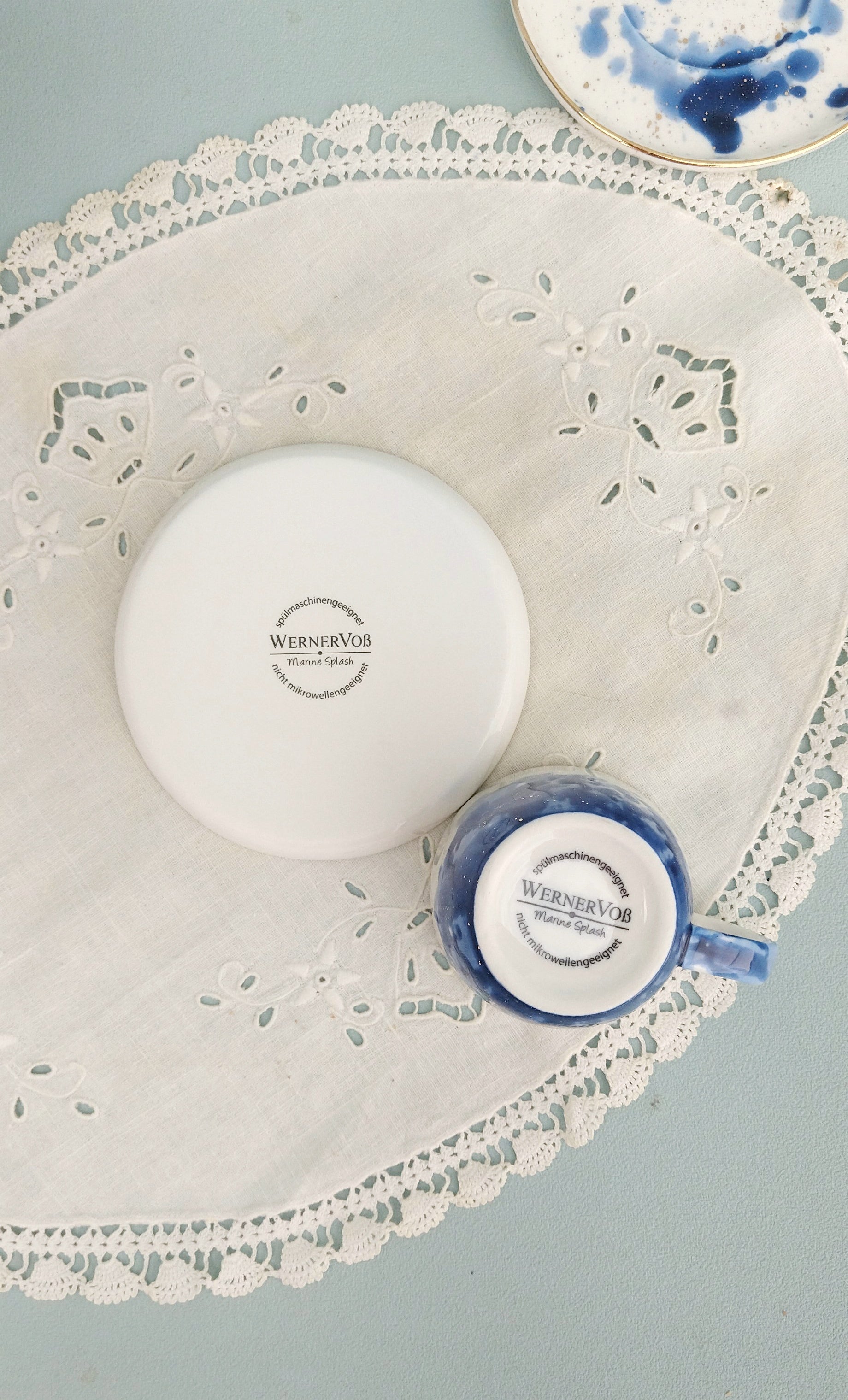 Μικρά φλυτζάνια εσπρέσο με πιατάκια από πορσελάνη εξαιρετικής ποιότητας. Με χρυσές λεπτομέρειες στο χείλος του φλυτζανιού και του πιάτου για περισσότερη φινέτσα. Συνδυάστε τα με τα ασορτί πιάτα και τις κούπες τους και δημιουργήστε το απόλυτο σετ πρωινού! Δεν είναι κατάλληλο για φούρνο μικροκυμάτων ή πλύσιμο σε πλυντήριο πιάτων. Συνιστάται πλύσιμο στο χέρι. *Κάθε πιάτο έχει την σφραγίδα της εταιρείας Wernevoss από πίσω*