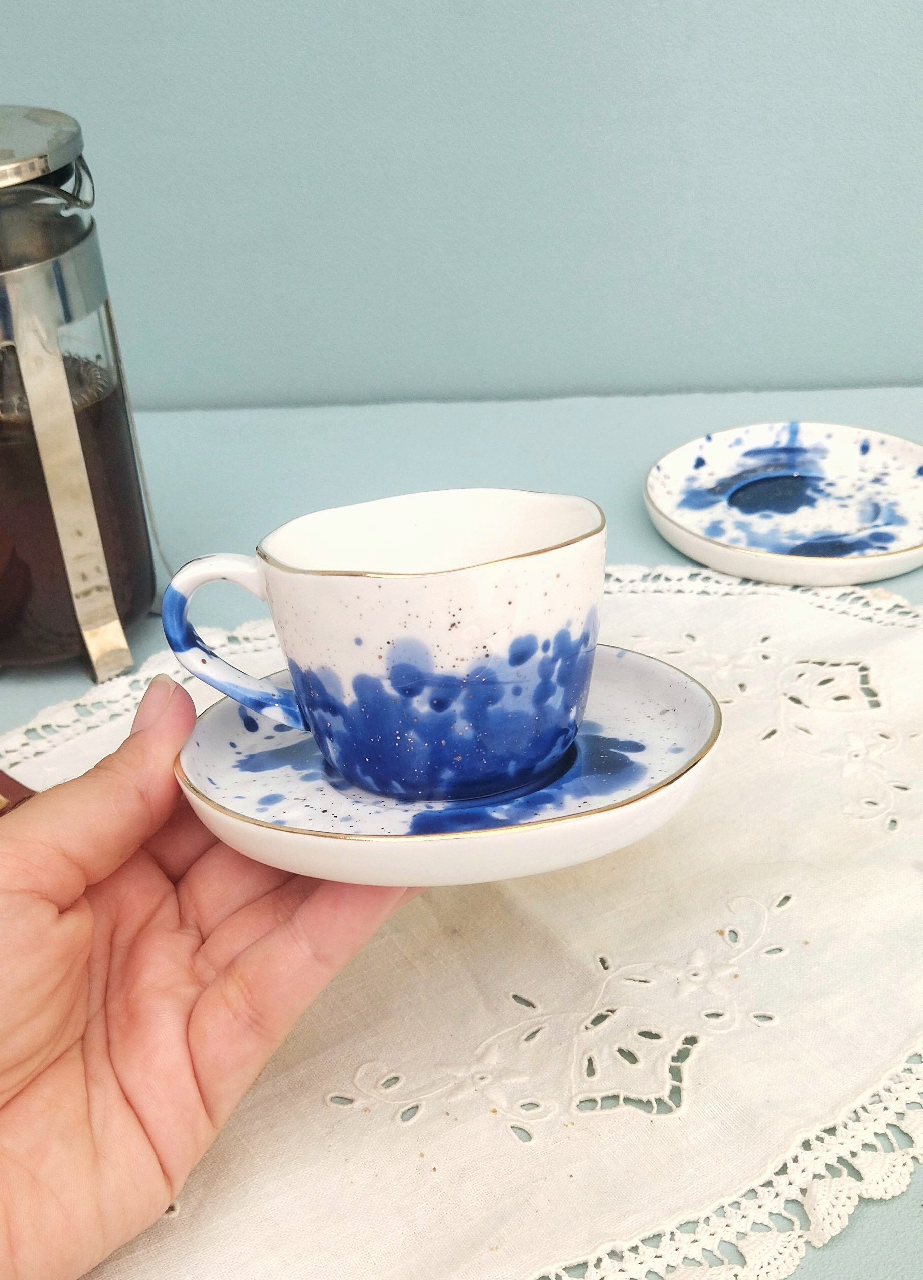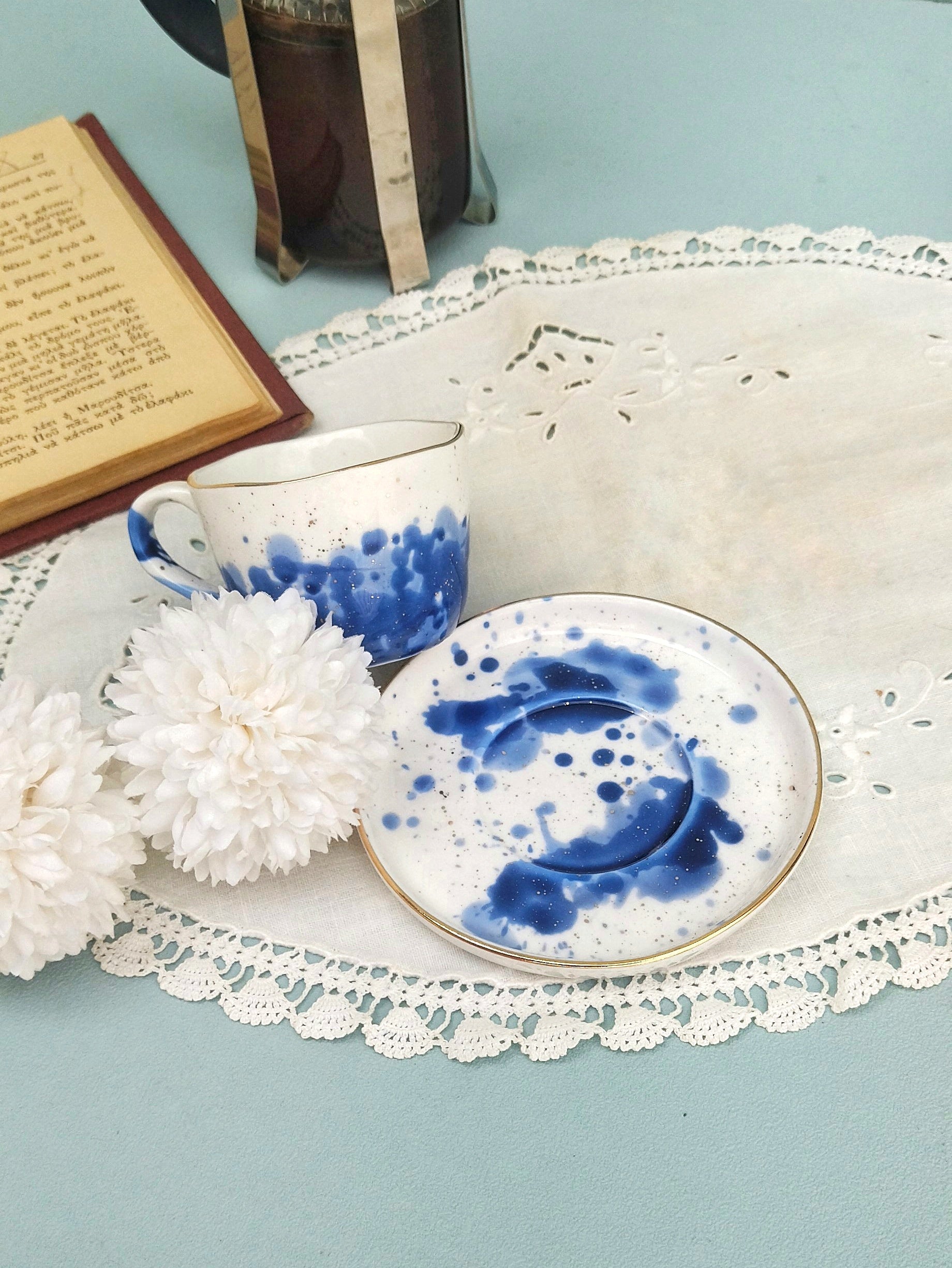 Πορσελάνινα Χρωματιστά Φλυτζάνια Εσπρέσο Με Μπλε Και Χρυσές Λεπτομέρειες