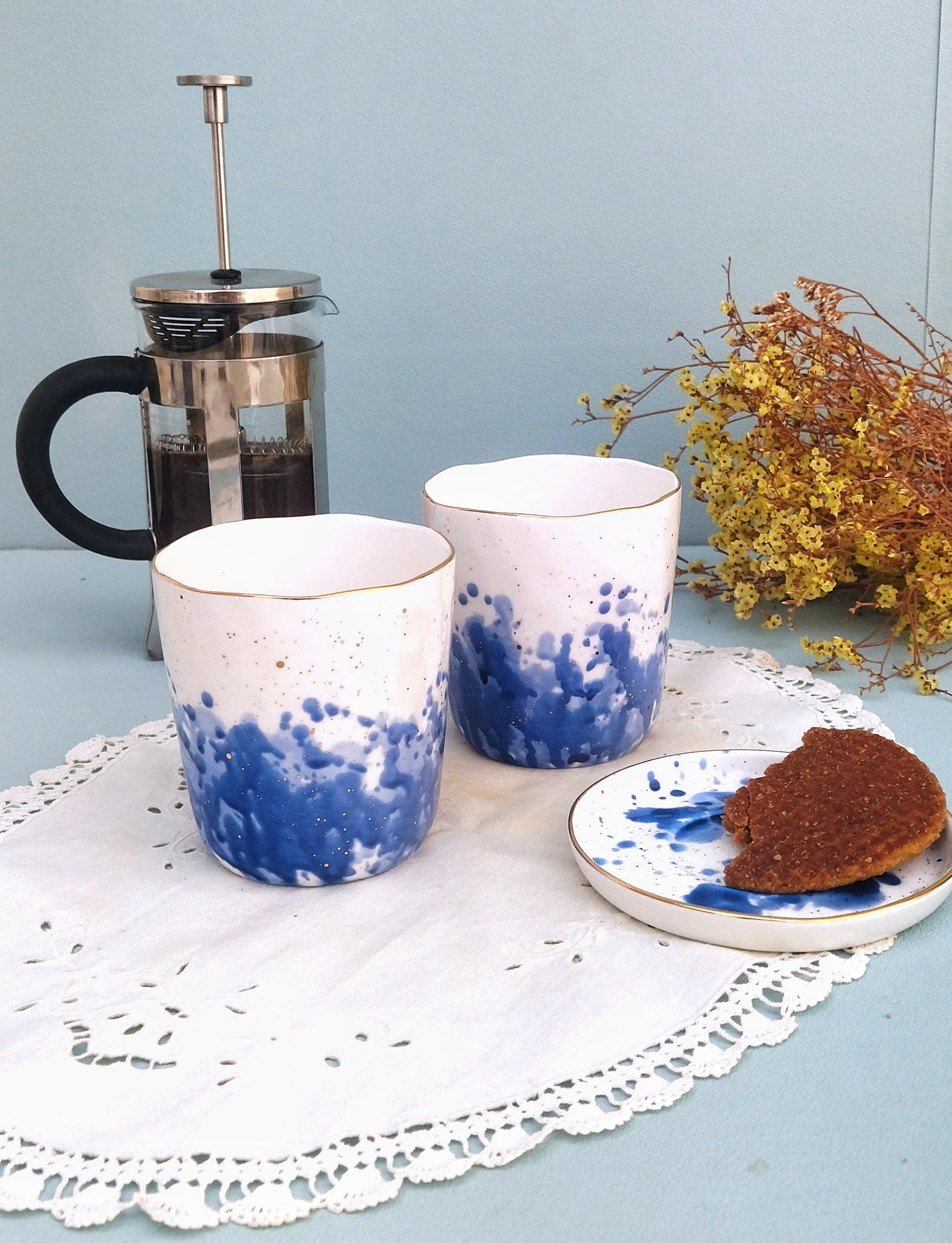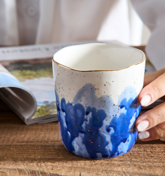 Πορσελάνινα Χρωματιστά Φλυτζάνια Με Μπλε Και Χρυσές Λεπτομέρειες