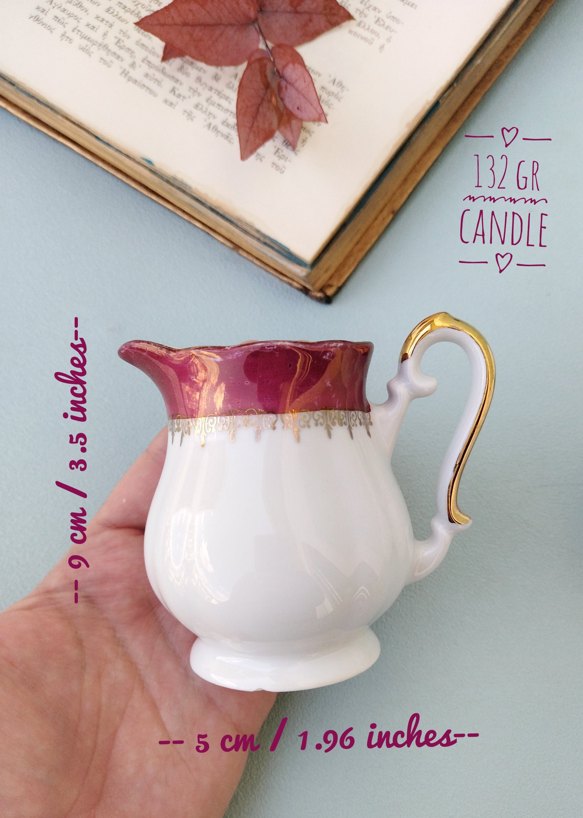 ❊ Υλικό: παλιά πορσελάνινη γαλατιέρα ❊ Μέγεθος: 9*5 cm / 3.5*1.96 inches ❊ Κερί: 132 gr