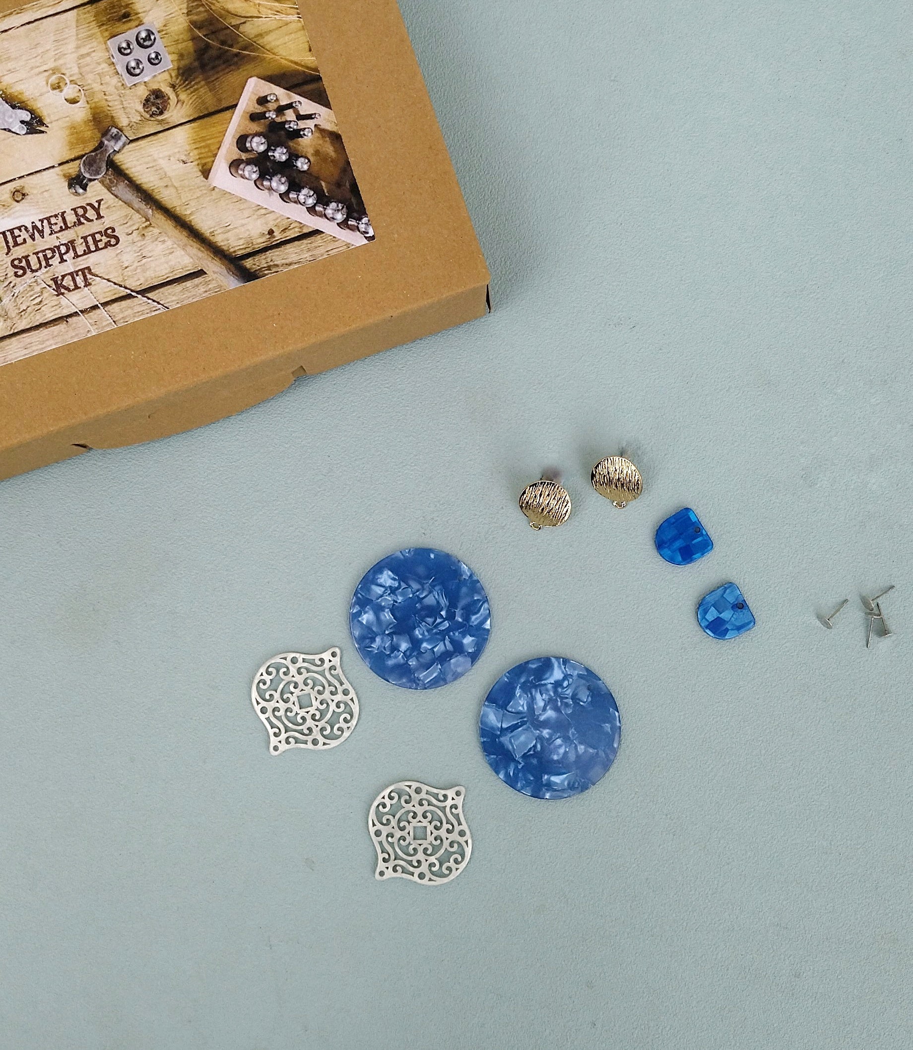 ❊ Το κουτί περιλαμβάνει: Ολα τα υλικά της φωτογραφίας για να φτιάξετε ΕΝΑ ζευγάρι σκουλαρίκια με 3 διαφορετικούς συνδυασμούς και ένα φακελάκι με τα αντίστοιχα κρικάκια, γατζάκια και καφάκια που θα χρειαστείτε καθώς και μια μίνι κόλλα. ❊ Το κιτ σκουλαρικιών + 3 ταναλάκια, απευθύνεται στις φίλες που δεν έχουν ασχοληθεί ξανά και περιλαμβάνει μαζί με ό,τι περιέχει το κιτ σκουλαρικιών συν 3 διαφορετικά ταναλάκια για να ξεκινήσετε τις δημιουργίες σας.