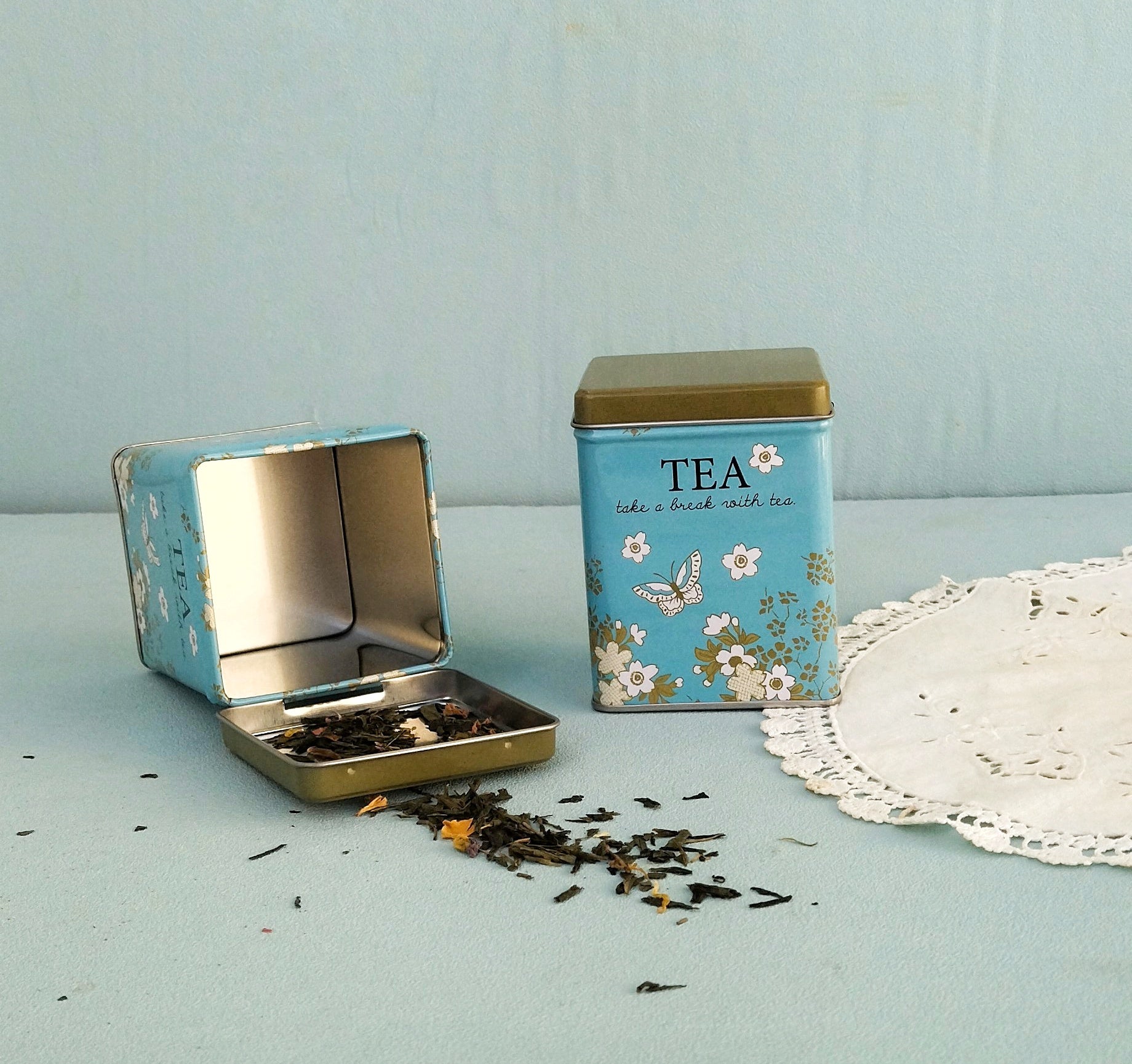 Μεταλλικό Κουτί Τσαγιού Με Λουλούδια