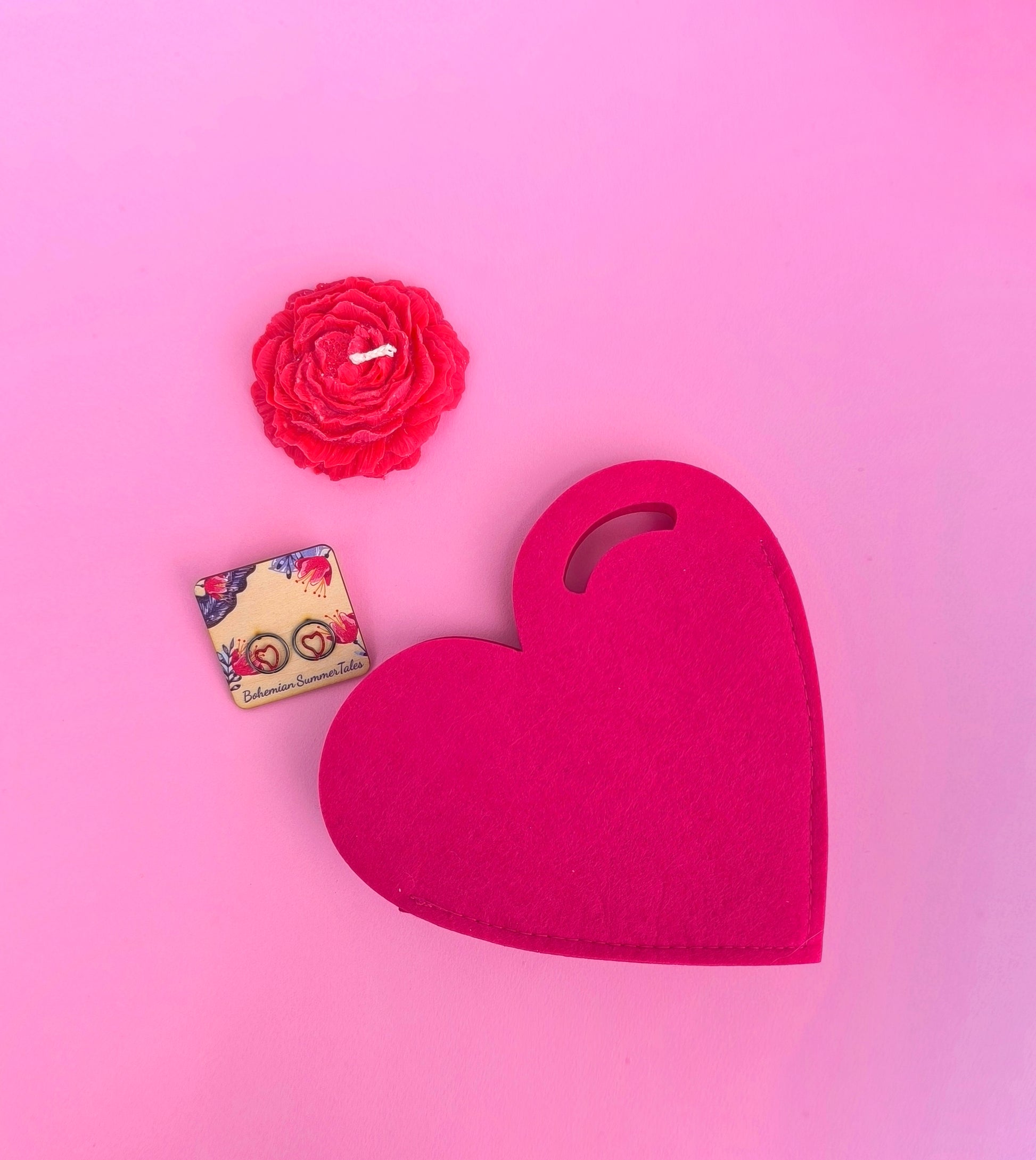 Μια υπέροχη φούξια καρδιά από φέλτ που περιλαμβάνει 2 γλυκύτατα δωράκια για τον/την αγαπημένη σας!