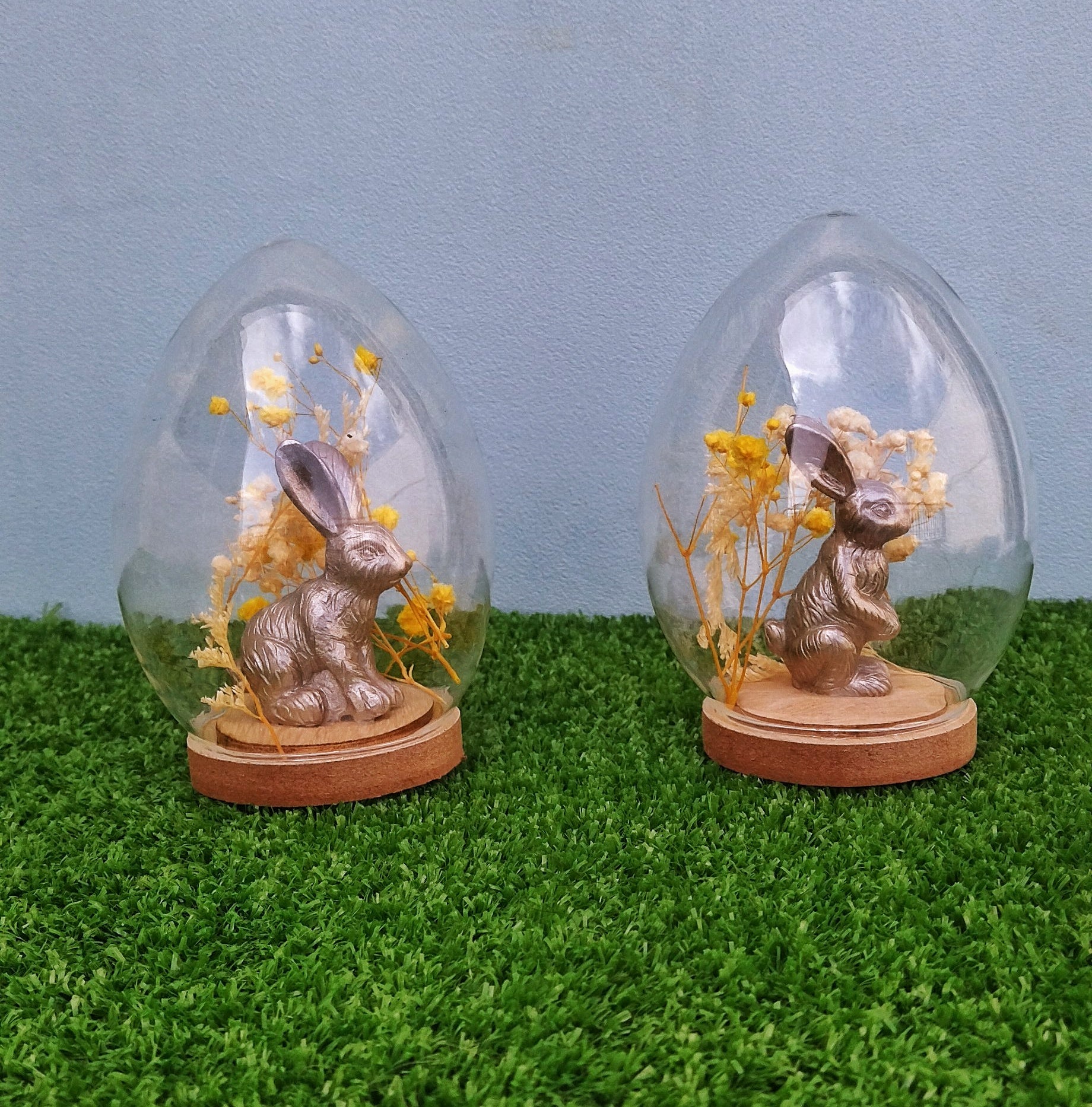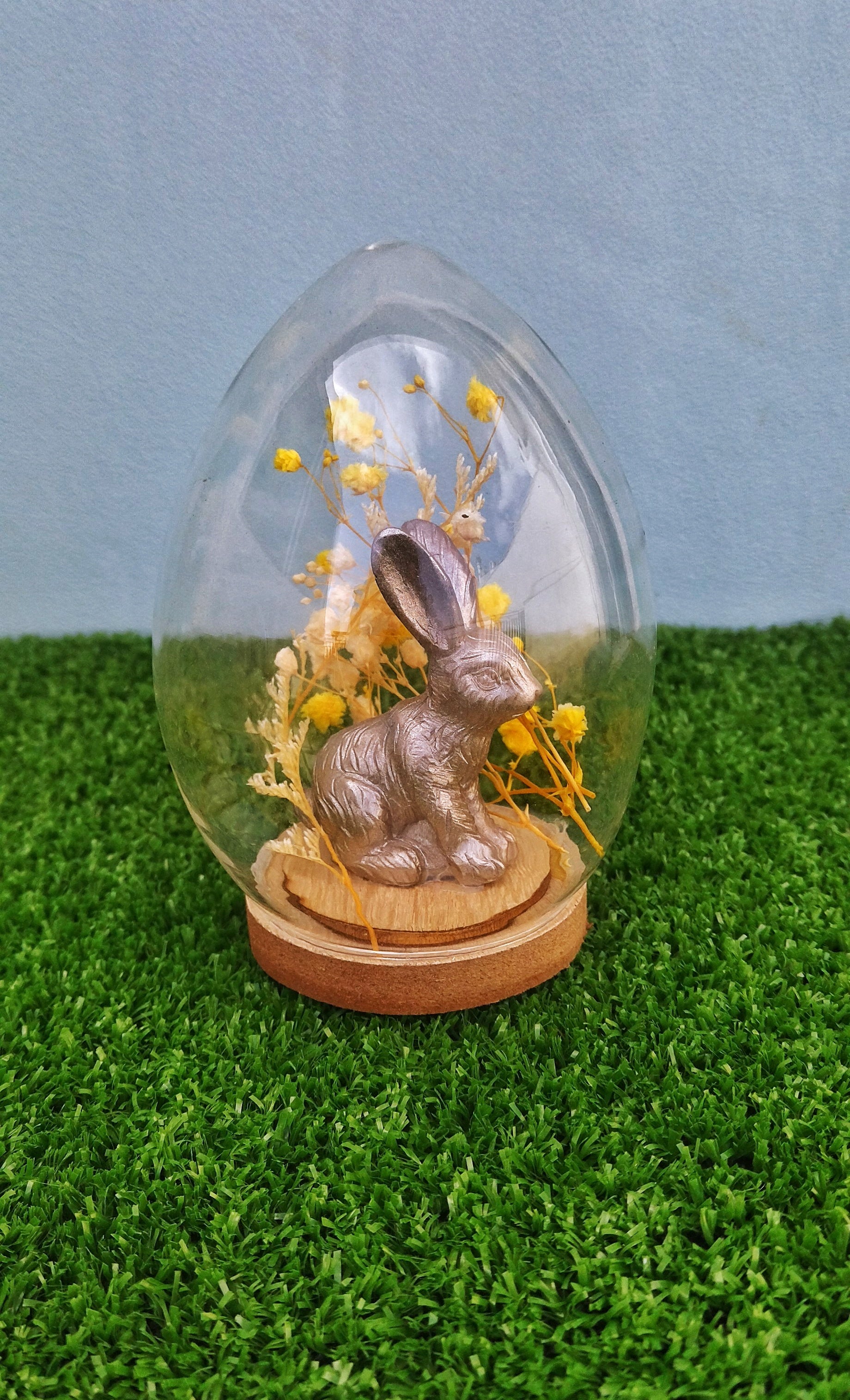 Το πιο χαριτωμένο διακοσμητικό! Μεταλλικό λαγουδάκι μέσα σε γυάλα με ξύλινη βάση και ένα μπουκετάκι αποξηραμένα λουλουδάκια. Ιδανικό για την πασχαλινή σας διακόσμηση και όχι μόνο..