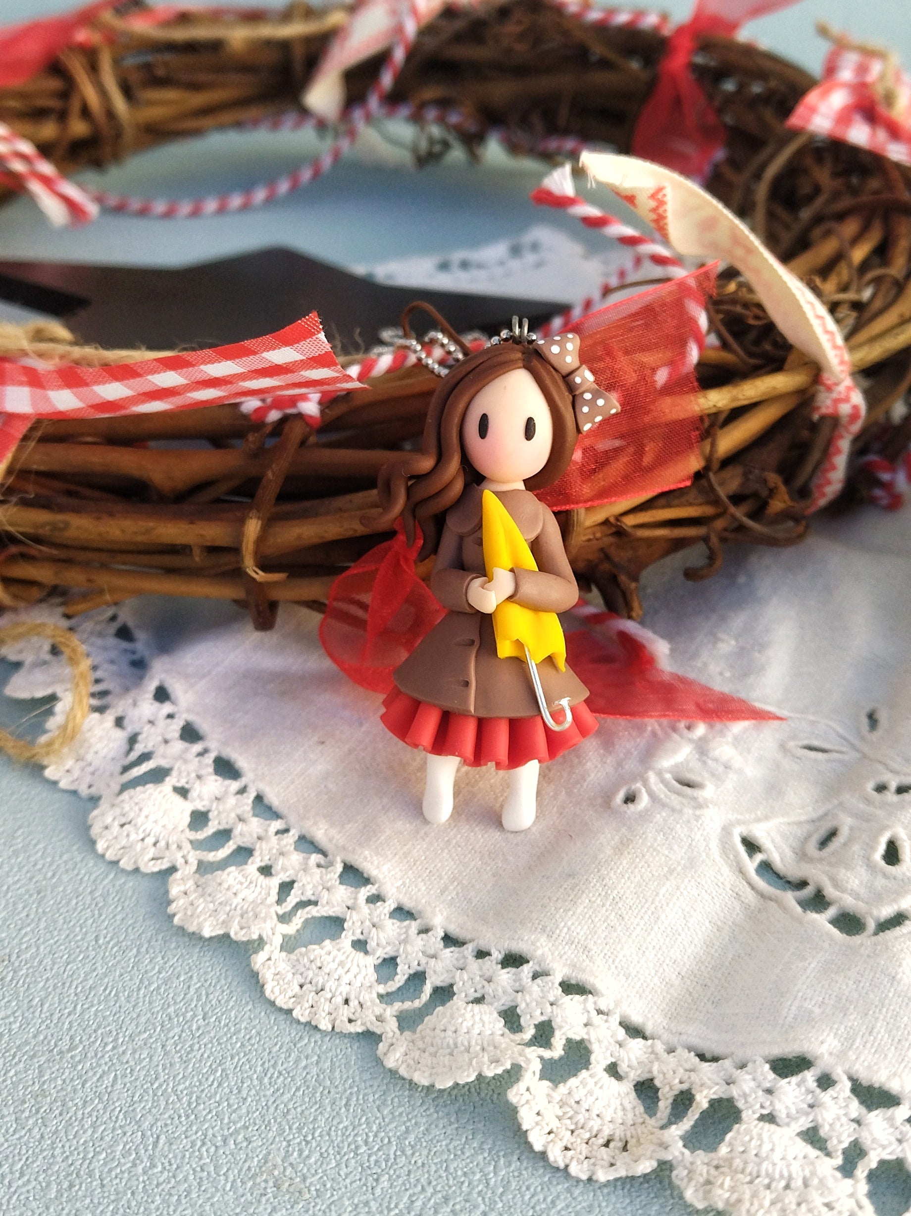 Κολιέ Κοριτσάκι με Ομπρέλα από Πολυμερικό Πηλό
