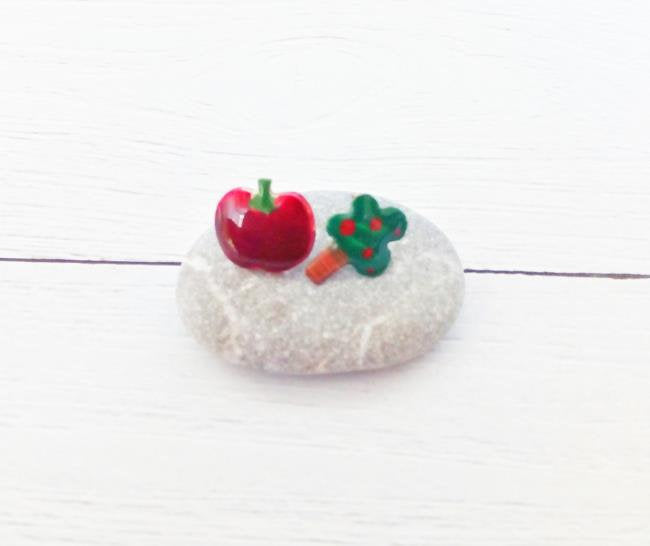 ❊ Μέγεθος: Μήλο 1.1 εκατοστά Δέντρο 1.5*0.5 εκατοστά ❊ Χρώματα: Σμάλτο ❊ Υλικό: Ασήμι 925