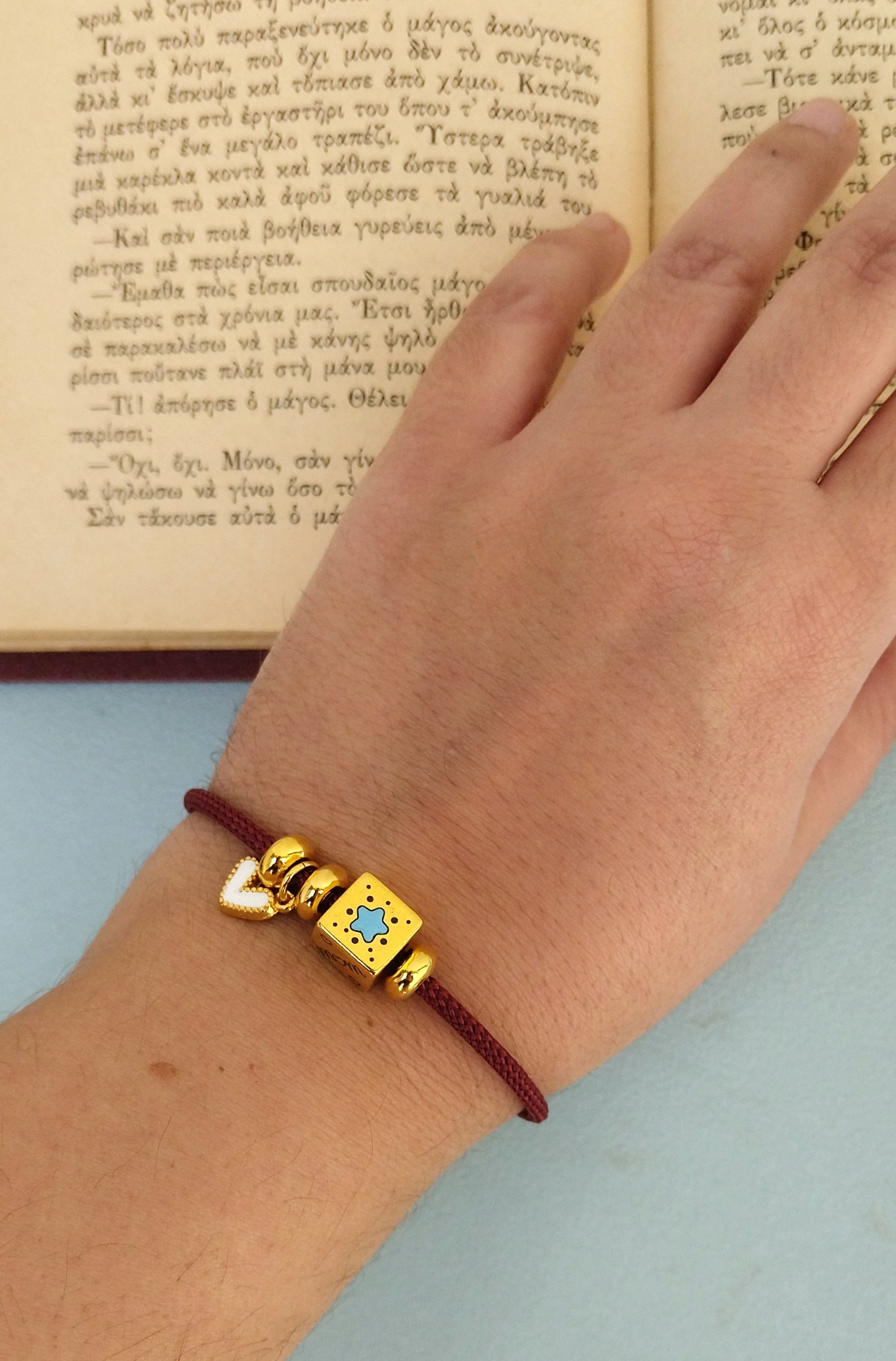 * Υλικά : βραχιόλι από κορδόνι και επιροδιωμένο μπρούτζο * Μέγεθος βραχιολιού (καρπού): διάμετρο 6.5 cm / 2.55 inches αλλά επιδέχεται μικρές προσαρμογές