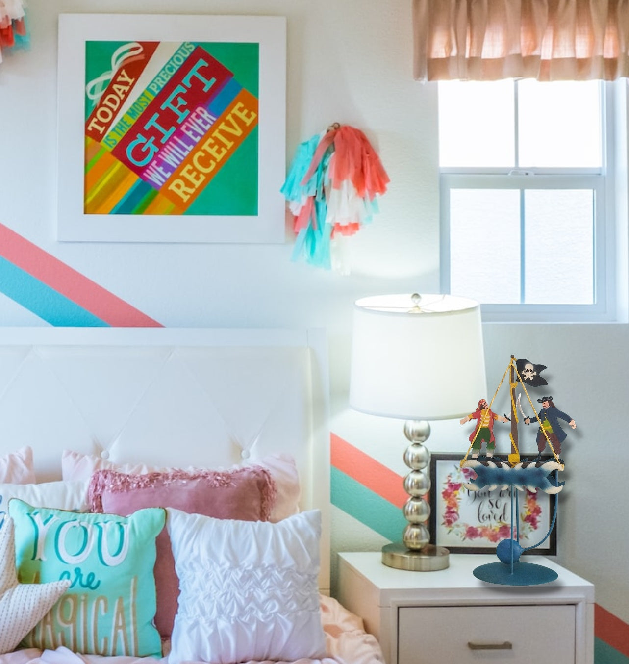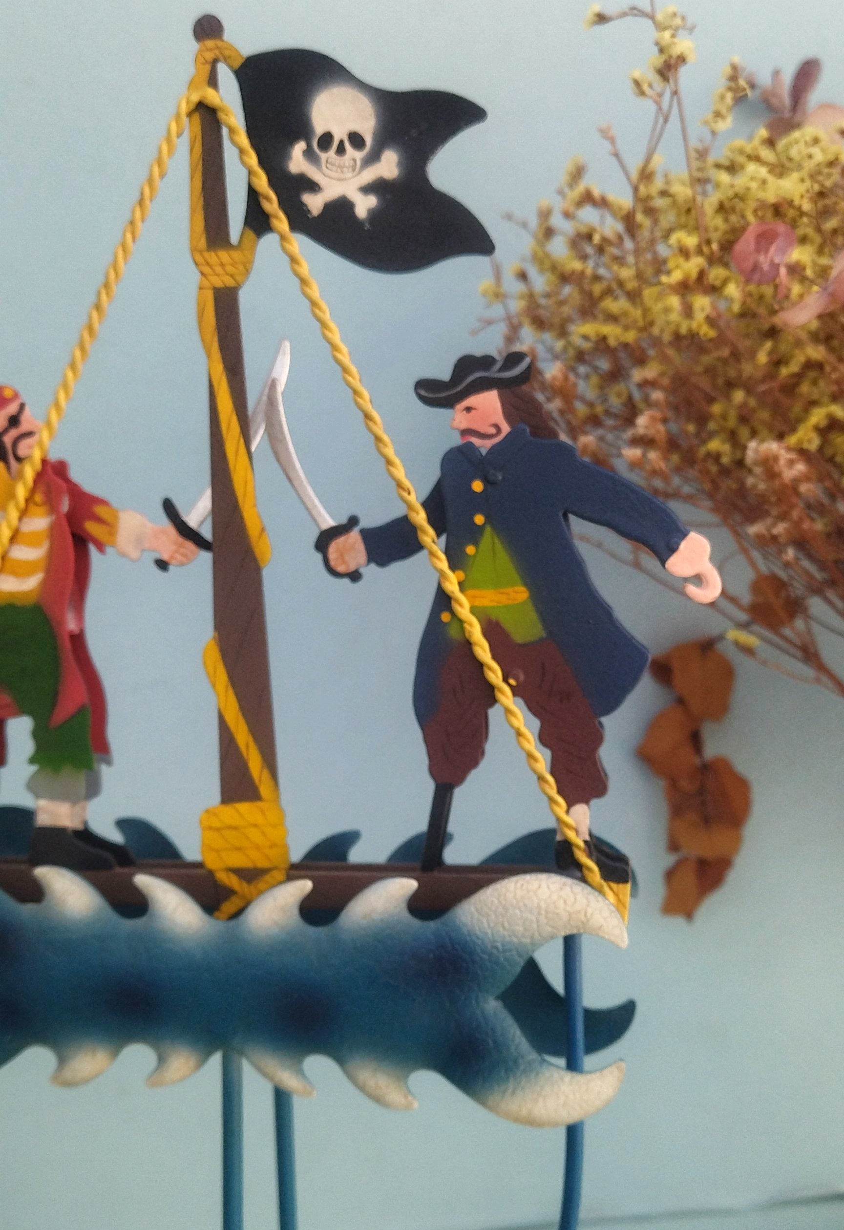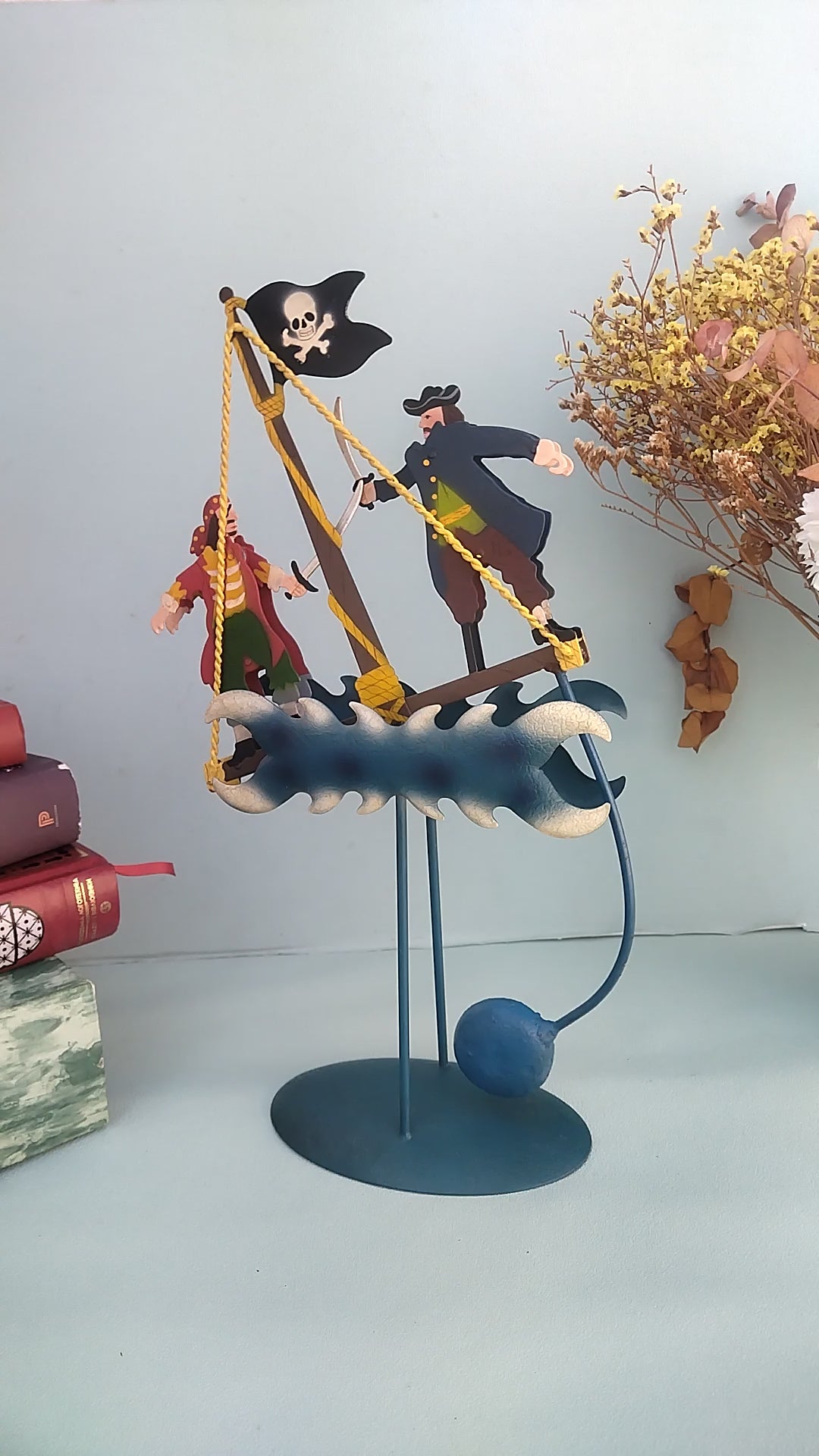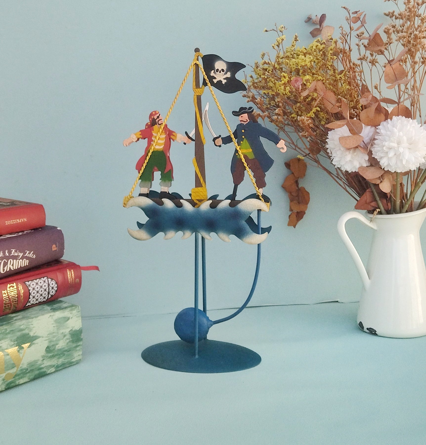 Μοναδικό εκκρεμές πειρατές σε υπέροχο μπλε χρώμα! Ένα ρετρό παιχνίδι, ρέπλικα παρόμοιων παιχνιδιών από τη δεκαετία του 50. Φτιαγμένο από μέταλλο και βαμμένο εξολοκλήρου στο χέρι. Μια ξιφομαχία του Κάπτεν Χούκ, ιδανικό διακοσμητικό για τους λάτρεις του Πήτερ Παν και της Χώρας του Ποτέ!