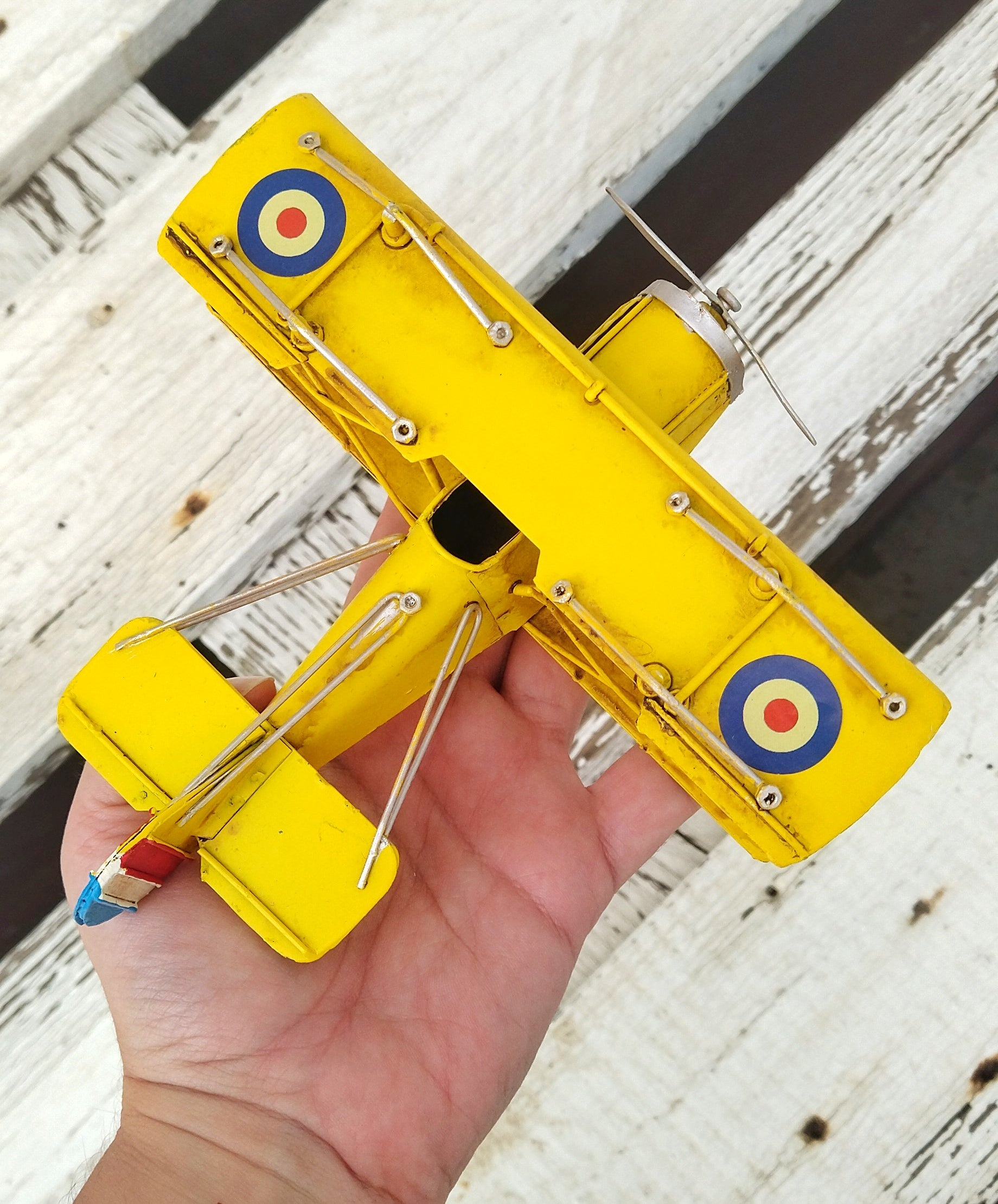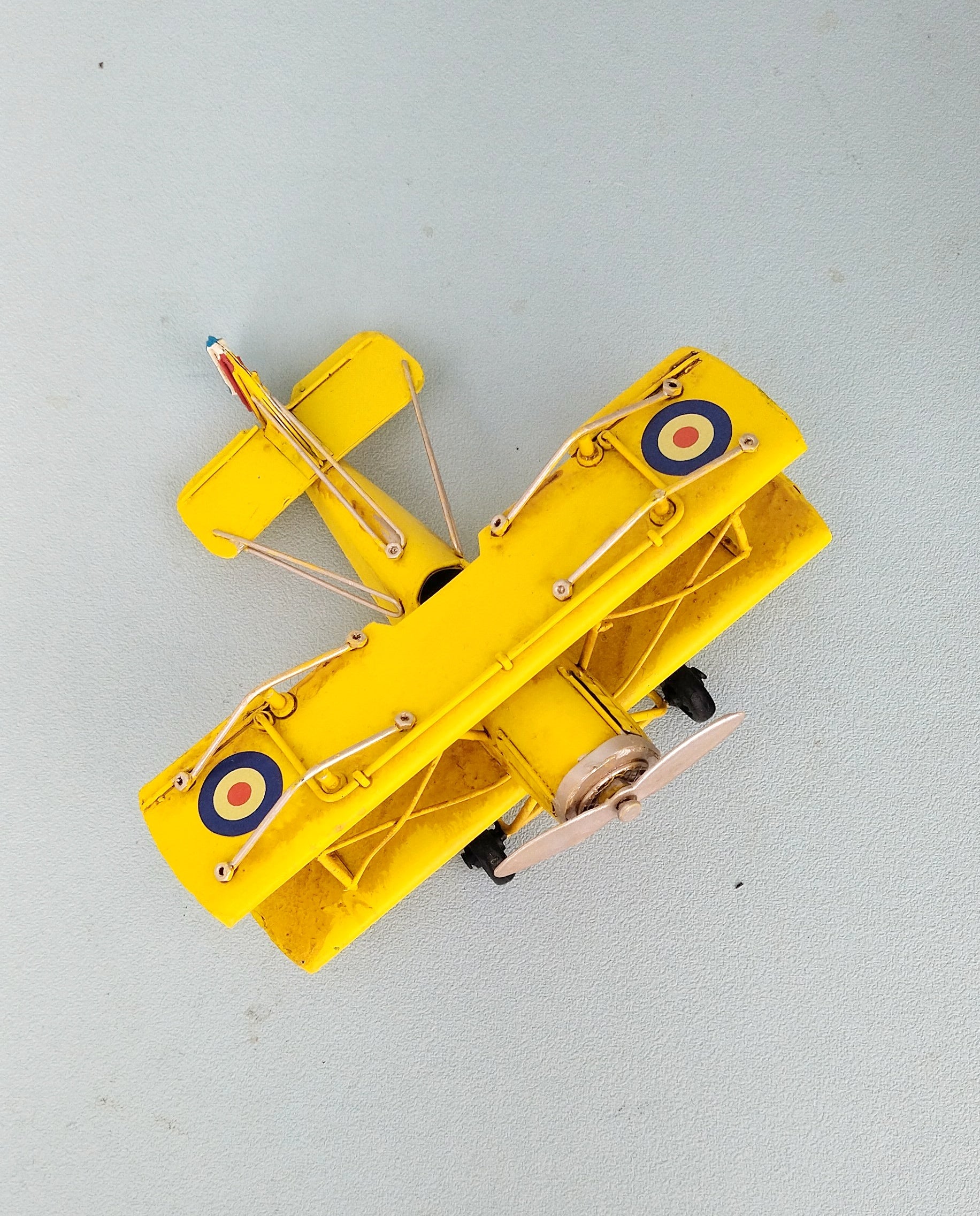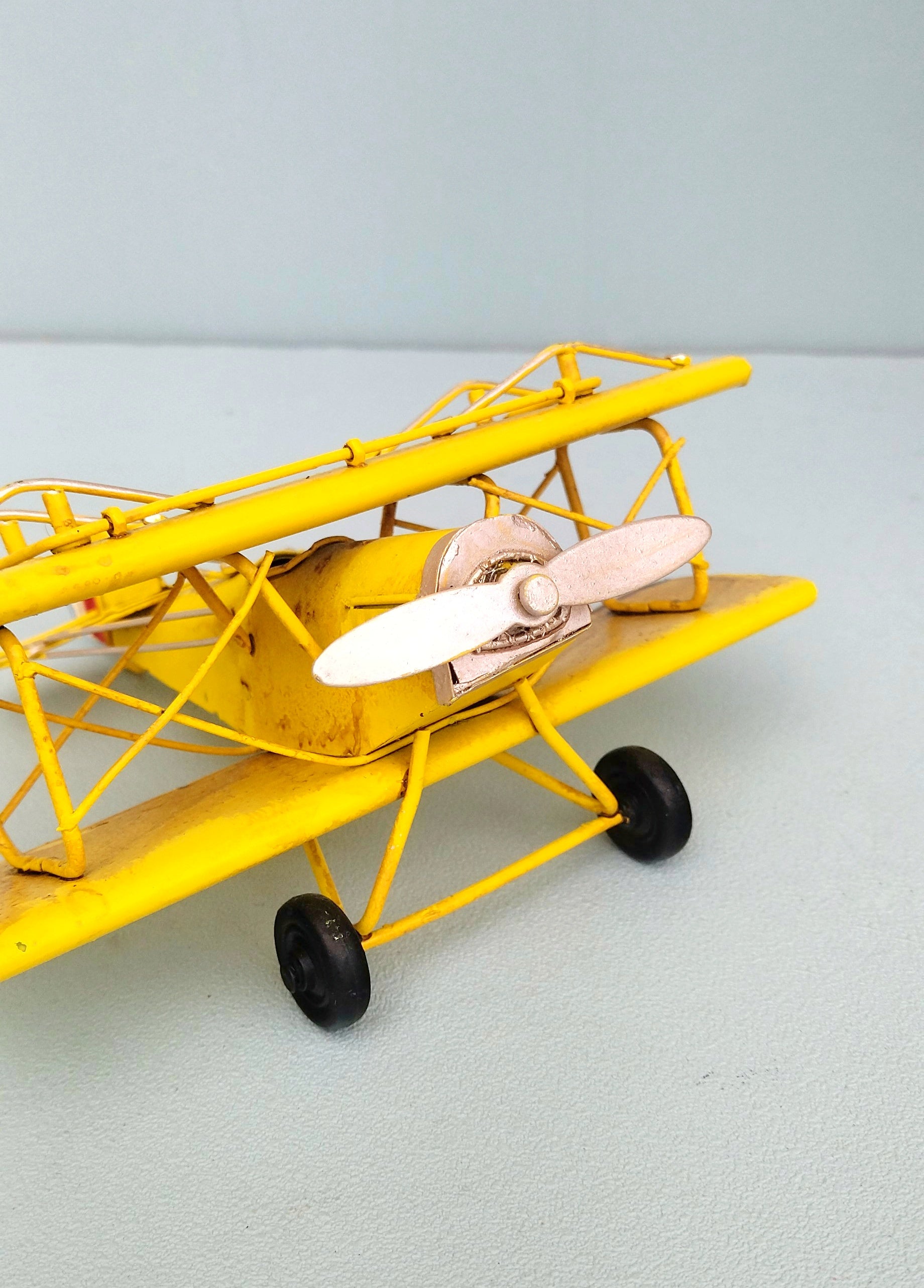 Γλυκύτατο μεταλλικό αεροπλανάκι μινιατούρα σε εντυπωσιακό κίτρινο χρώμα! Φτιαγμένο εξολοκλήρου στο χέρι και βαμμένο σε στυλ της δεκαετίας του 20. Ιδανικό δώρο για έναν πιλότο αλλά και τους λάτρεις των ρετρό παιχνιδιών.