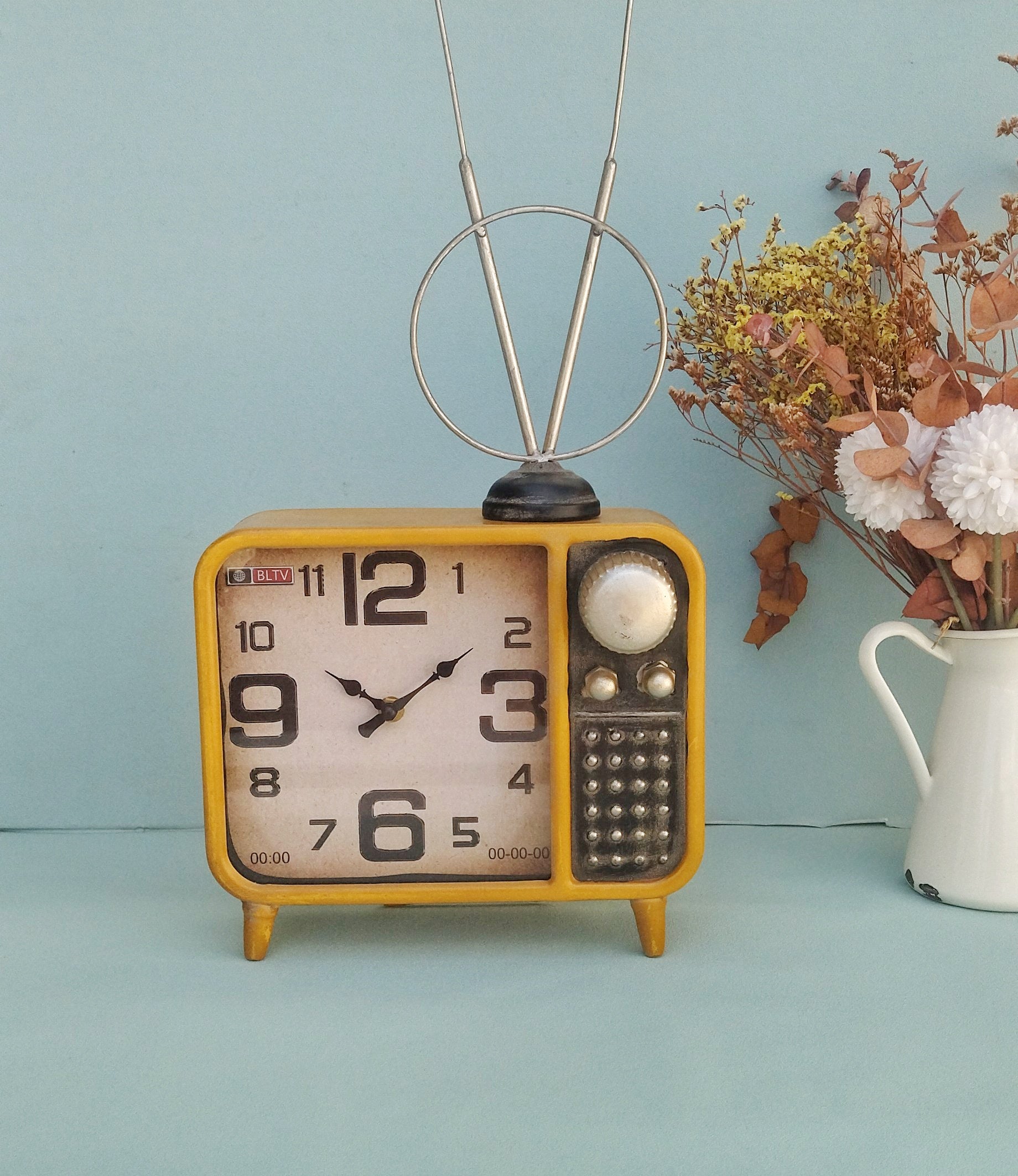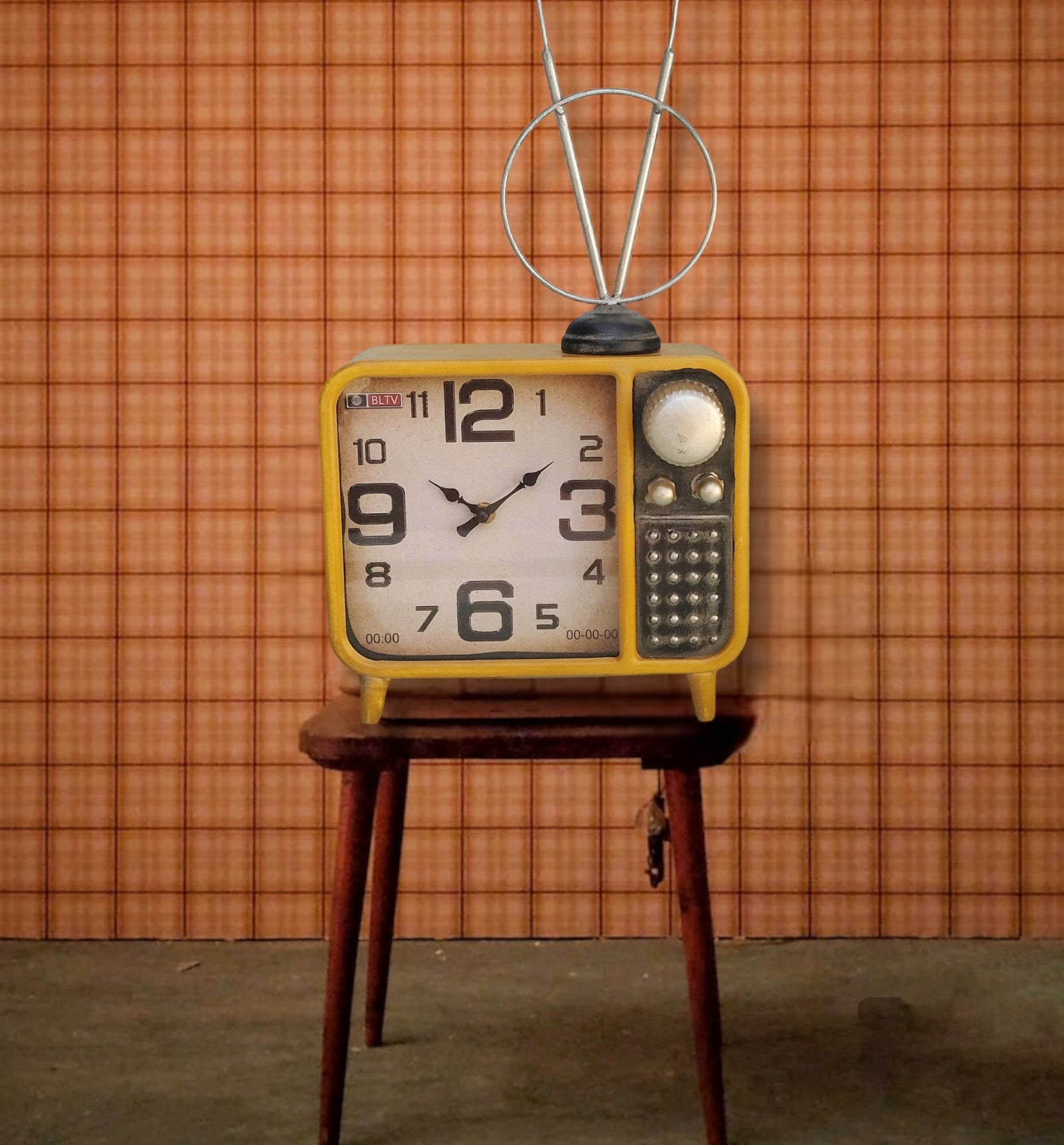 Μοναδικό ρολόι σε σχέδιο παλιάς τηλεόρασης από μέταλλο.