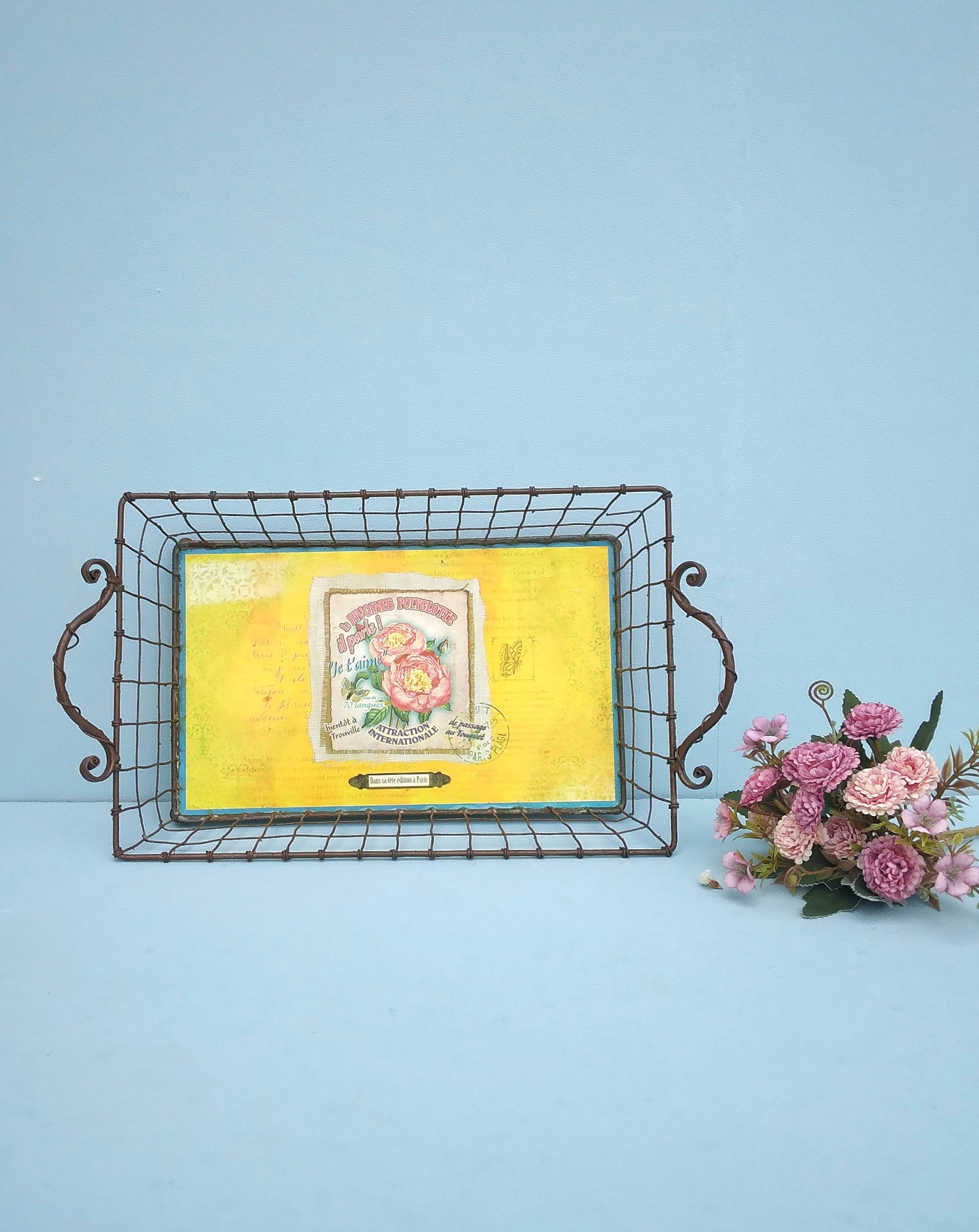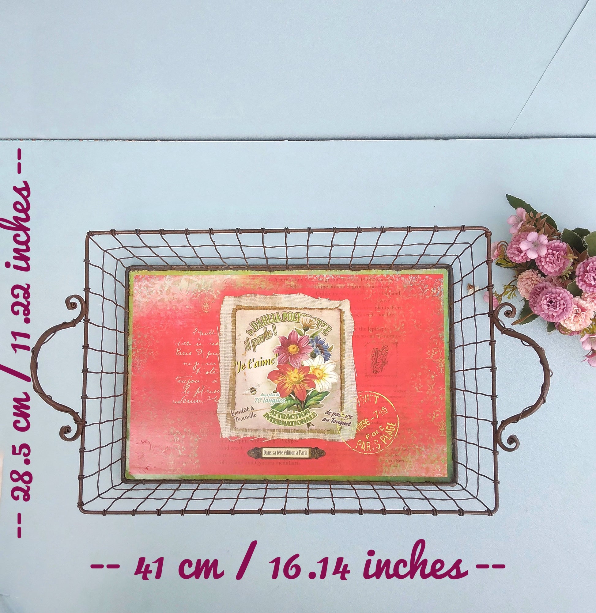 Υπέροχοι μεταλλικοί δίσκοι σε ρουστίκ στυλ με λουλούδια. Βάλτους στον πάγκο της κουζίνας με τα λαχανικά σου, στο τραπέζι σαν κεντρικό στοιχεία με τα φρούτα της ημέρας, ψωμί ή αυγά. Ή χρησιμοποίησέ τους για να βάλεις τα λουλούδια που μόλις έκοψες από τον κήπο σου!