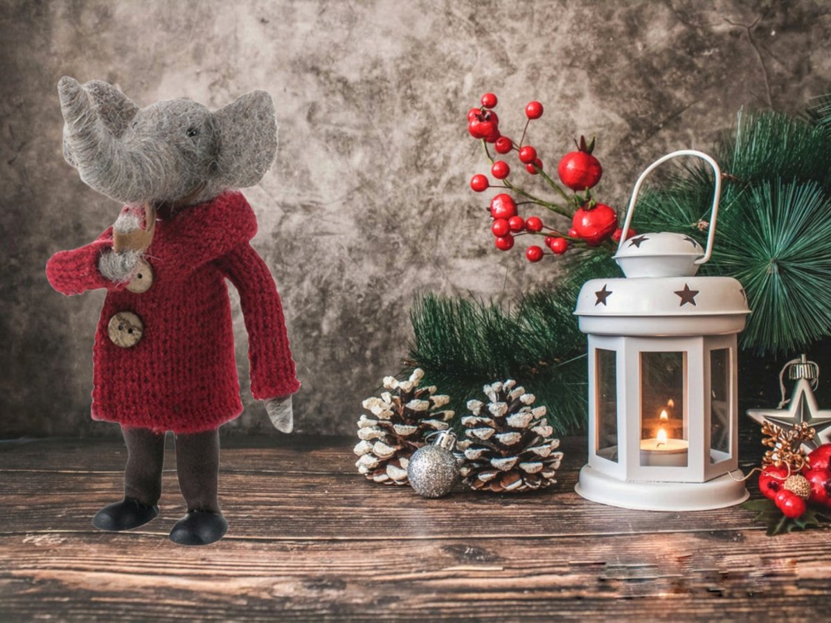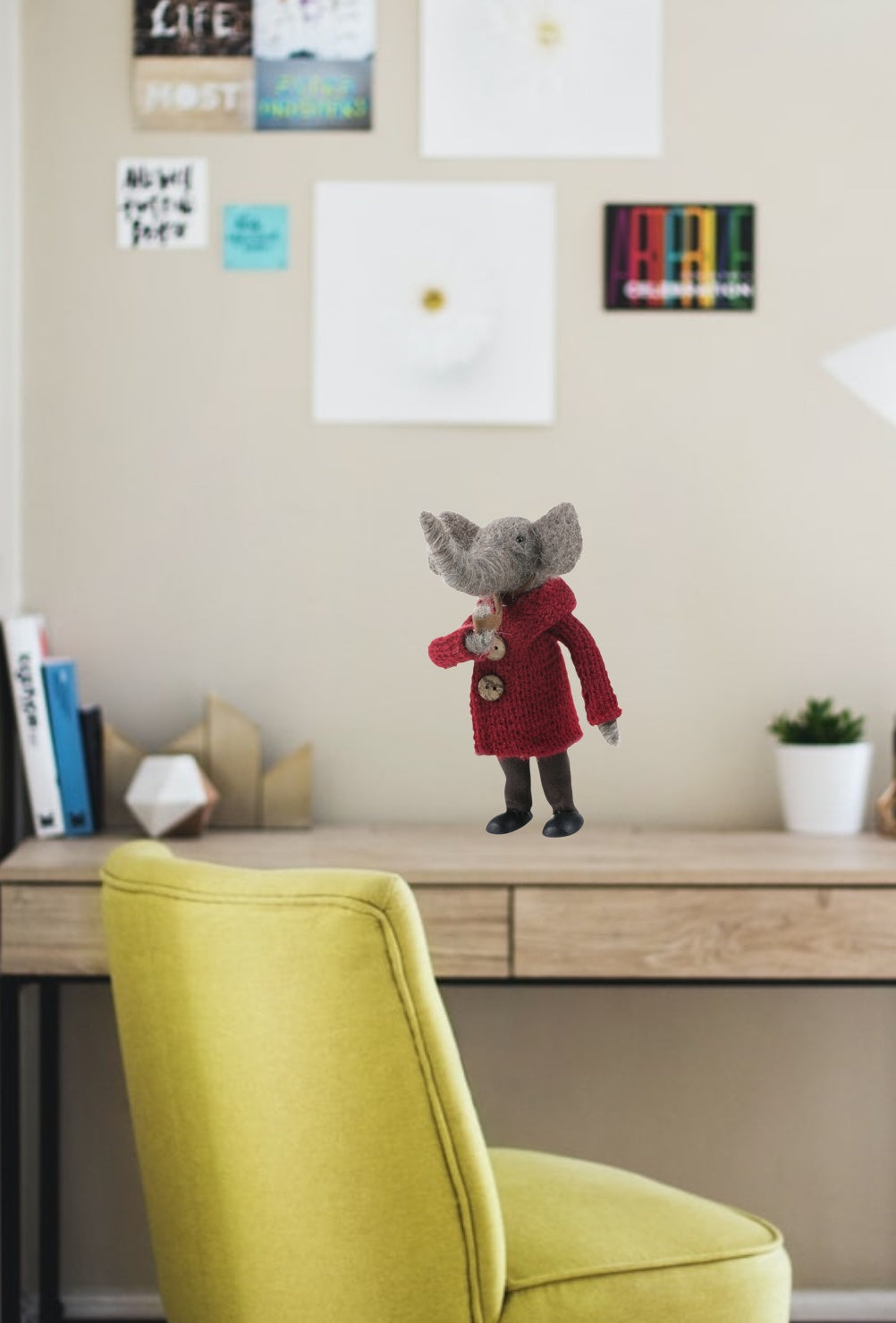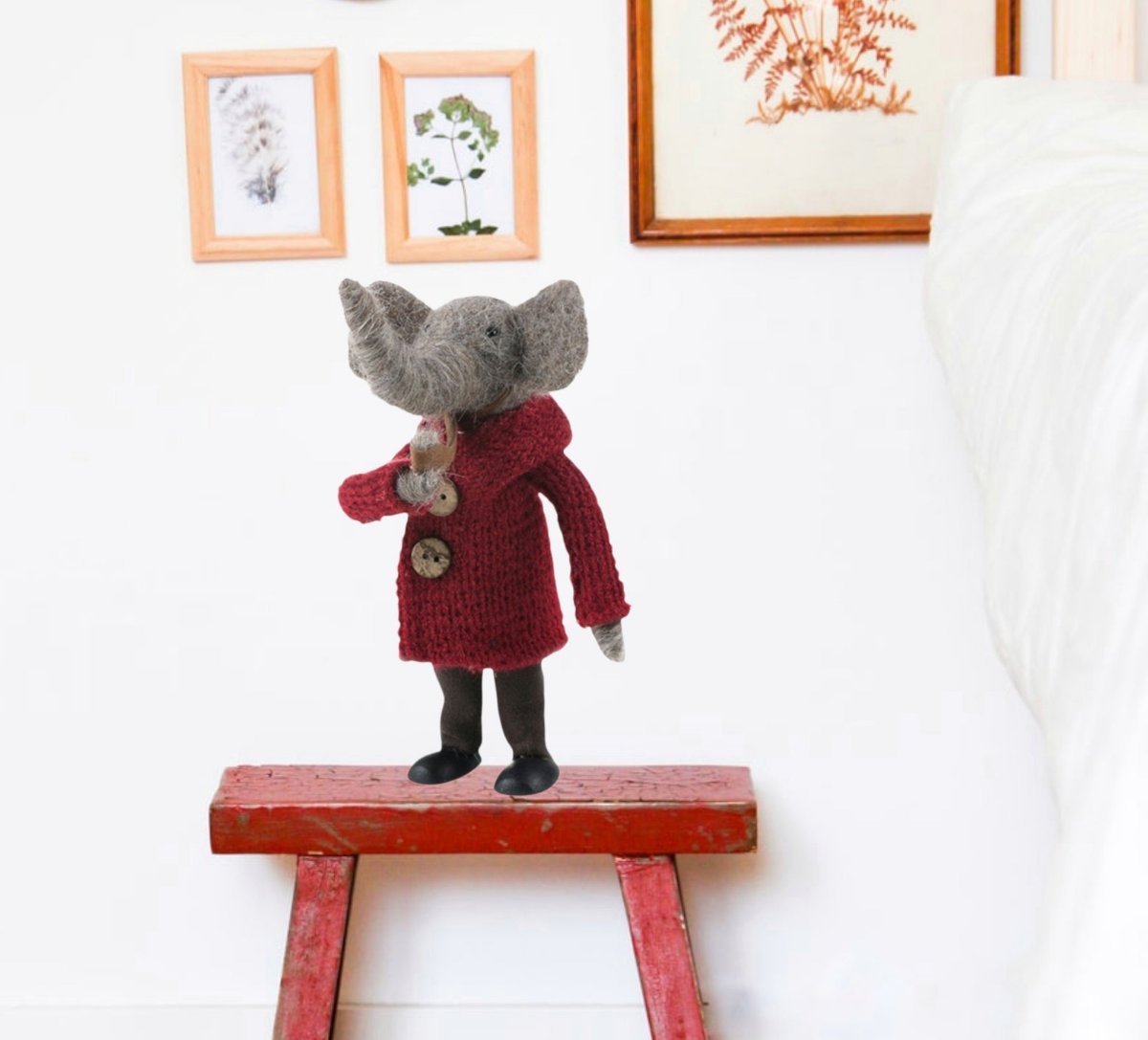 Χειροποίητη Κούκλα Ελέφαντας Από Φέλτ Με Ζακέτα