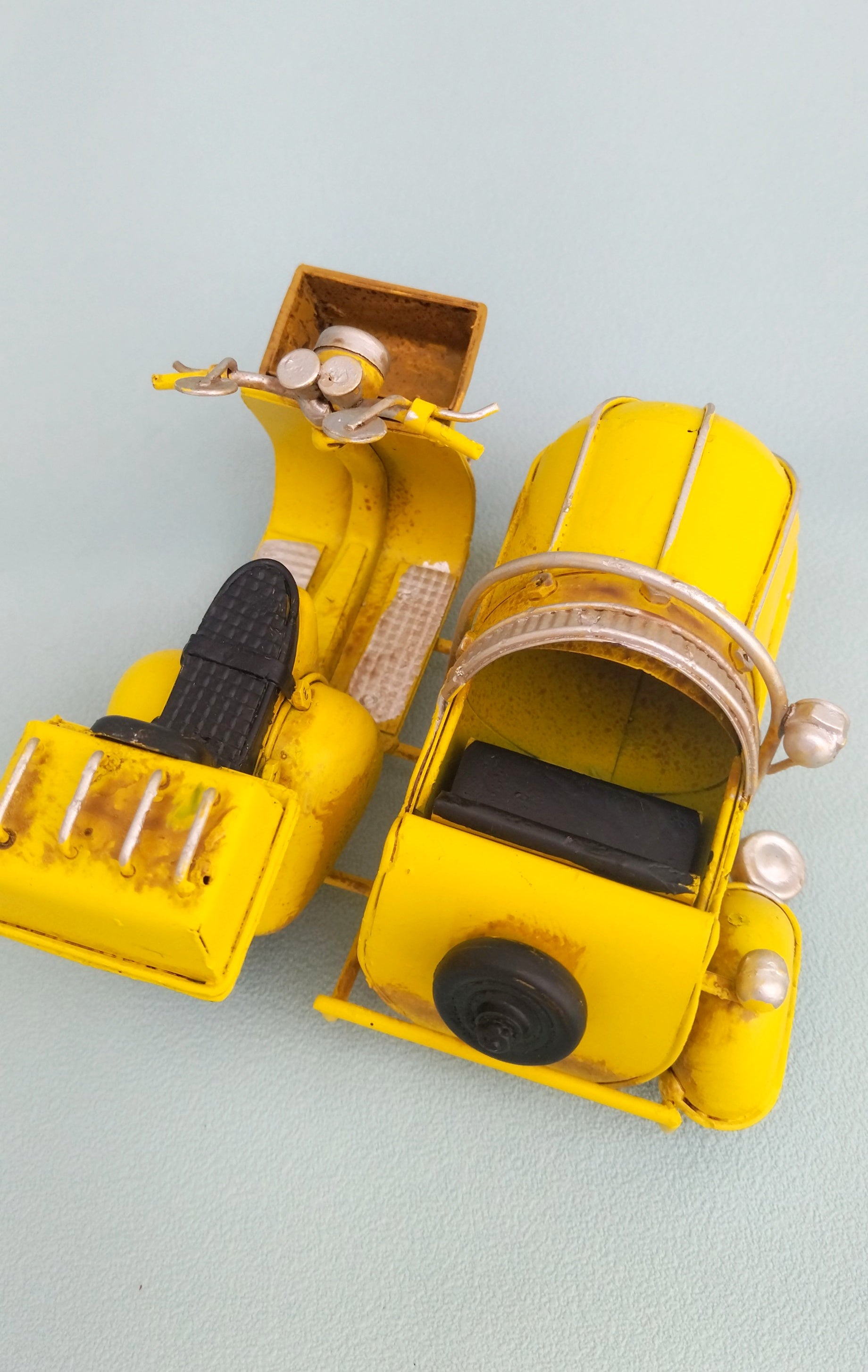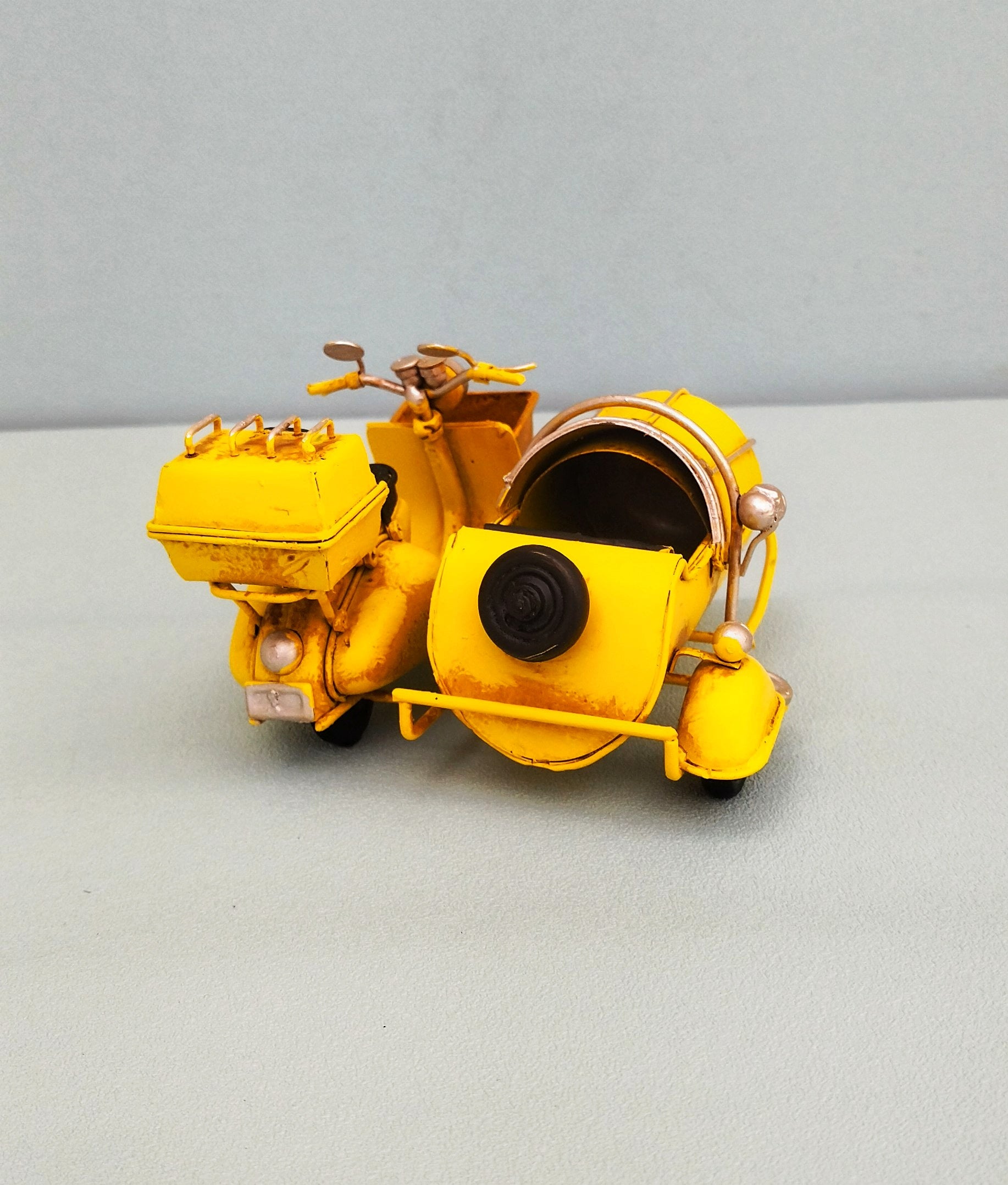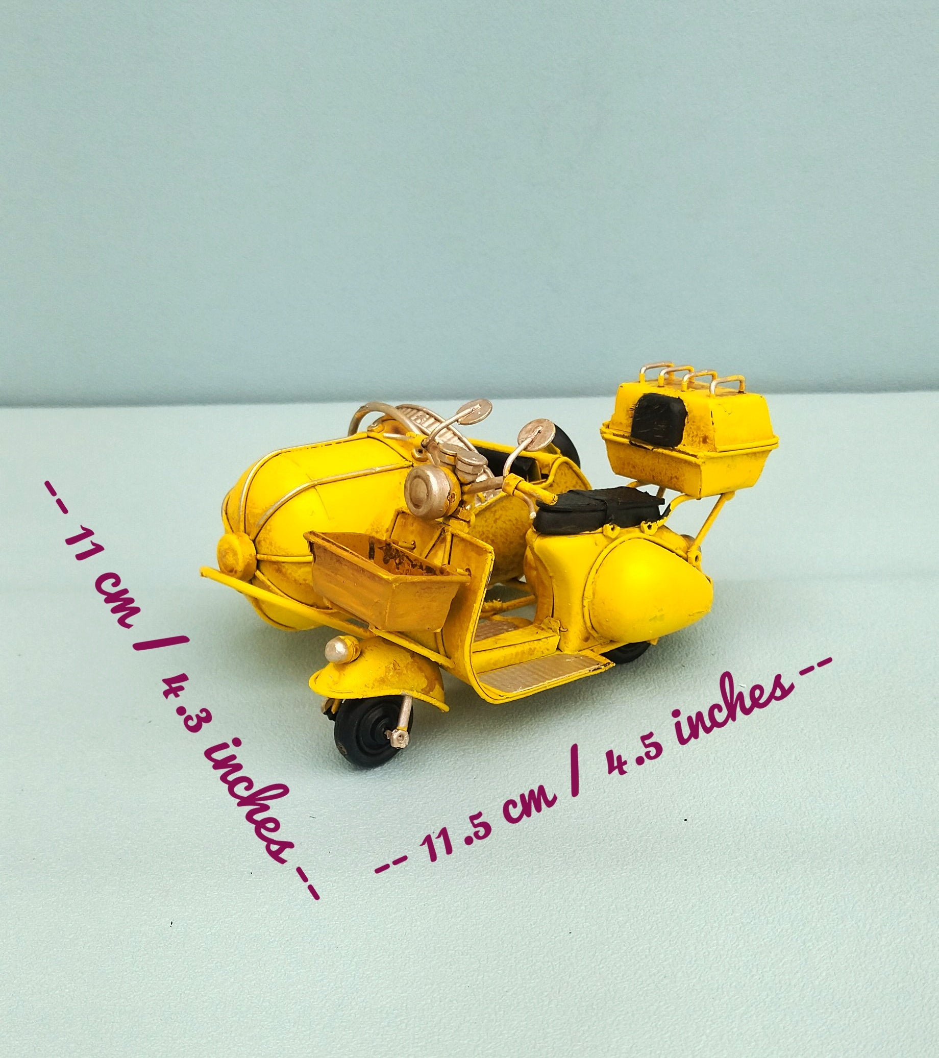 Γλυκύτατο μεταλλικό βεσπάκι μινιατούρα σε εντυπωσιακό κίτρινο χρώμα! Φτιαγμένο εξολοκλήρου στο χέρι και βαμμένο σε στυλ της δεκαετίας του 50. Ιδανικό δώρο για τους λάτρεις των βεσπών αλλά και των ρετρό παιχνιδιών.