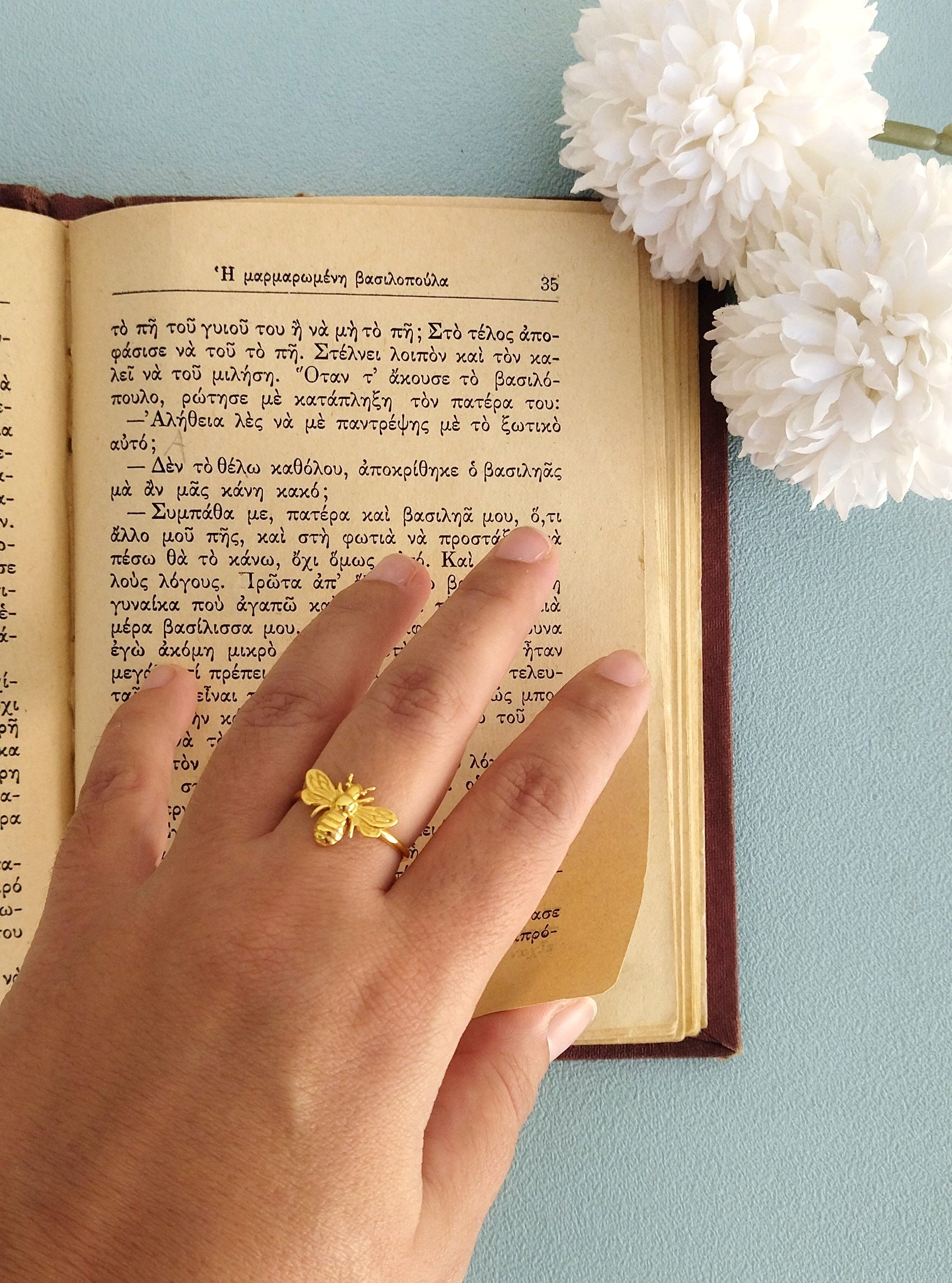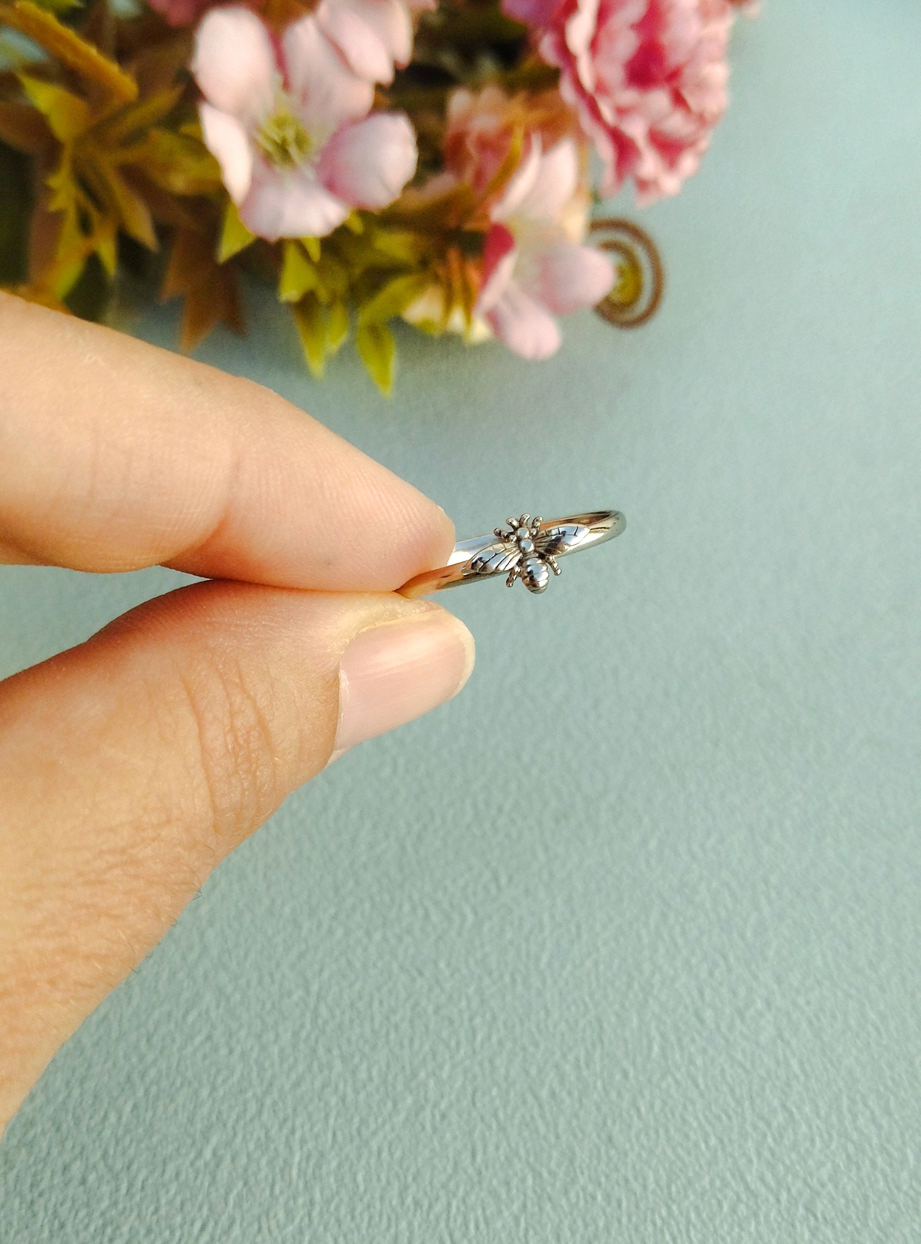 The cutest bee ring made of sterling silver. Choose between our tiny stacking ring or our large honey bee ring. Made adjustable, so they fit to many finger sizes. The perfect awareness jewelry gift!