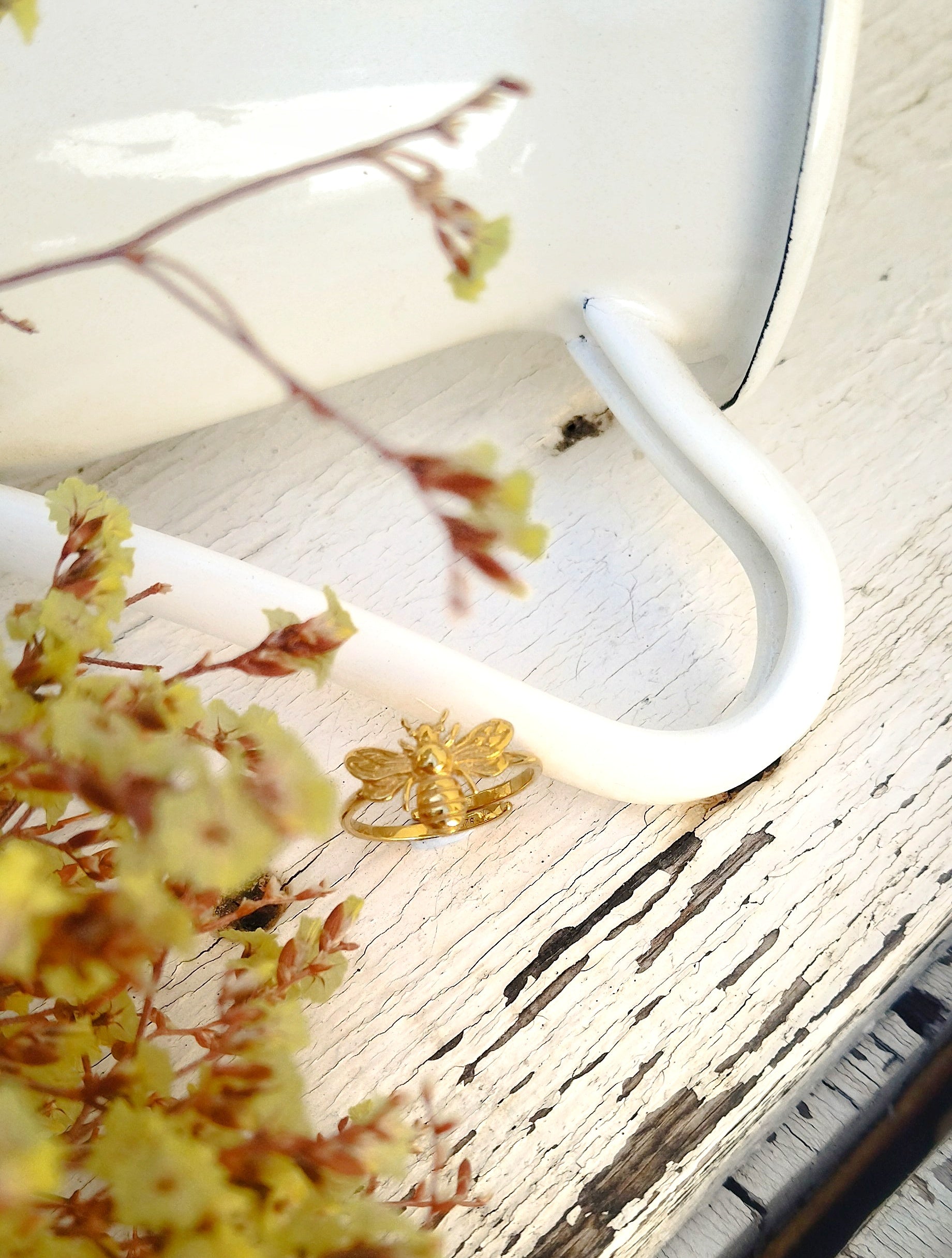 Adjustable Bee Ring, Gold Plated Or Sterling Silver Open Ring