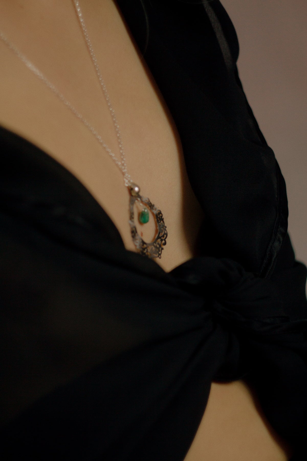 ❊ Material: sterling silver, oxidized ❊ Pendant Size : 4*3 inches / 1.57*1.18 inches ❊ Necklace Chain Length : 60 cm / 23.6 inches