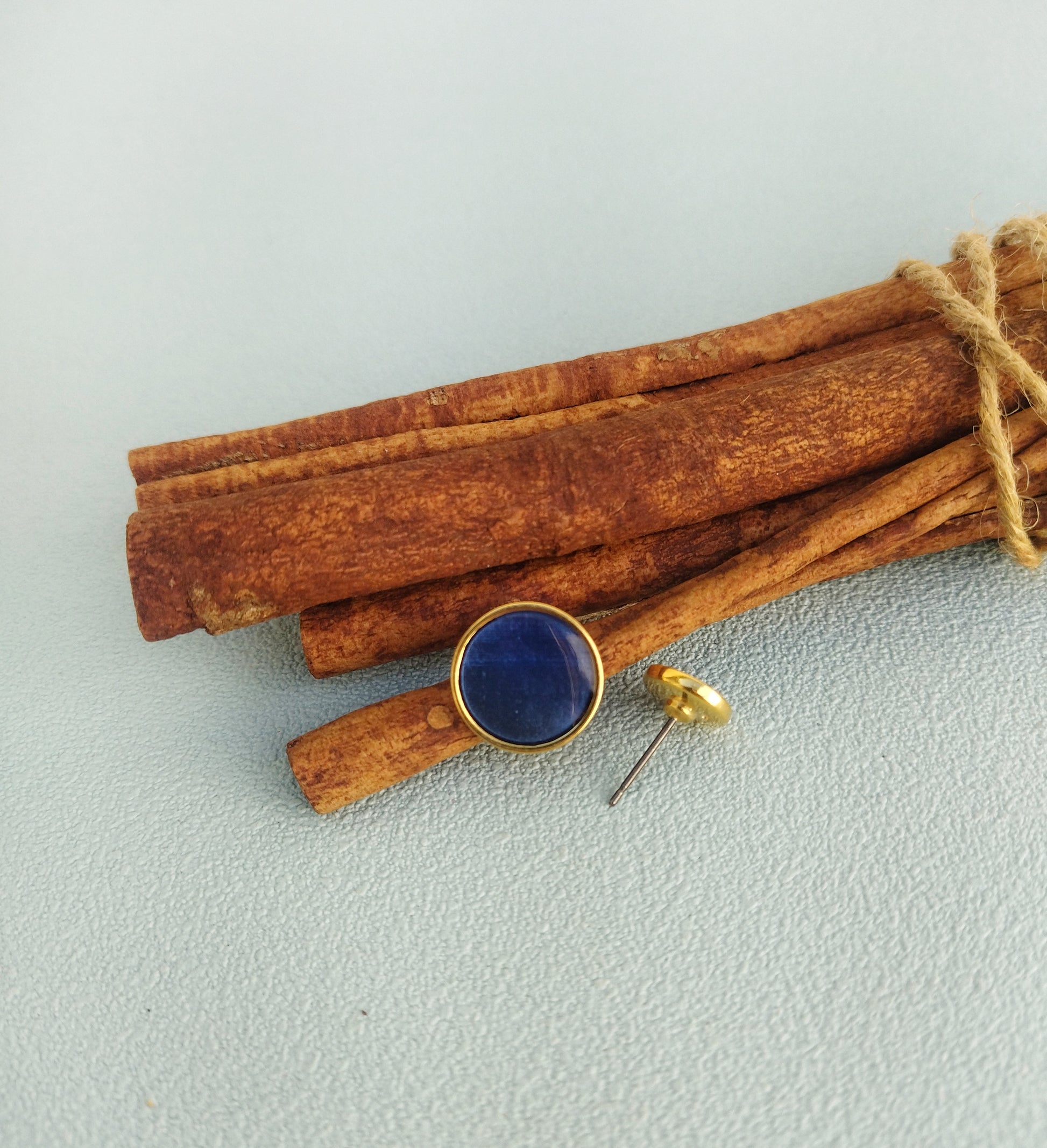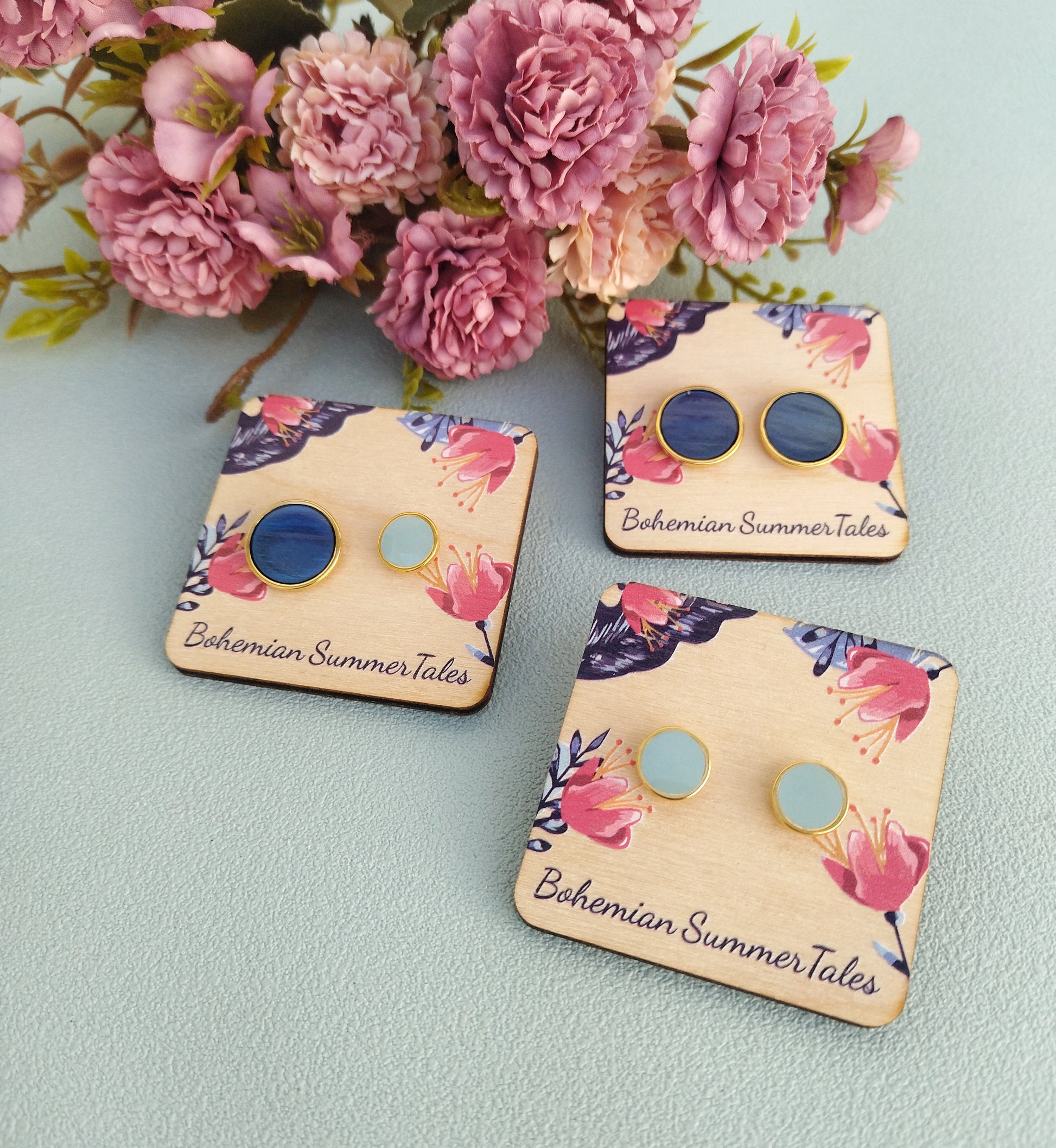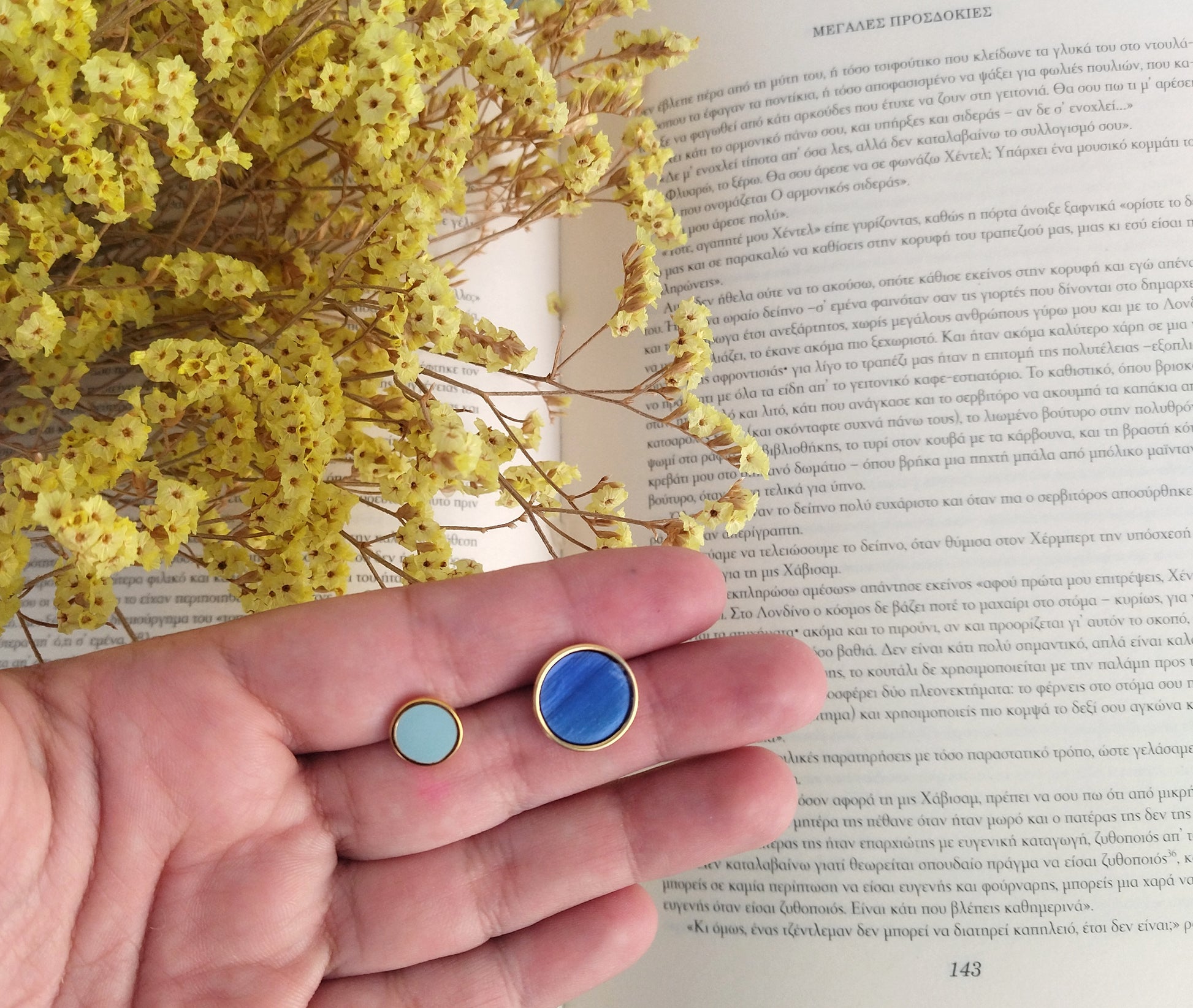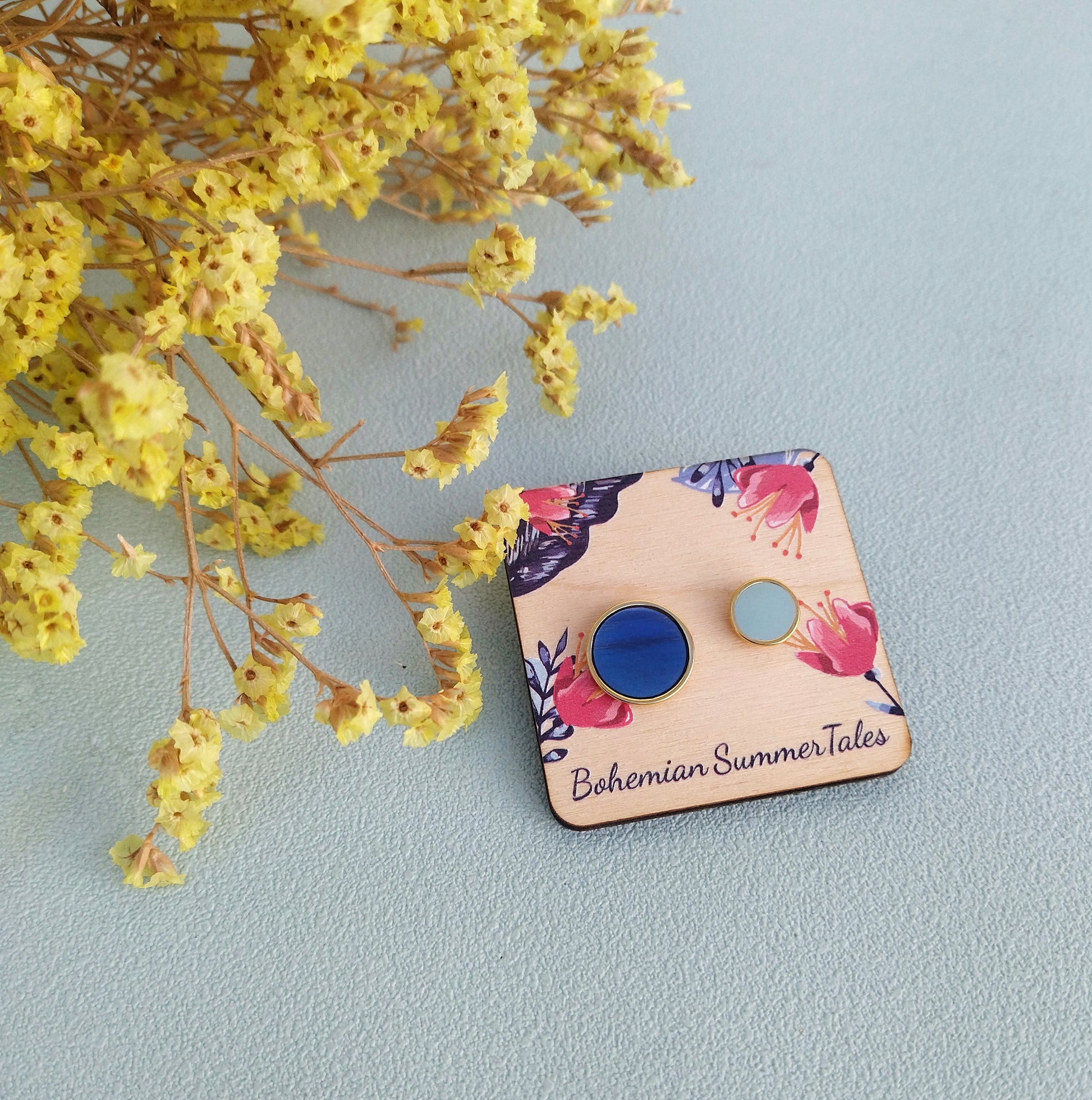 Hand painted with enamel colors and a thin resin layer on top in order to protect the colors... Choose between our midnight blue large studs or our gray blue small ones.