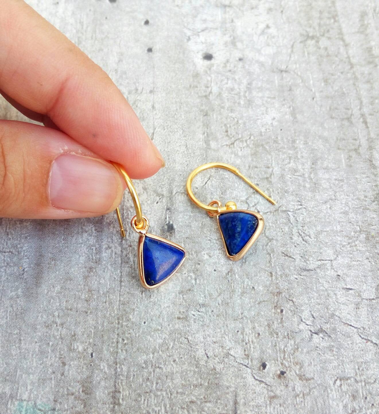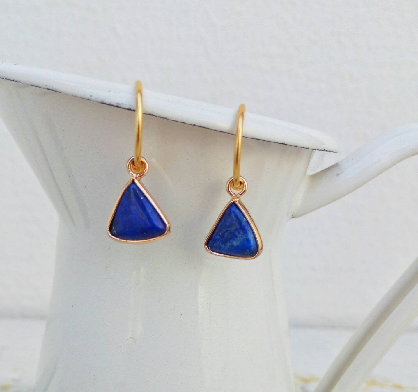 Blue Hoop Earrings, Lapis Earrings, Navy Blue Bridesmaid Jewelry