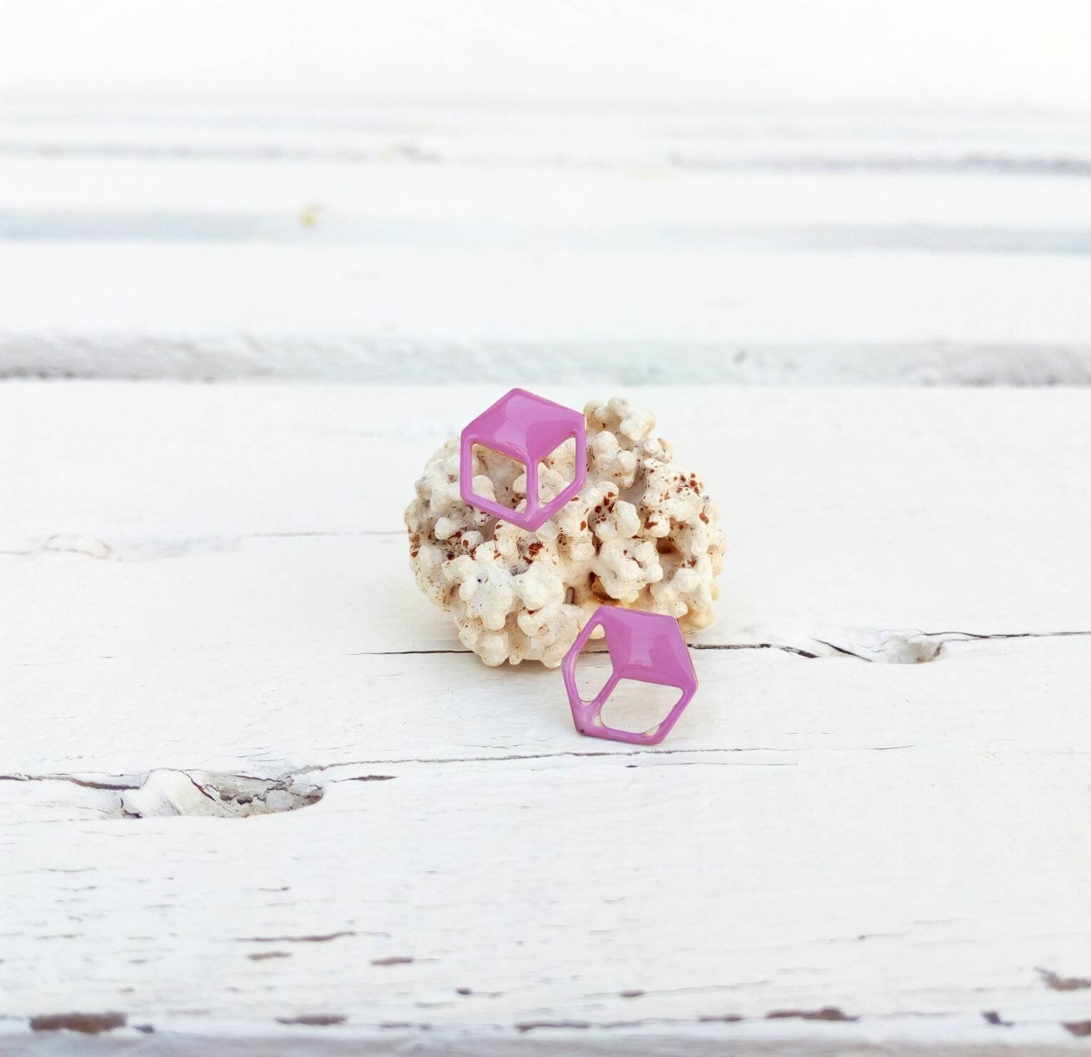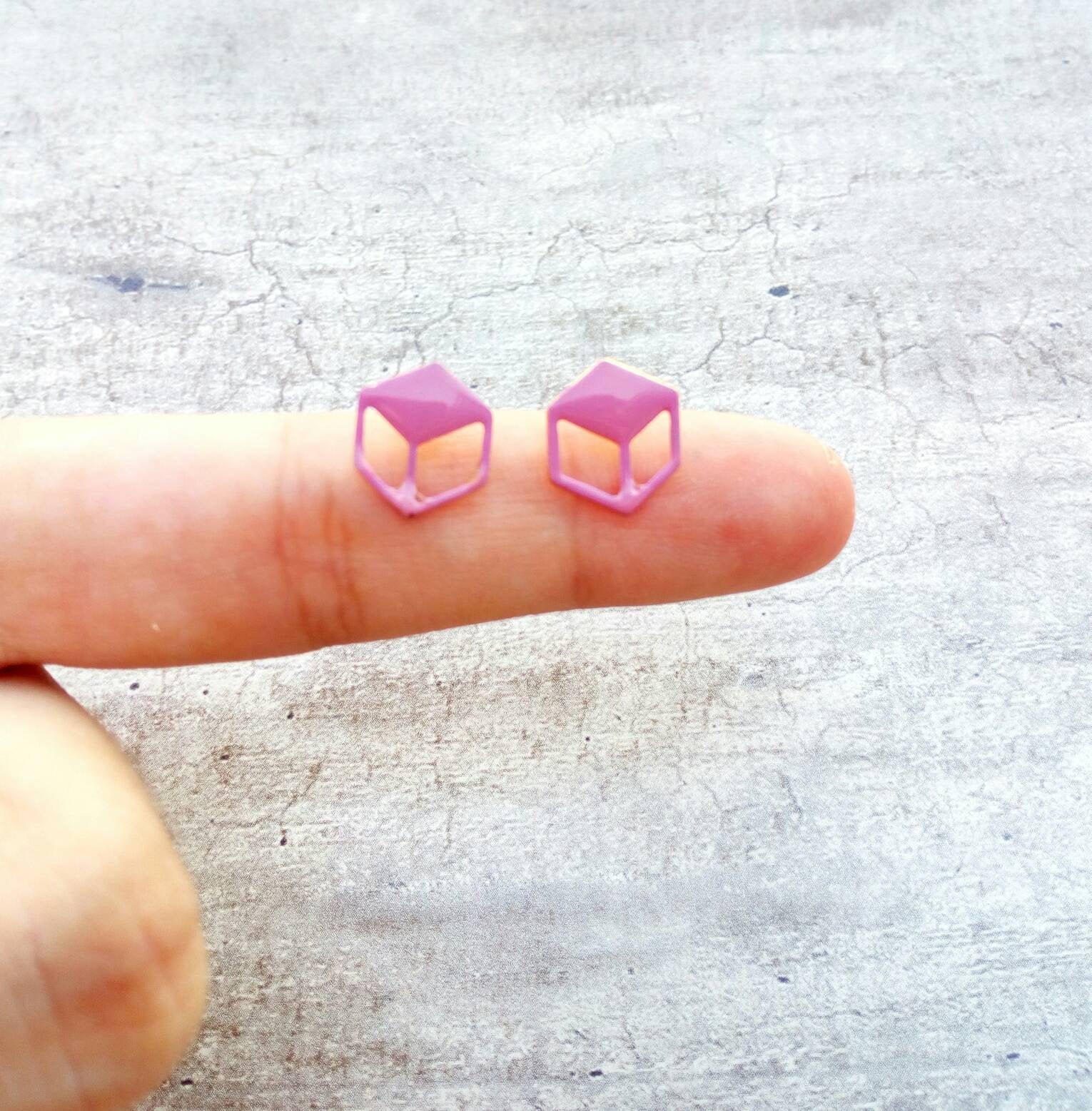 Adorable cube stud earrings. These geometric studs are cute, fresh and elegant! A perfect wear for every day and for school. For a young woman or a teenage girl. These small stud earrings are nickel, lead and cadmium free. It comes to you on our eco friendly wood stand.