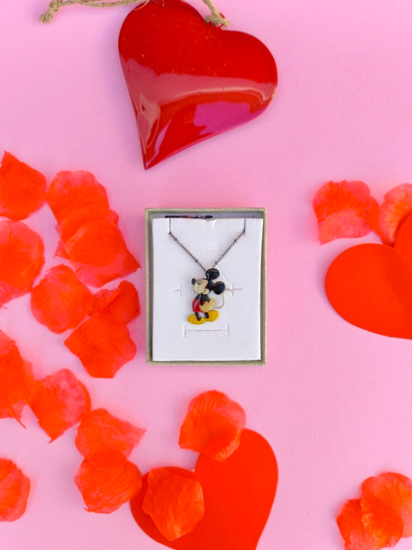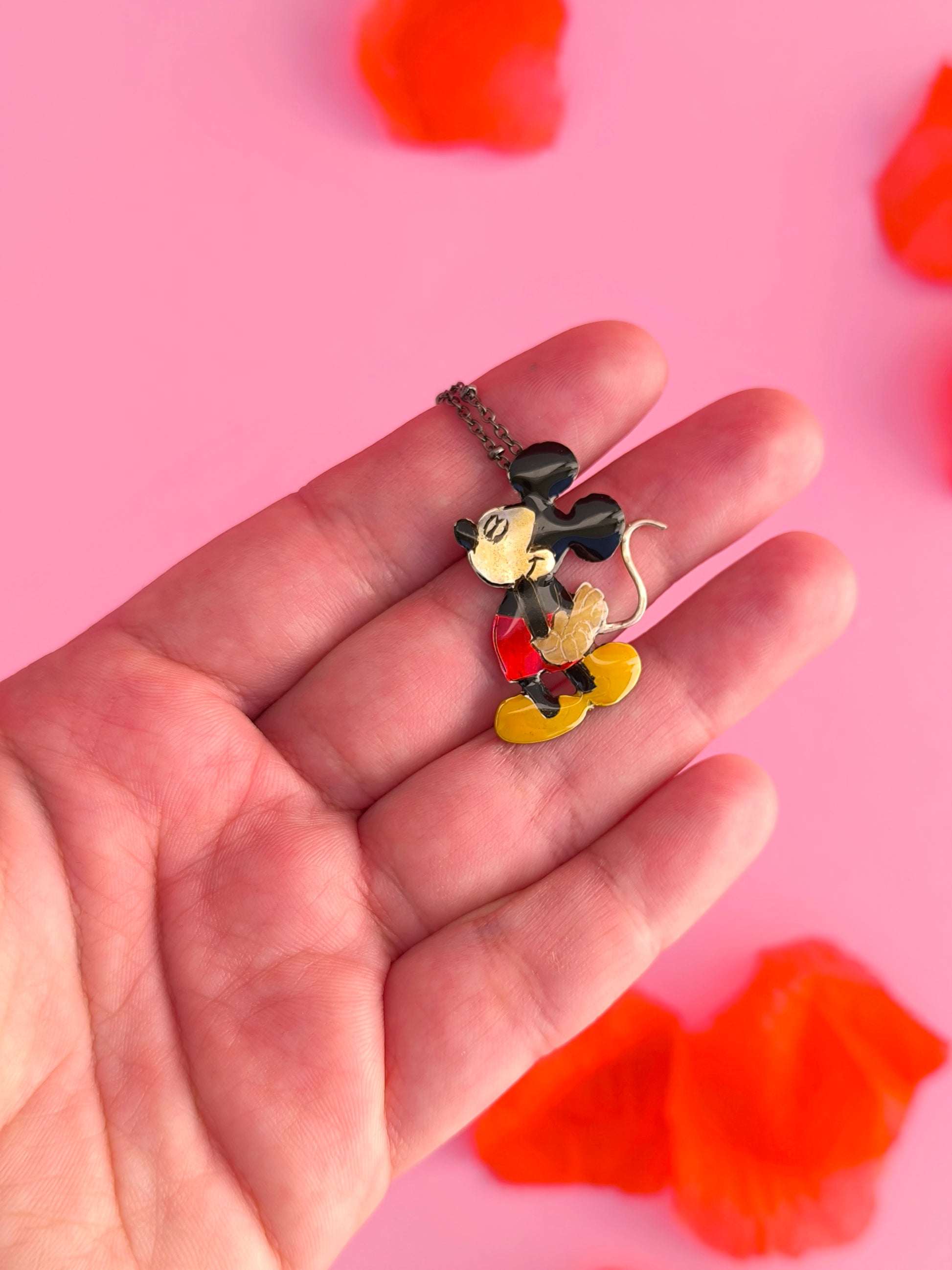 Beautiful comic book art jewelry! Solid silver Mickey necklace engraved and painted entirely by hand with enamel and resin. Magical and joyful at the same time piece of fairytale jewelry.